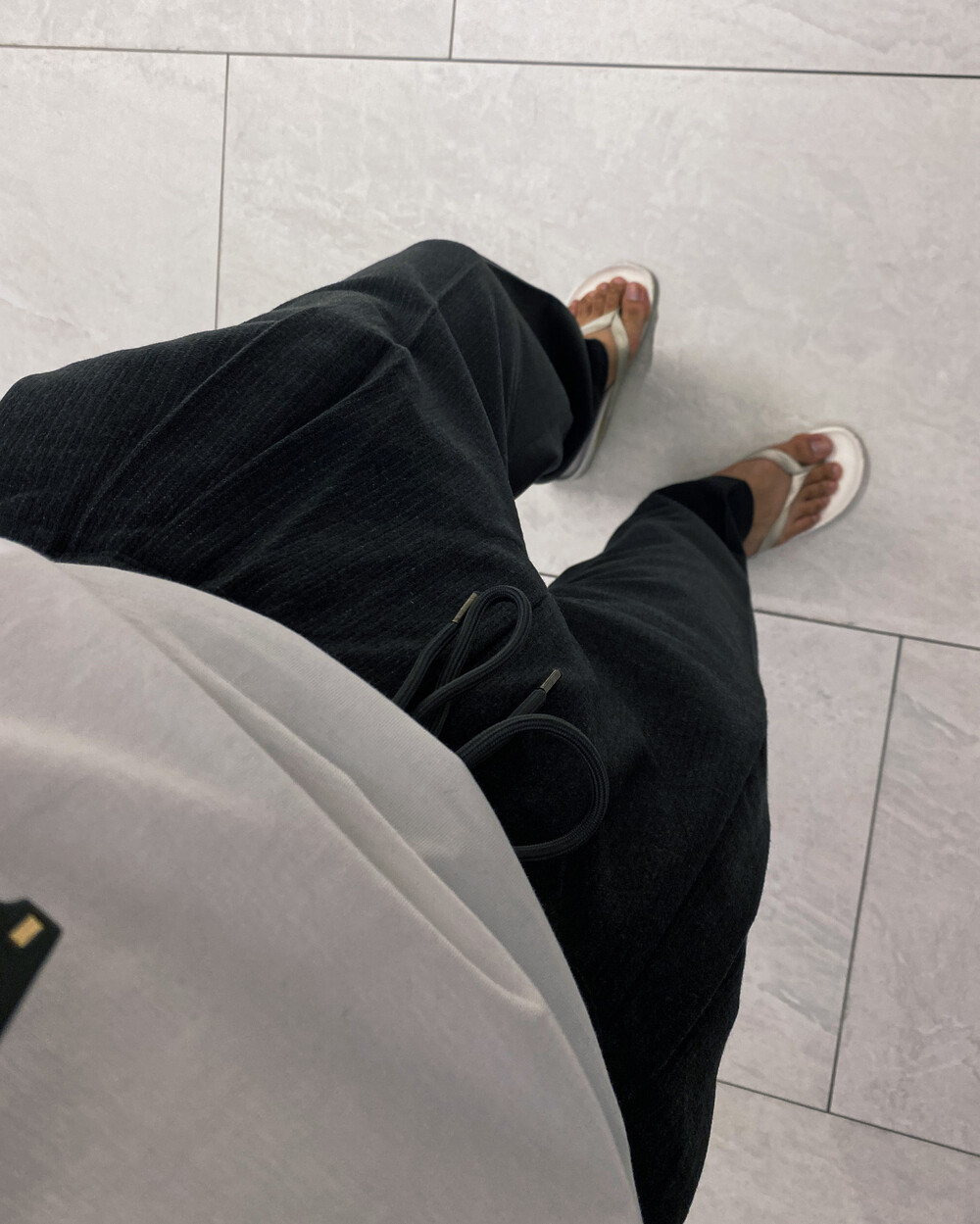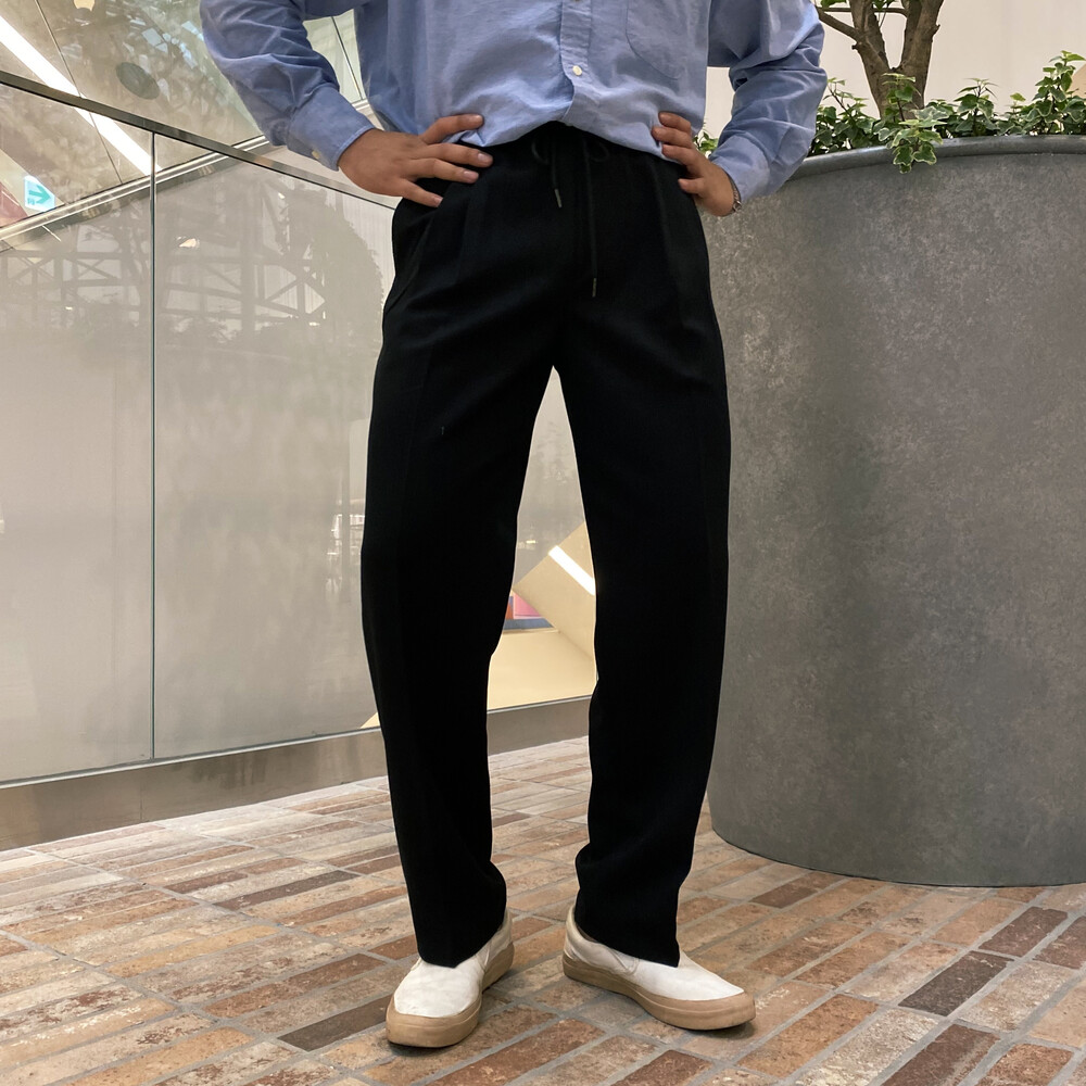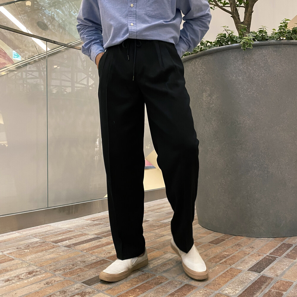 세미 오버핏 슬랙스처럼 보이지만 전체 허리 밴딩처리되어있어, 착용하기에도 편리한 팬츠입니다
