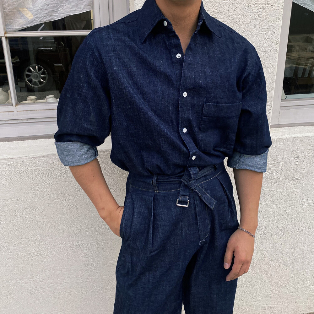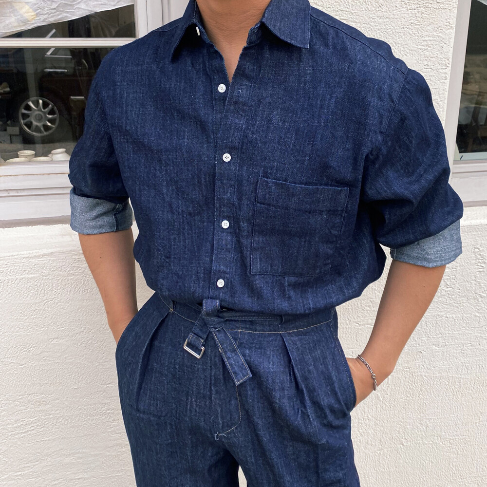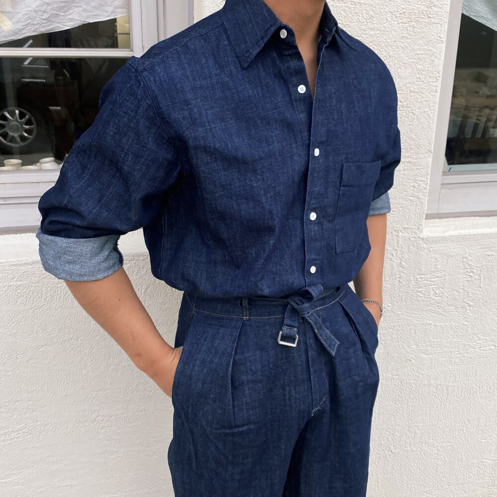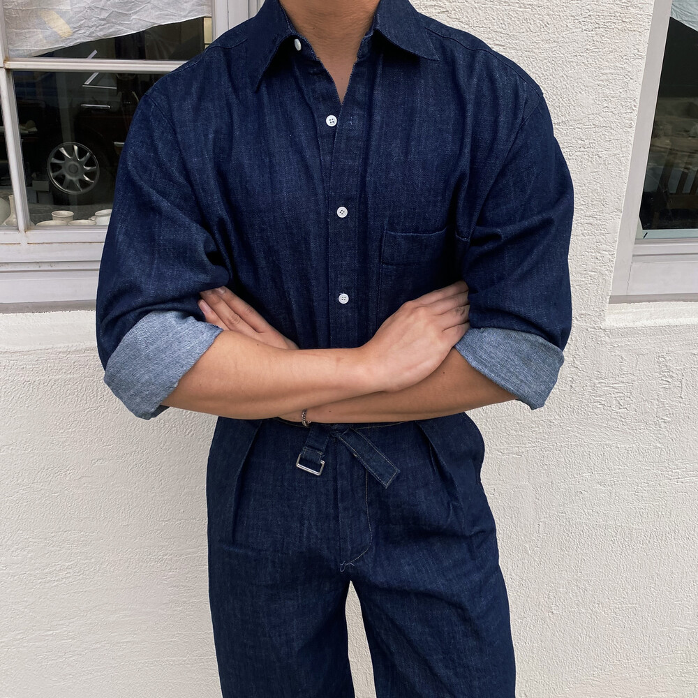 밑단이 데끼로 마감되어있는 청 셔츠입니다.
