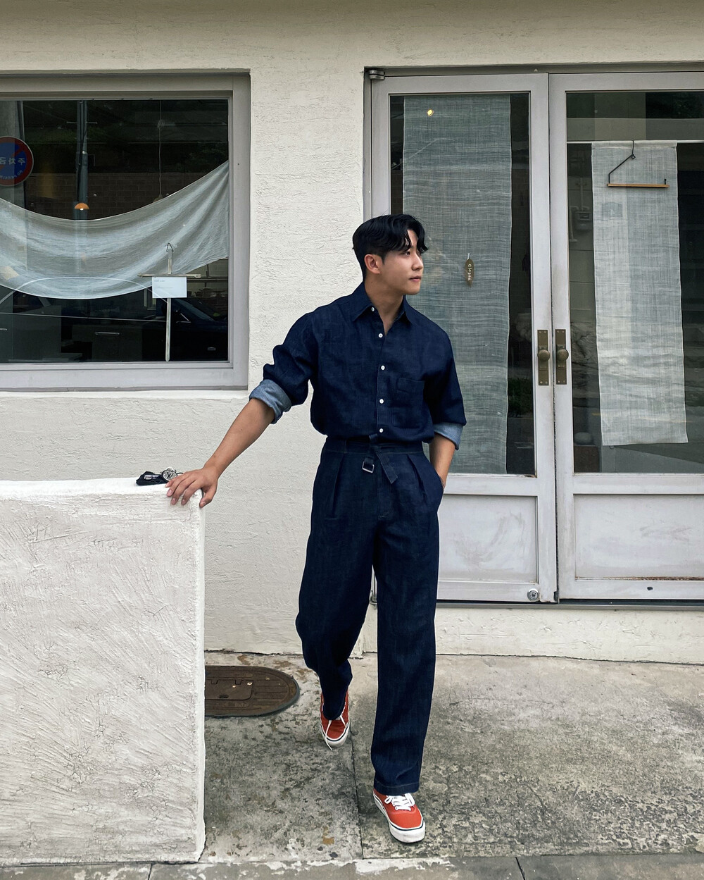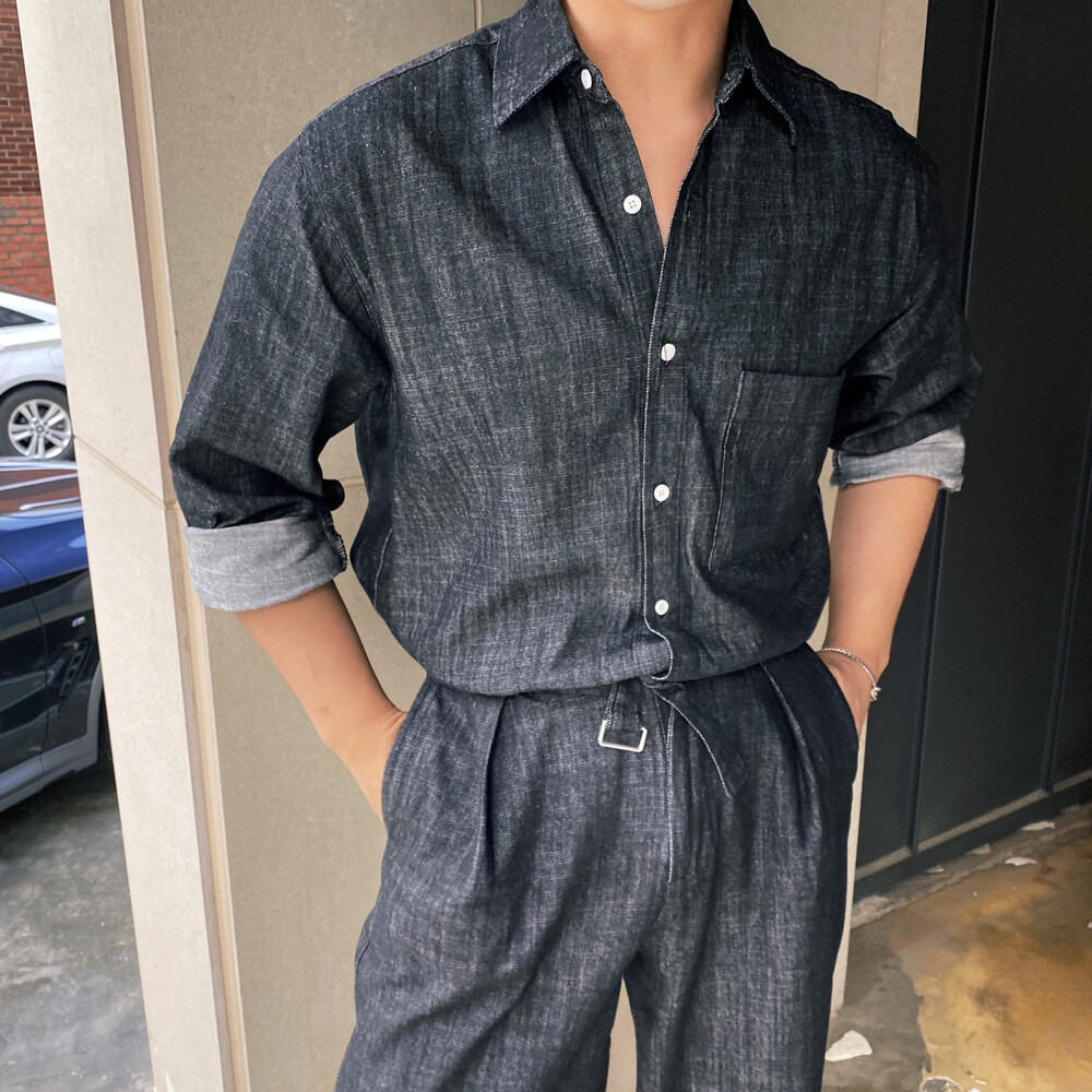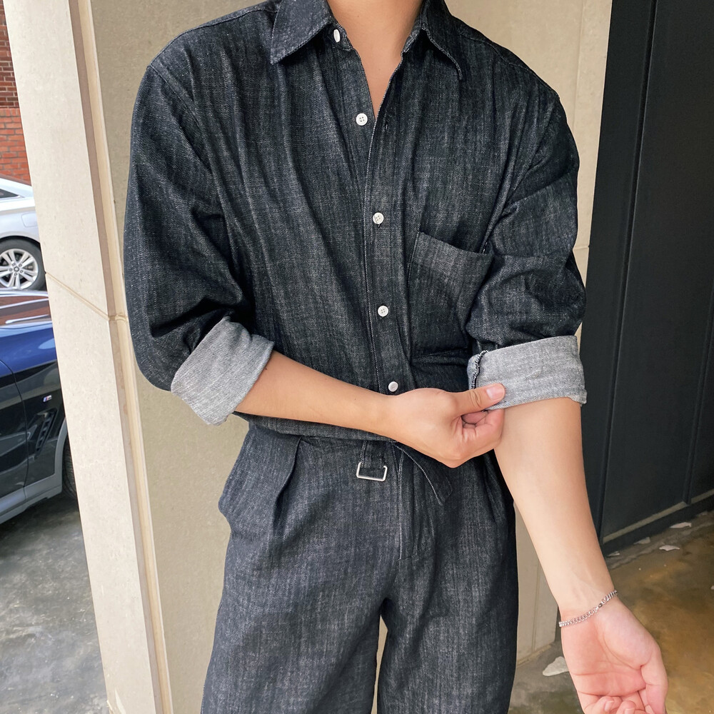 밑단이 데끼로 마감되어있는 청 셔츠입니다.