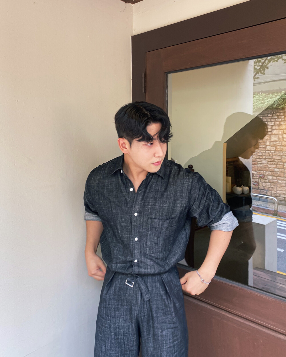 원단이 두께감이 조금 느껴져서, 핏을 예쁘게 잡아주며