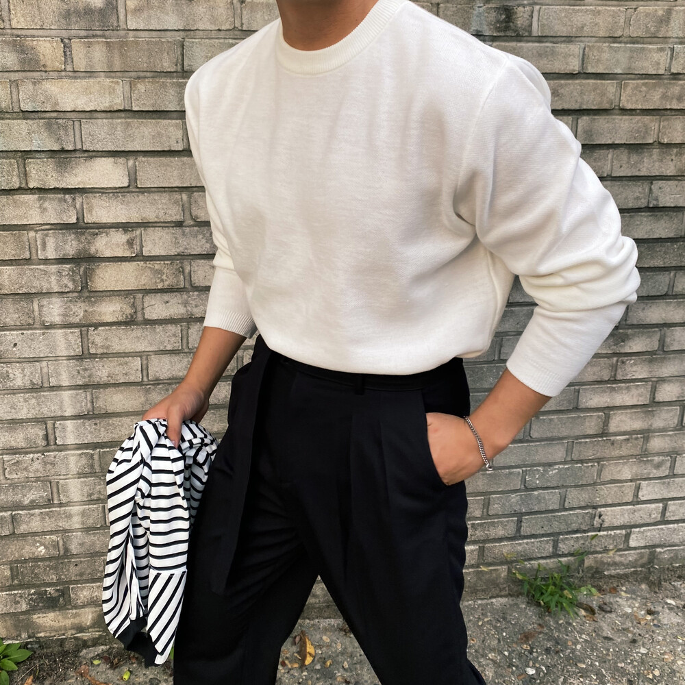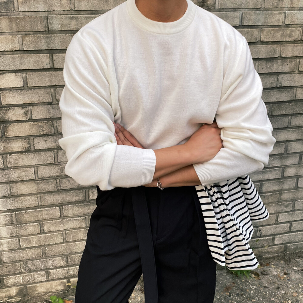 면과 아크릴 소재로 맨살에 입어도 굉장히 부드러운 터치감을 자랑하는 니트예요