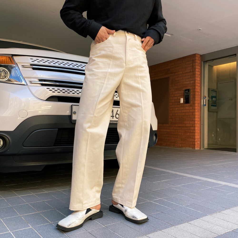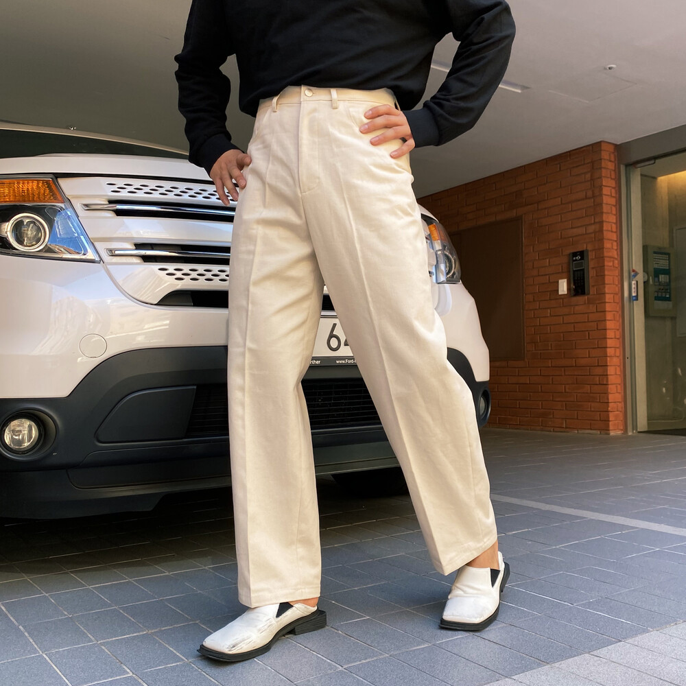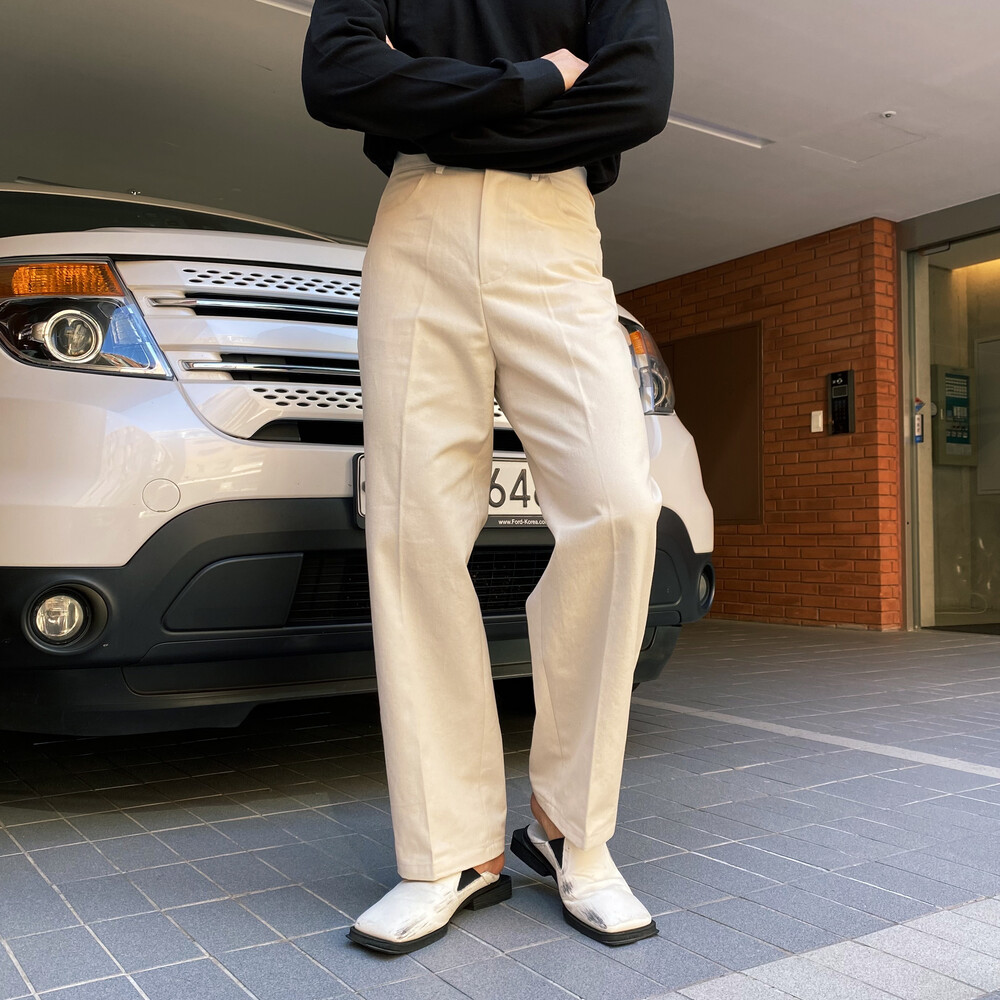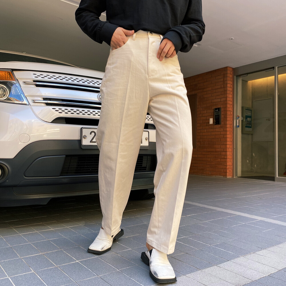 테이퍼드 핏의 면팬츠입니다