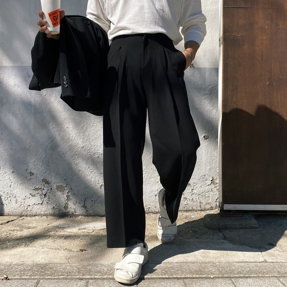 스판 혼방으로 신축성과 쫀쫀함까지 챙겨가는 세미 와이드 핏 슬랙스입니다