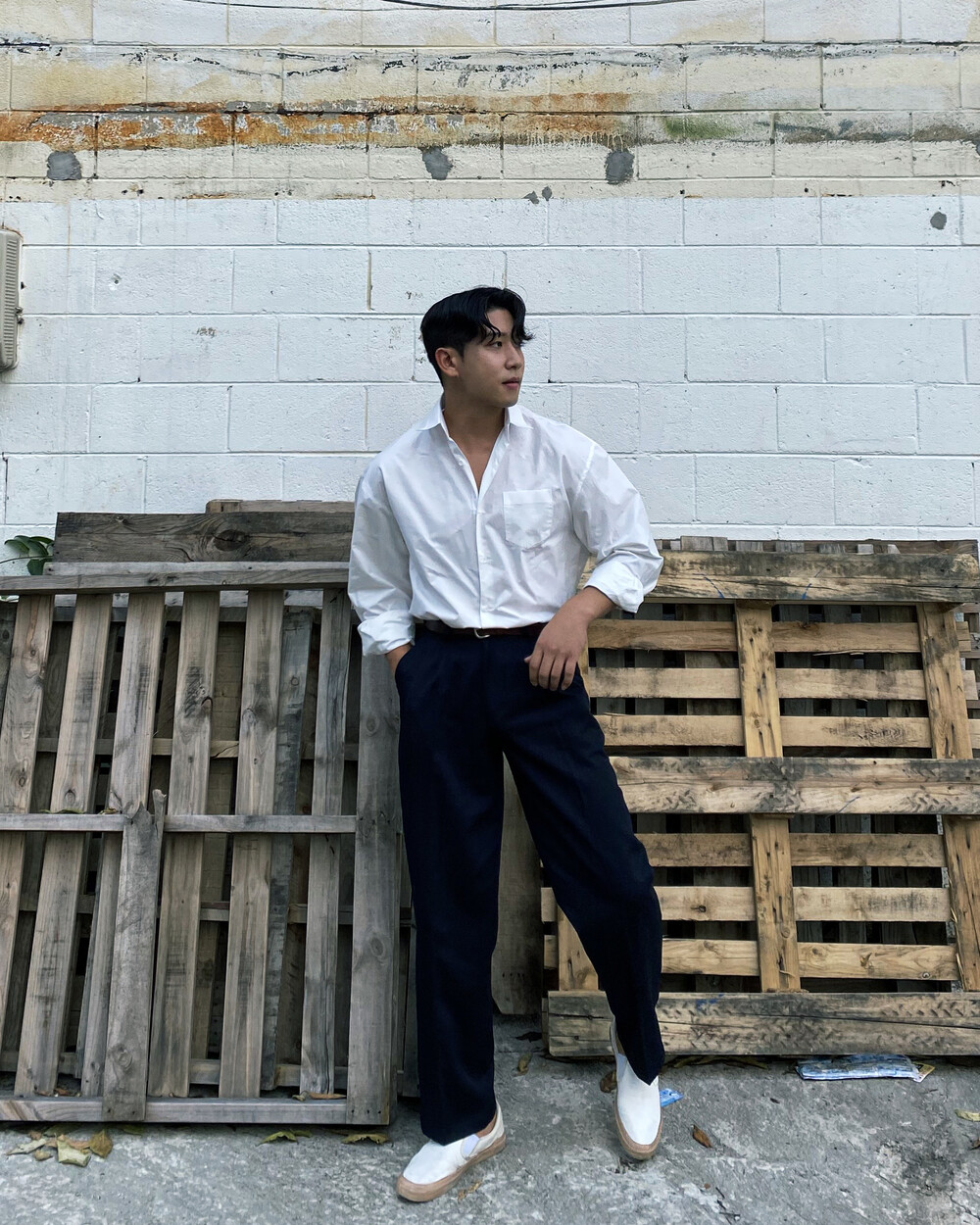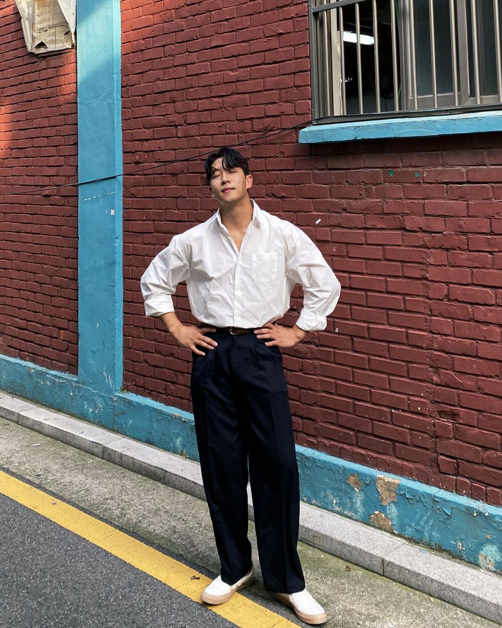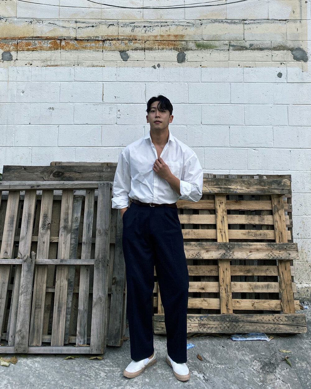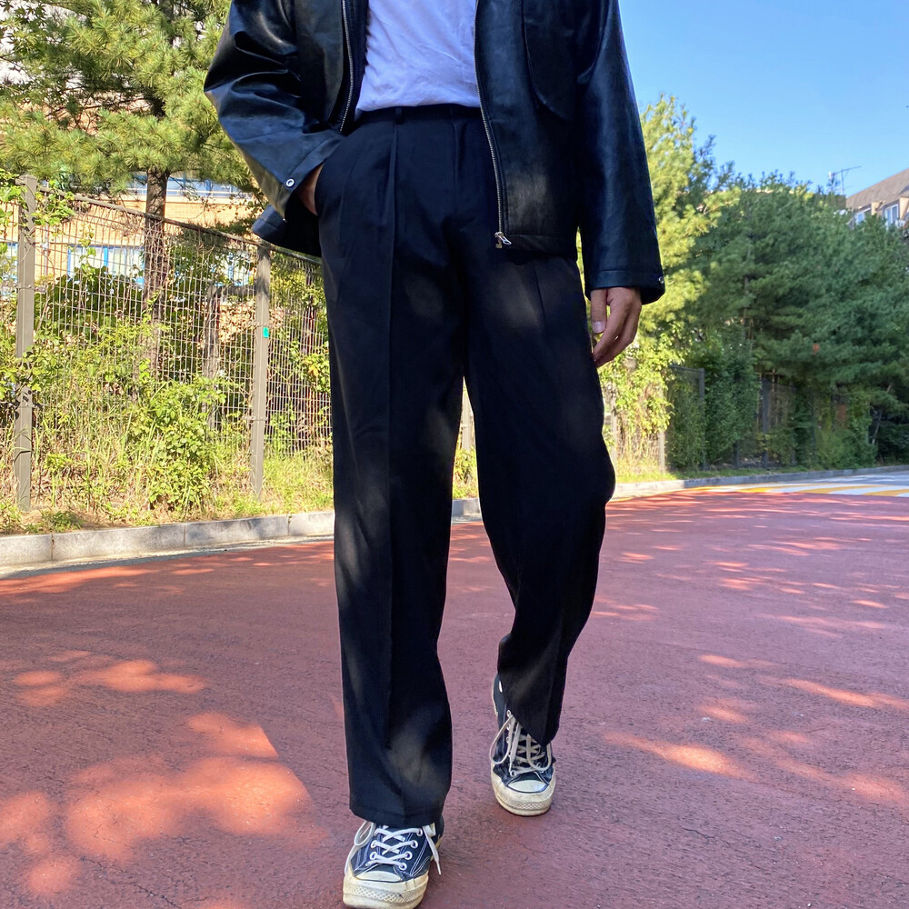 투턱이 잡혀 배바지했을때 느낌이 잘 사는 세미 와이드 팬츠입니다