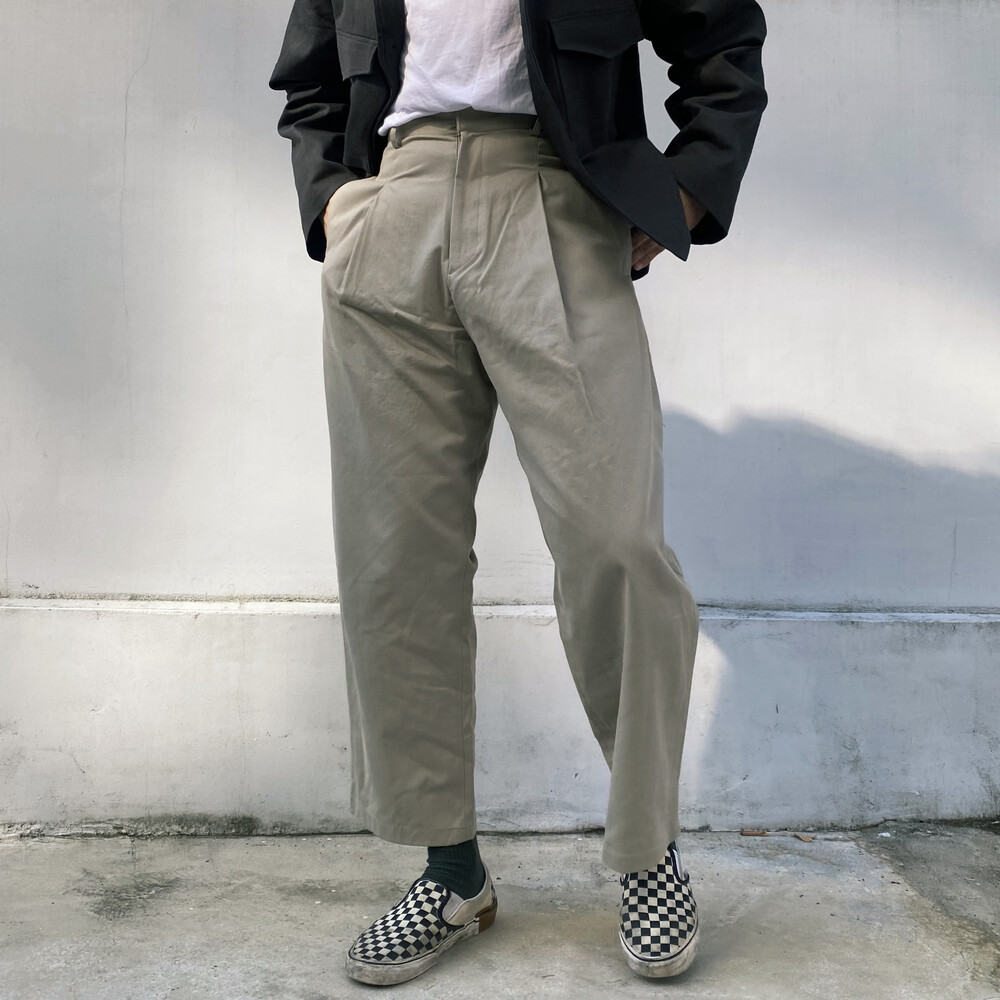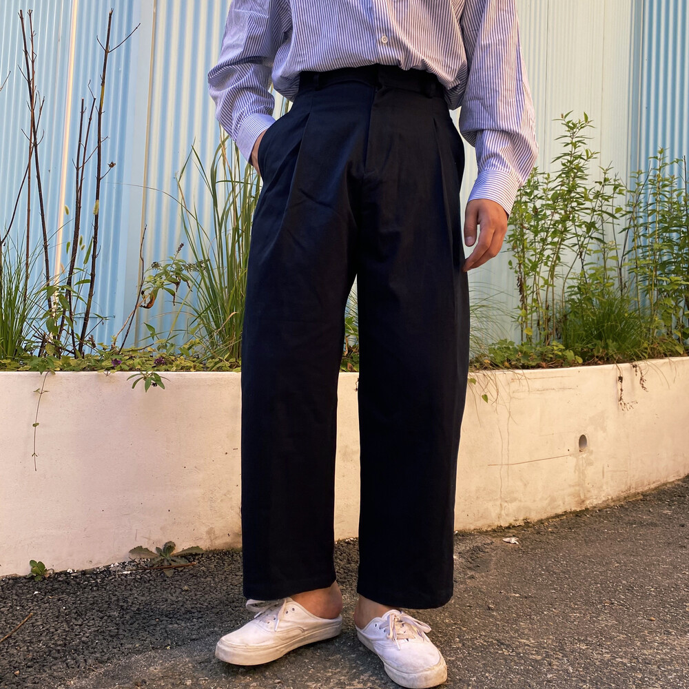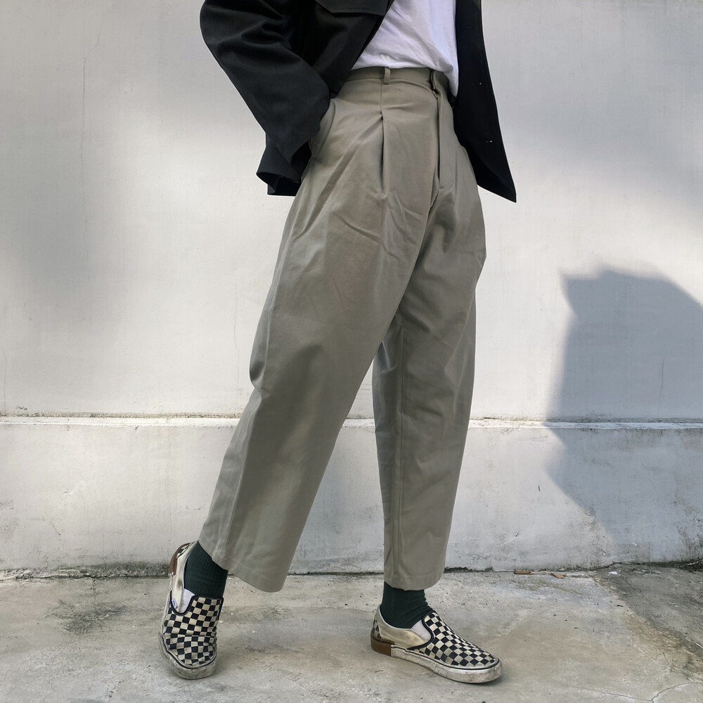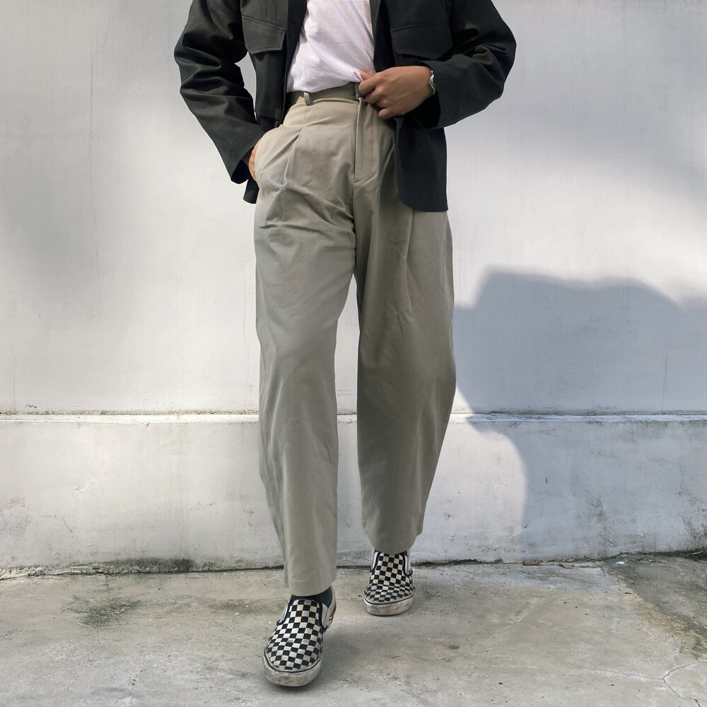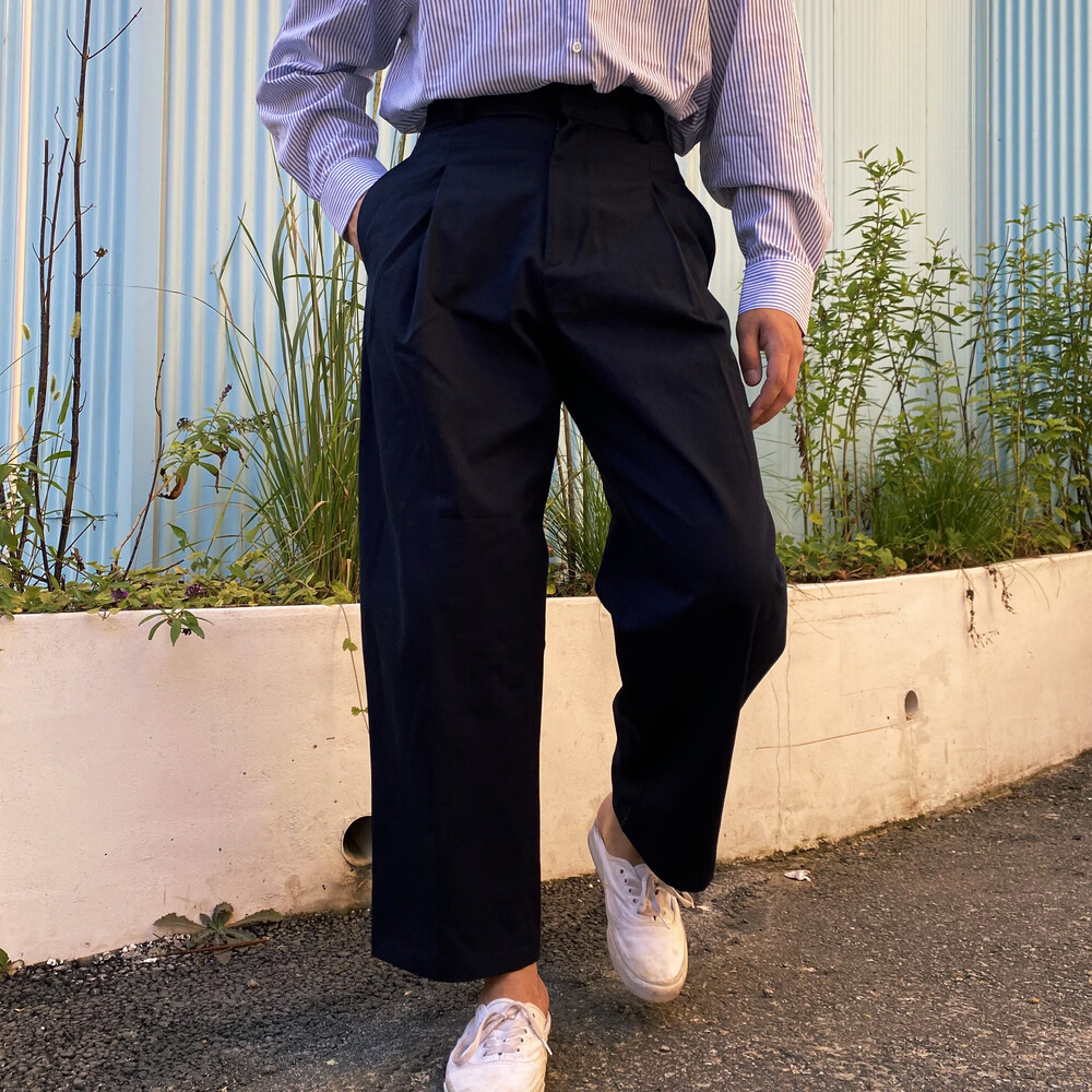 원턱이 잡히고, 밑위가 길어서 배바지했을때 생각보다 위로 올라와 클래식을 연출하기 좋은 팬츠입니다