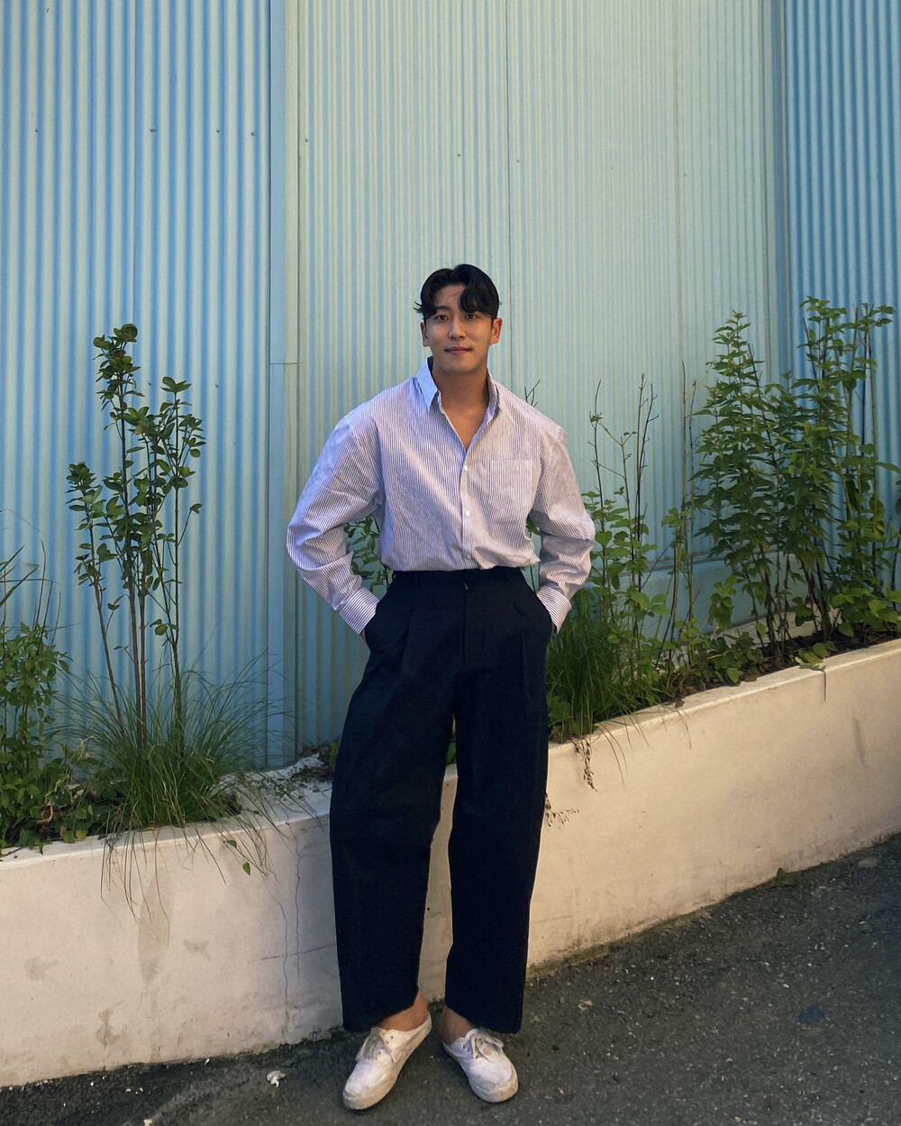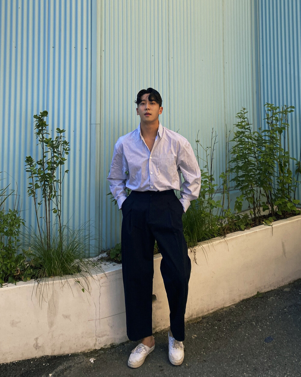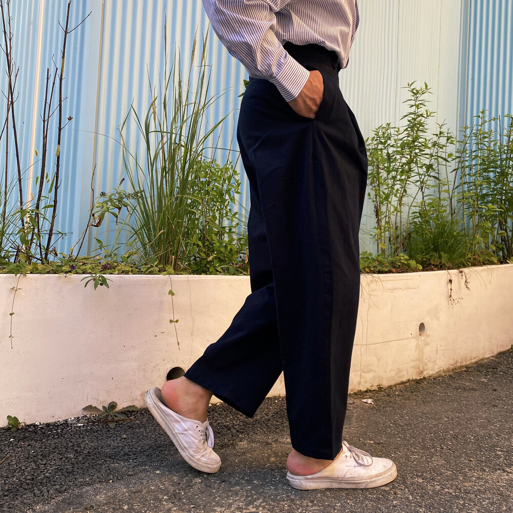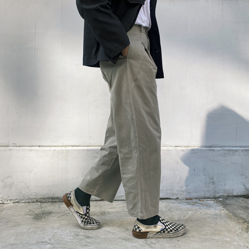 원턱이 잡히고, 밑위가 길어서 배바지했을때 생각보다 위로 올라와 클래식을 연출하기 좋은 팬츠입니다
