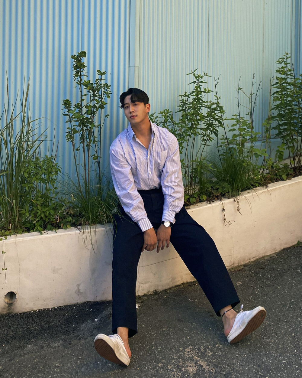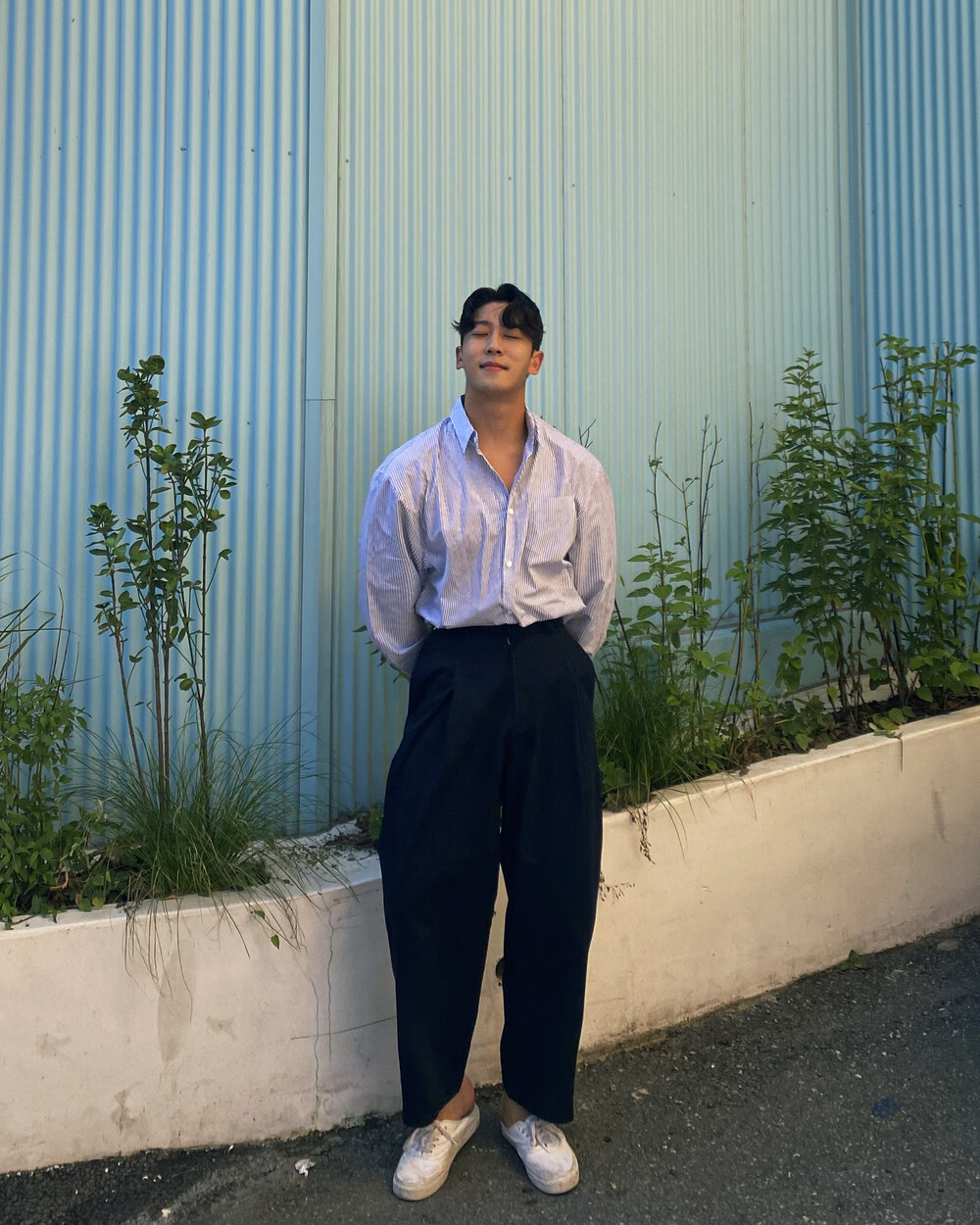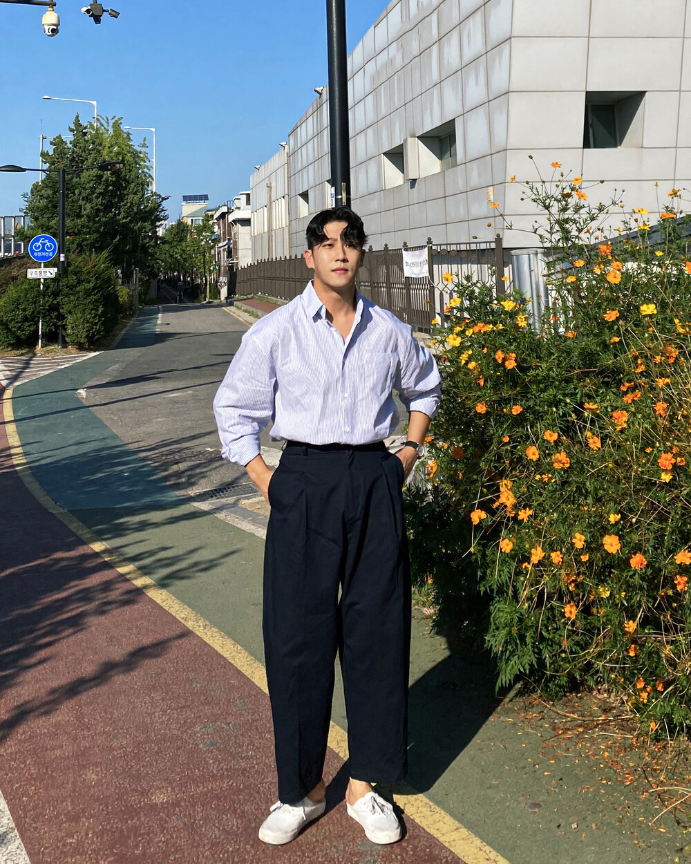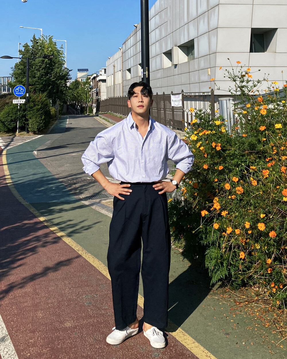 원턱이 잡히고, 밑위가 길어서 배바지했을때 생각보다 위로 올라와 클래식을 연출하기 좋은 팬츠입니다