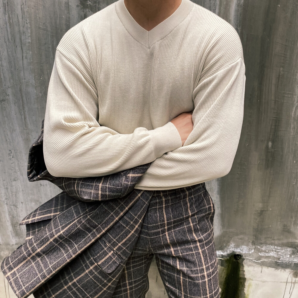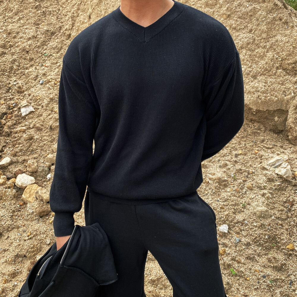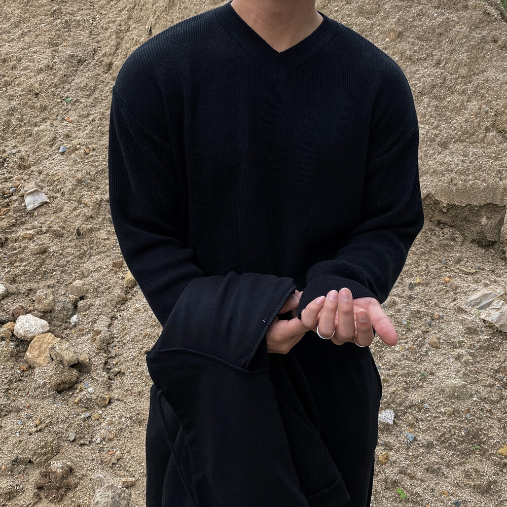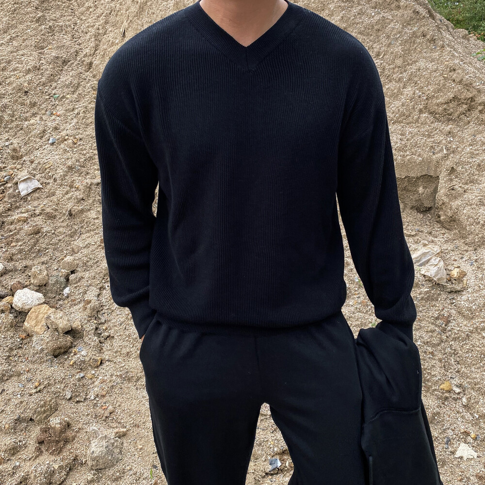 면원단의 브이넥 니트 입니다