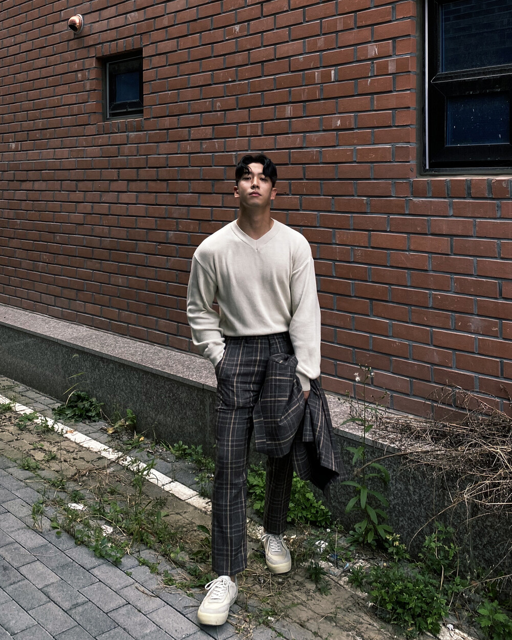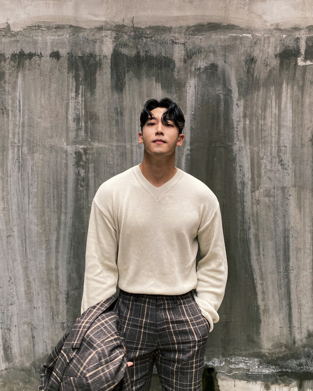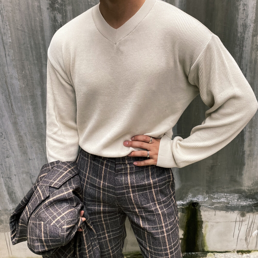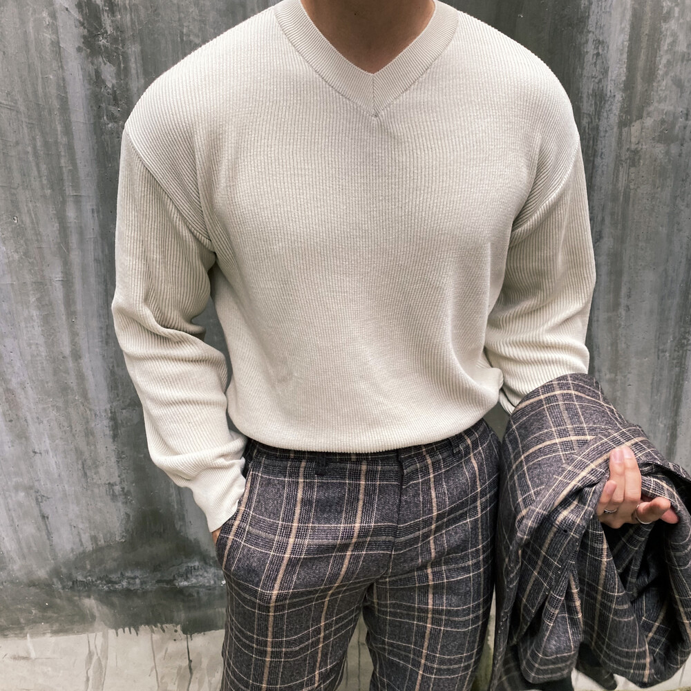 면원단의 브이넥 니트 입니다