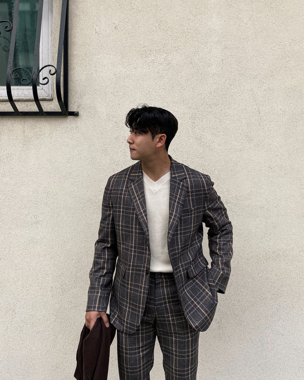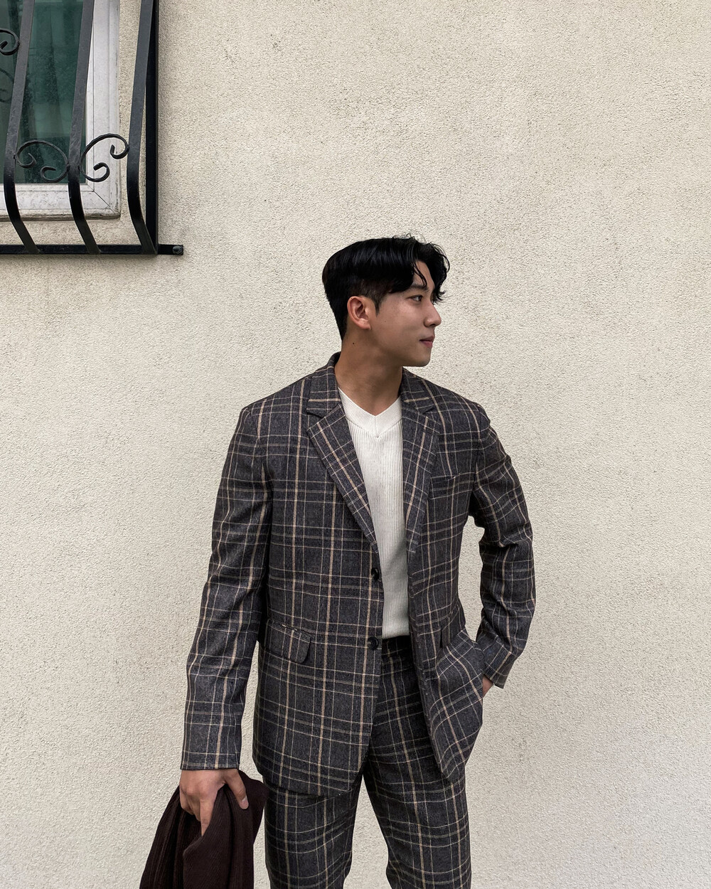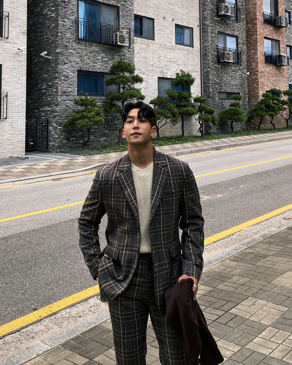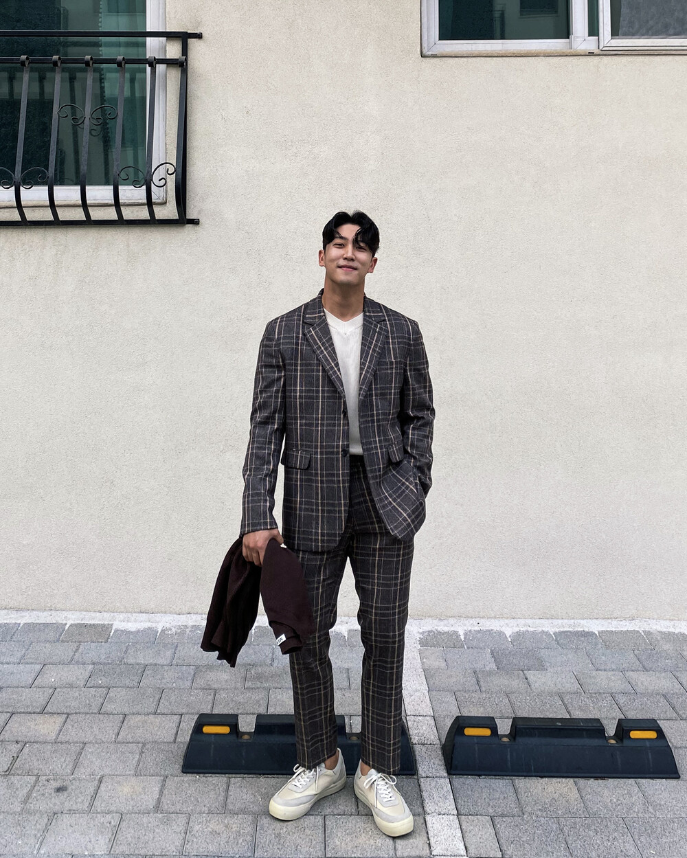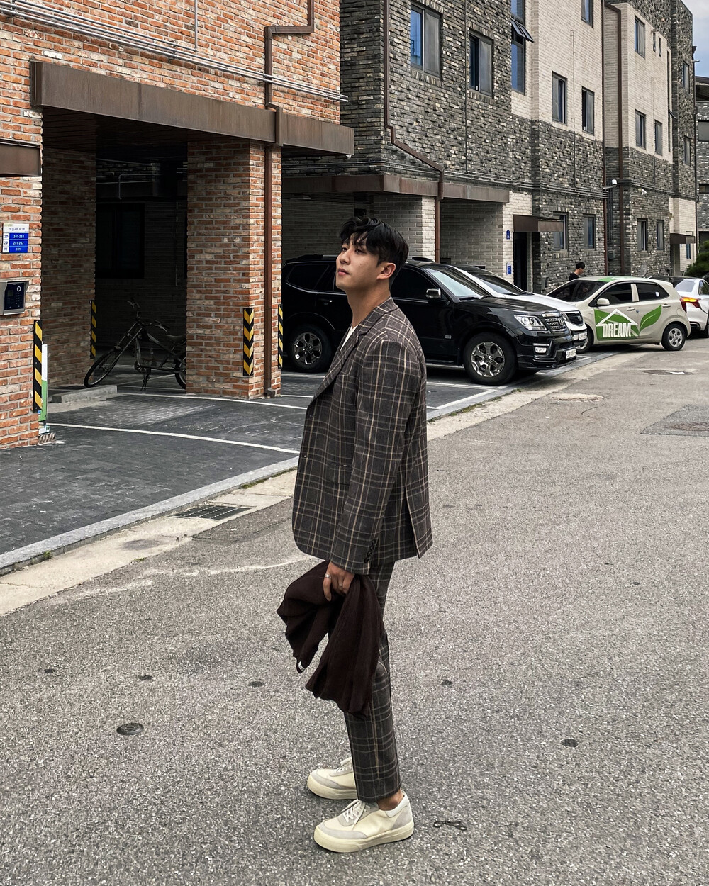 생각보다 과한 체크 컬러감이 아니라 데일리로도 착용이 가능한 셋업입니다