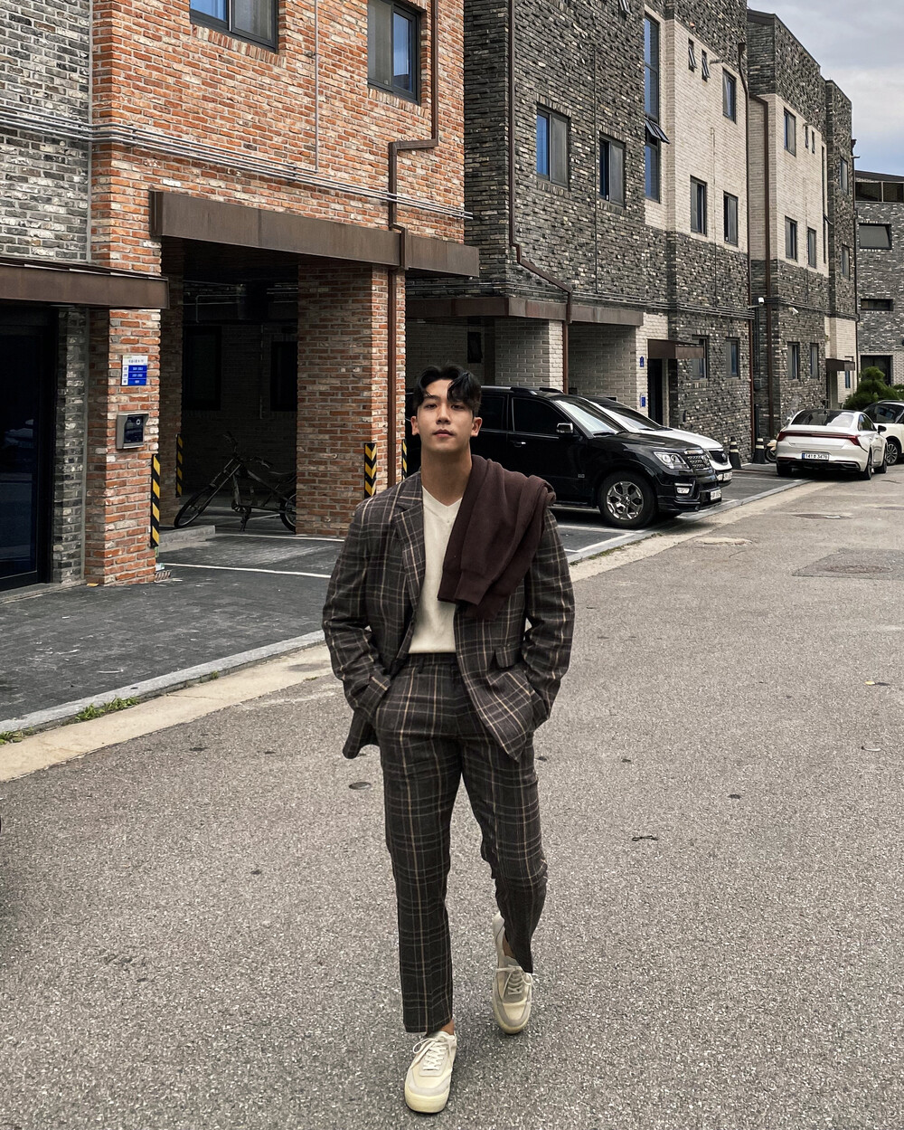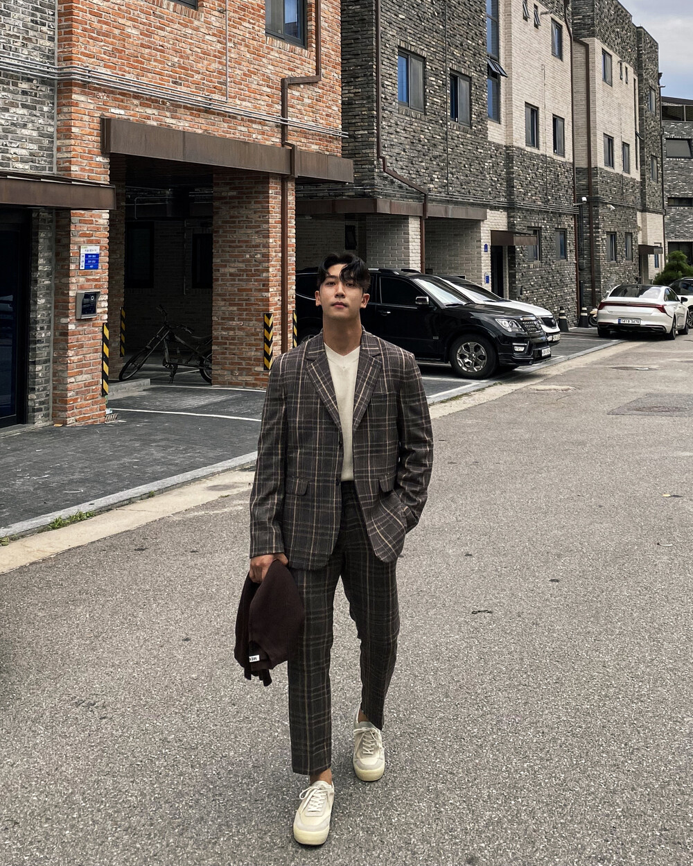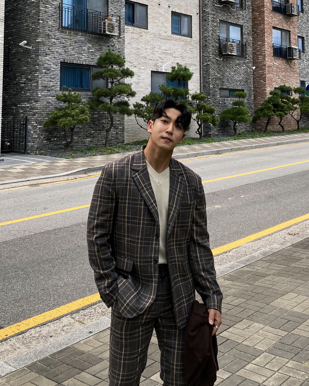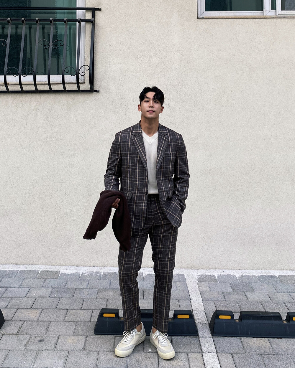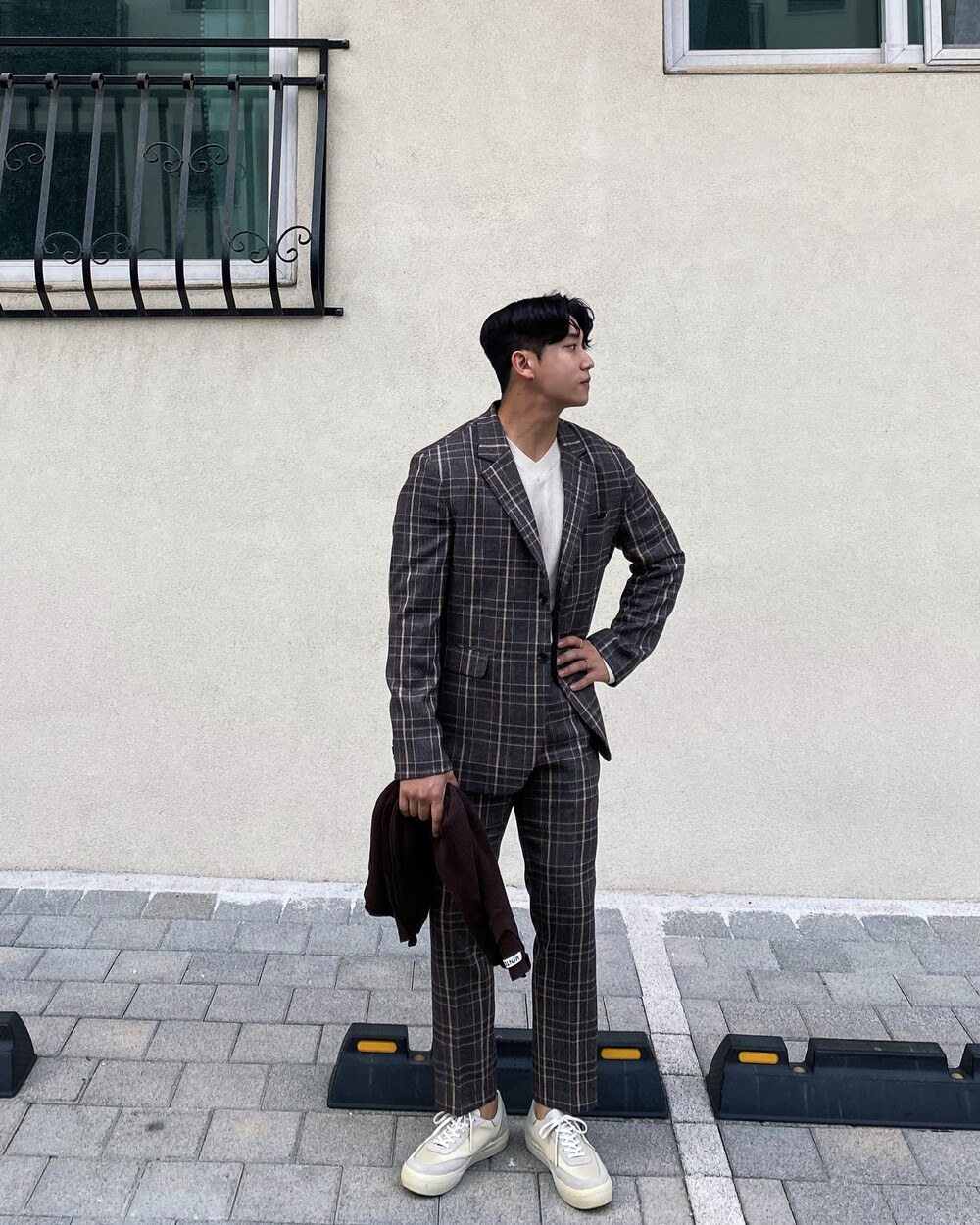 생각보다 과한 체크 컬러감이 아니라 데일리로도 착용이 가능한 셋업입니다