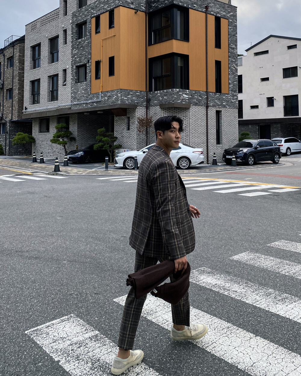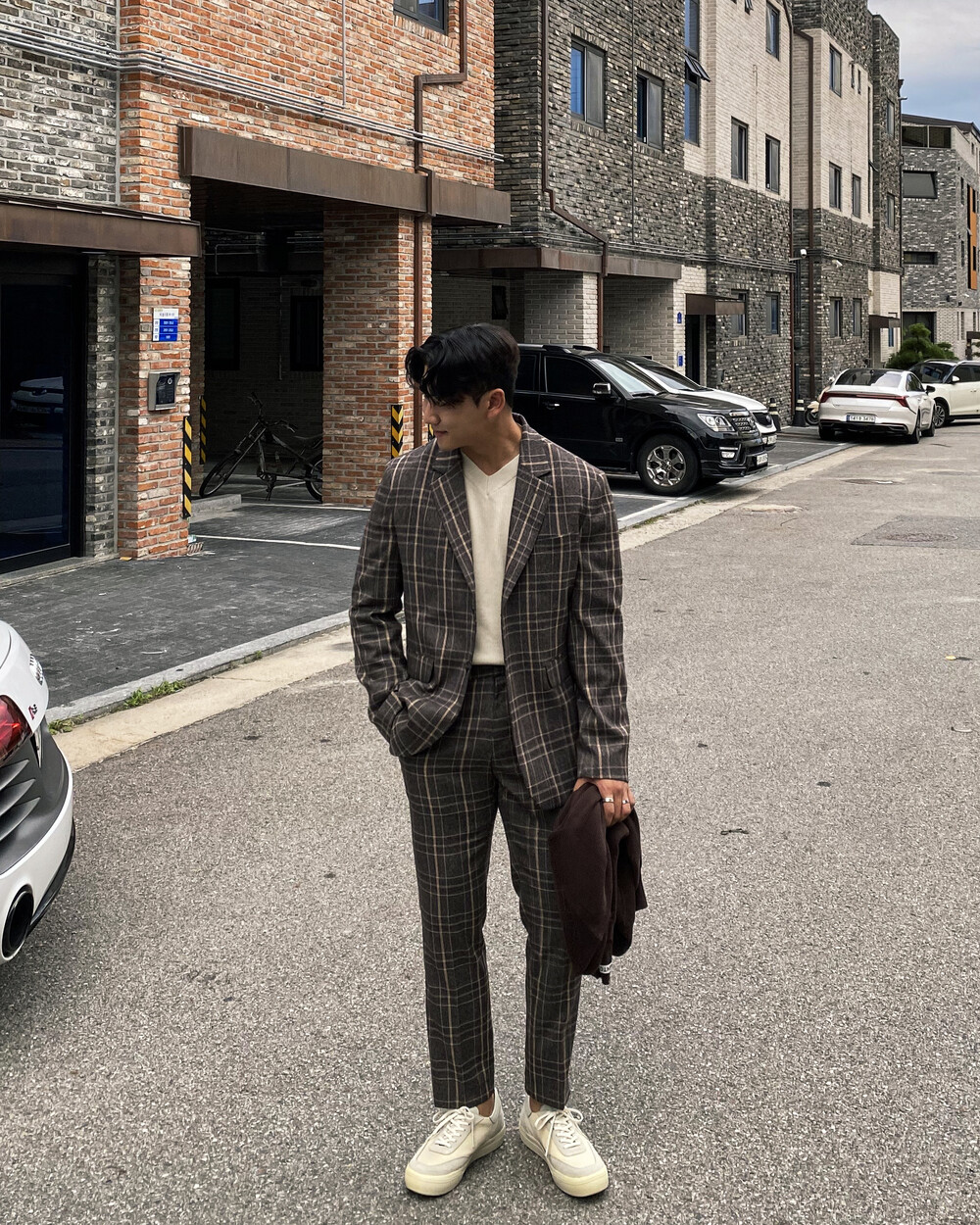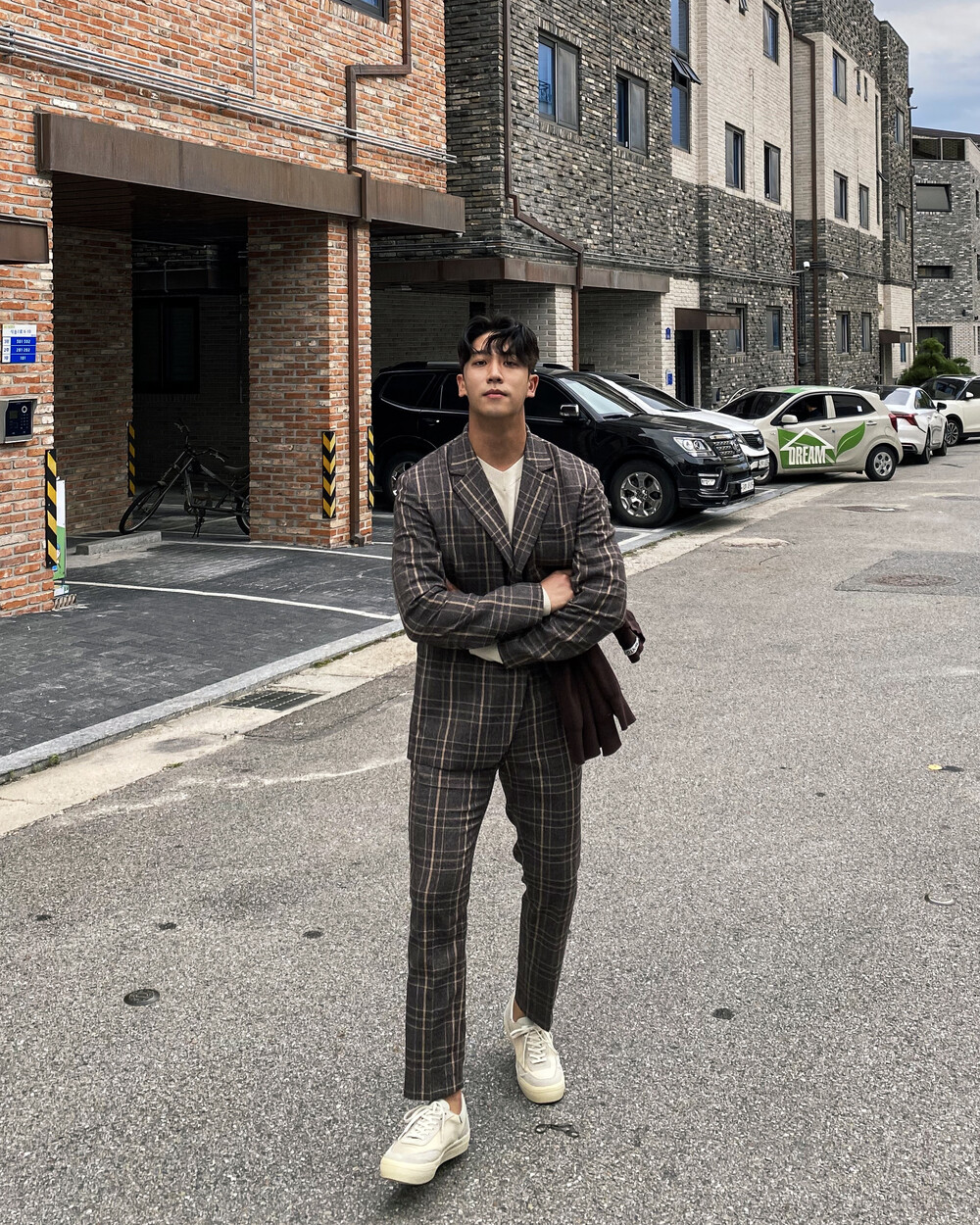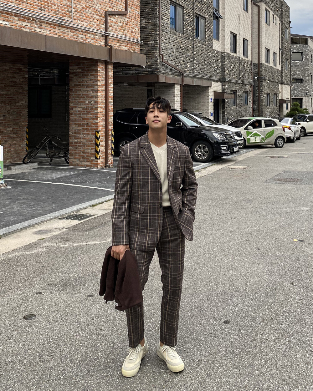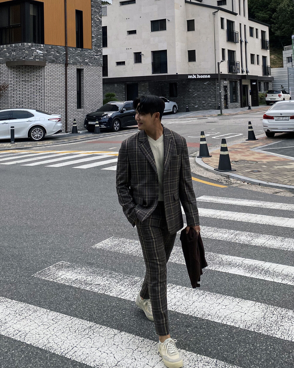 생각보다 과한 체크 컬러감이 아니라 데일리로도 착용이 가능한 셋업입니다