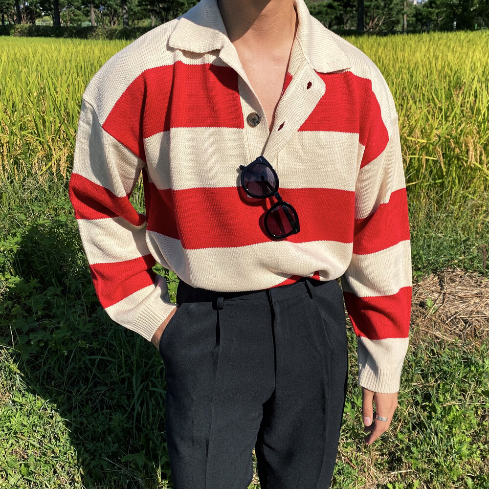 [Tomtyler] Ray Stripe Collar Knit [2color]