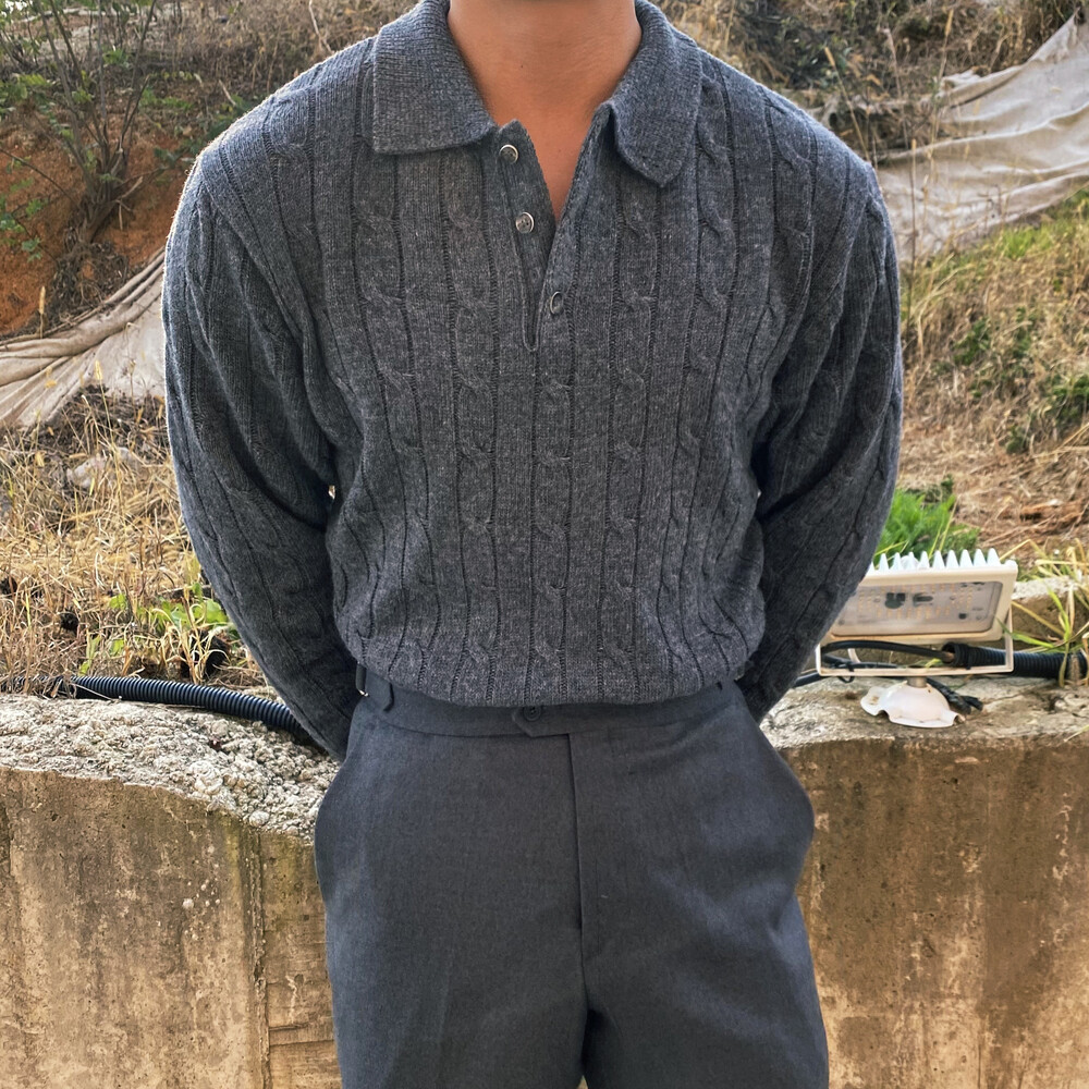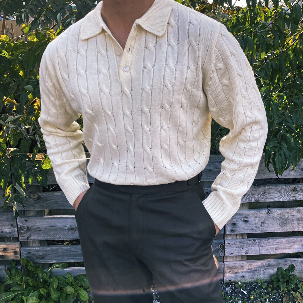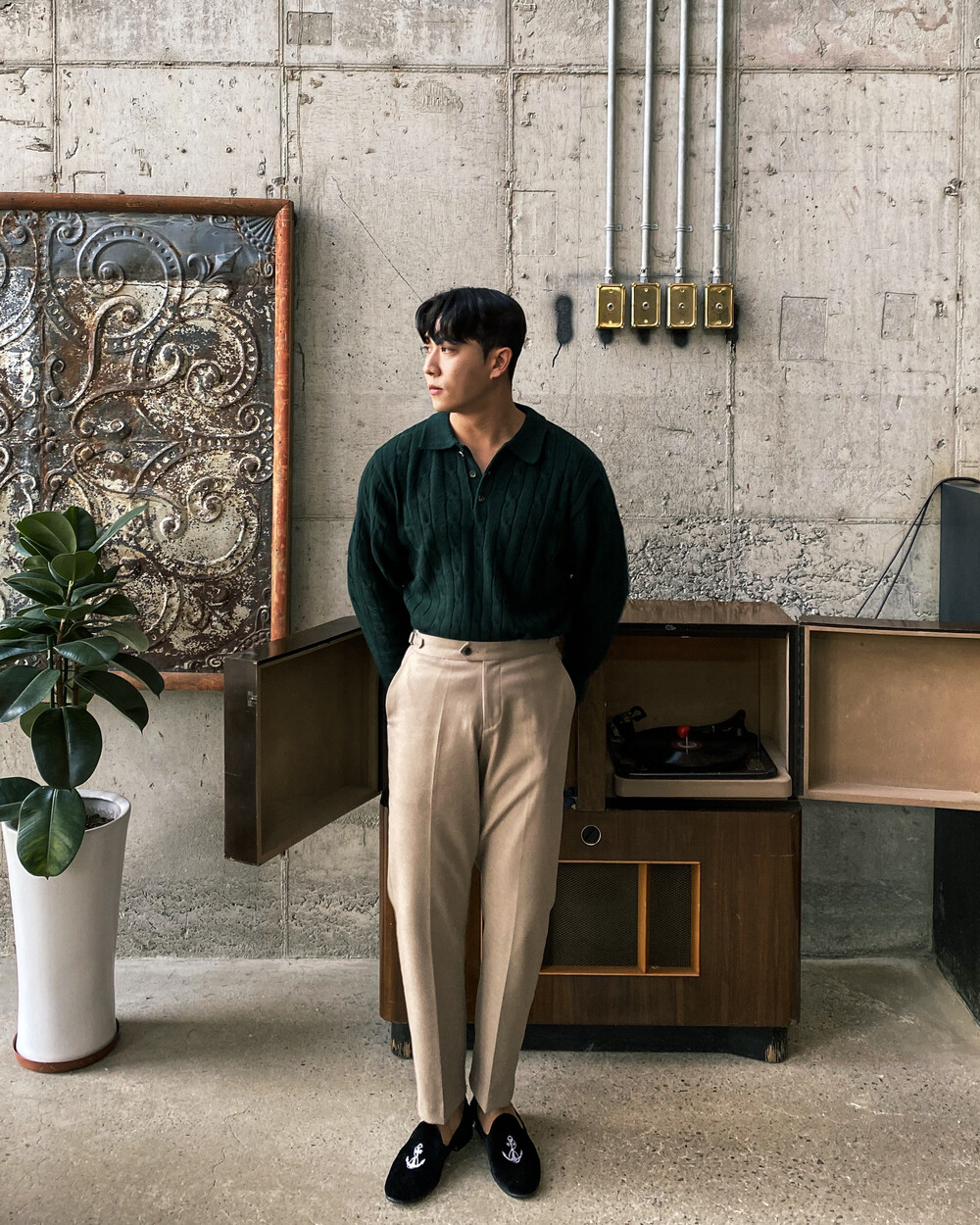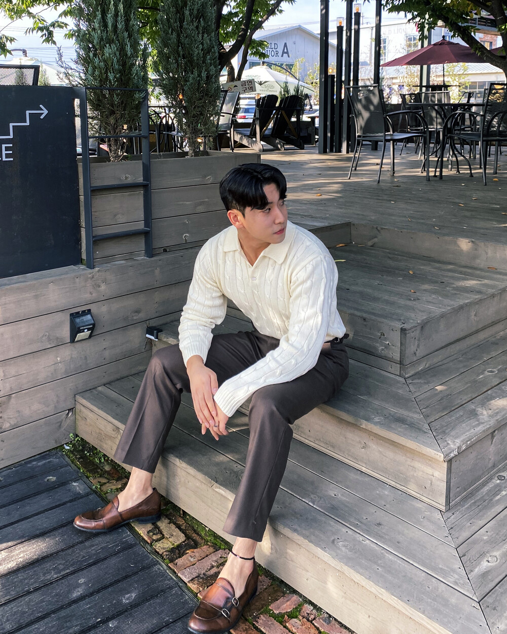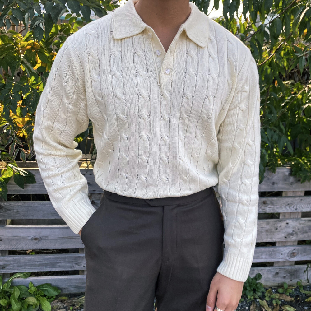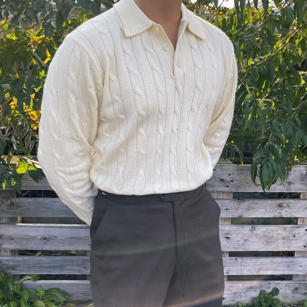 울 원단의 따뜻함 가득한 꽈배기 패턴의 카라니트입니다