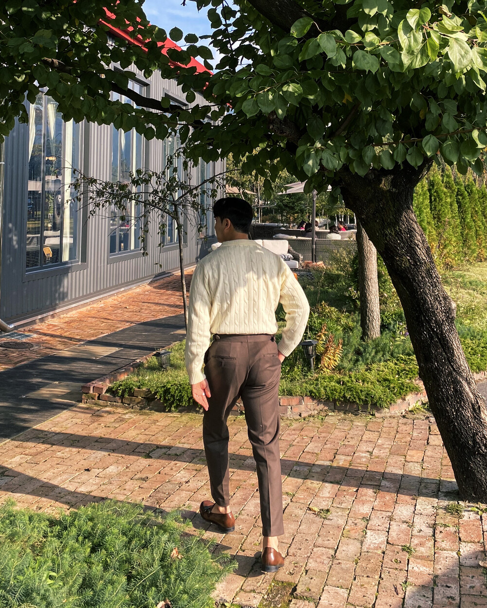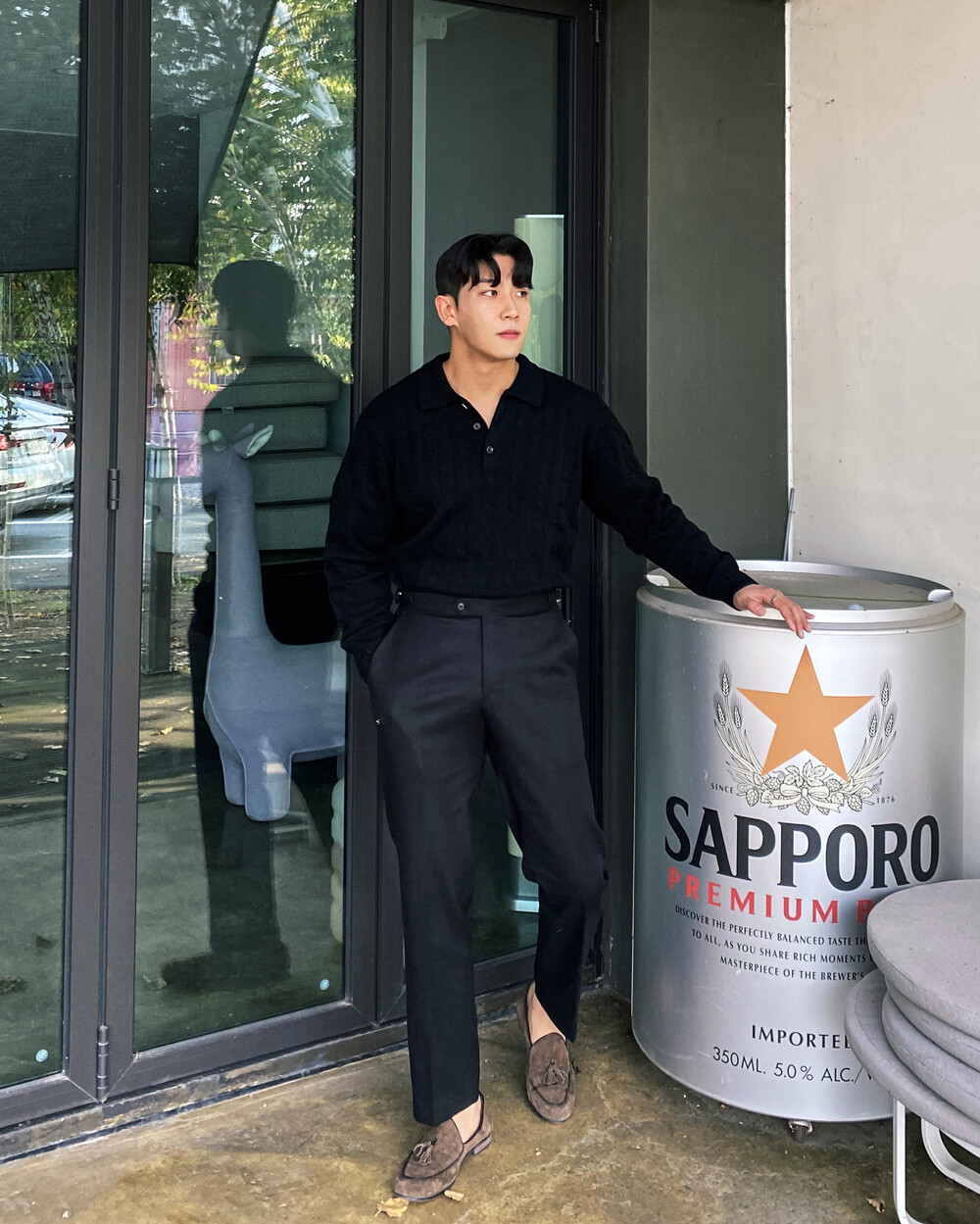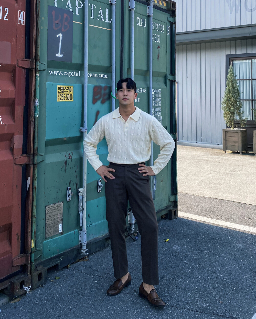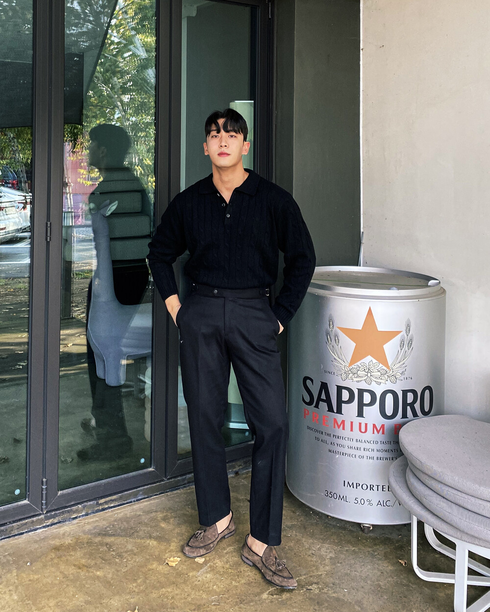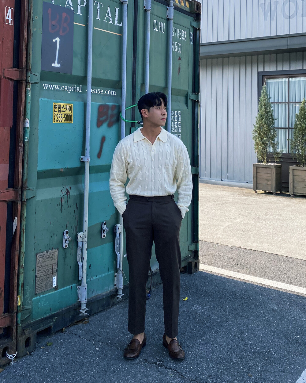 울 원단의 따뜻함 가득한 꽈배기 패턴의 카라니트입니다