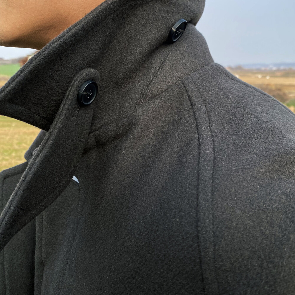 카라가 하이넥으로 올라와 보온성도 뛰어난 발마칸 코트입니다