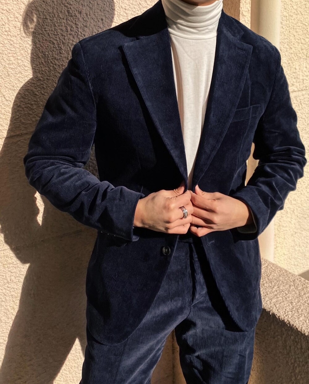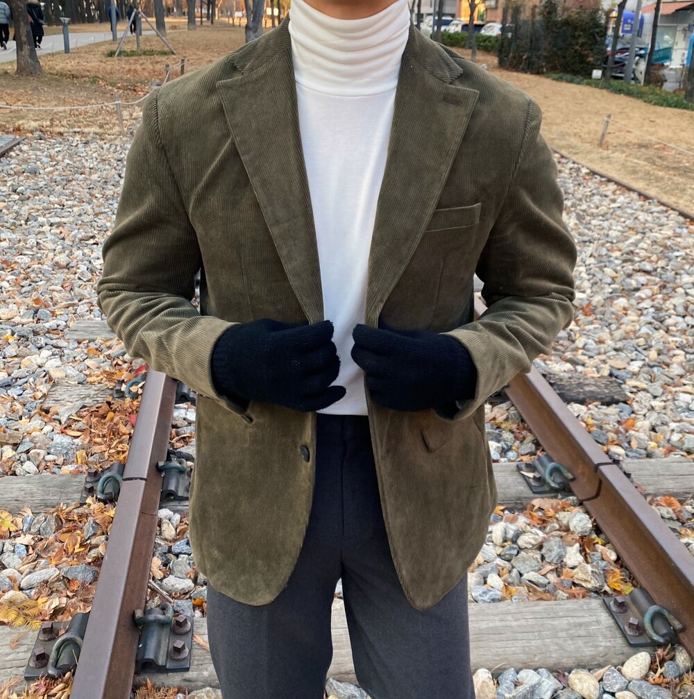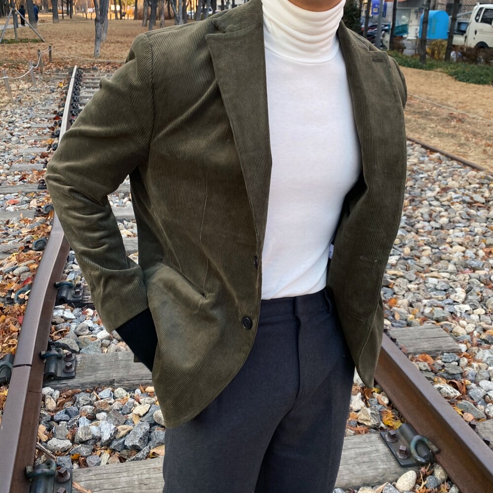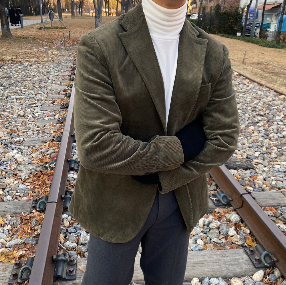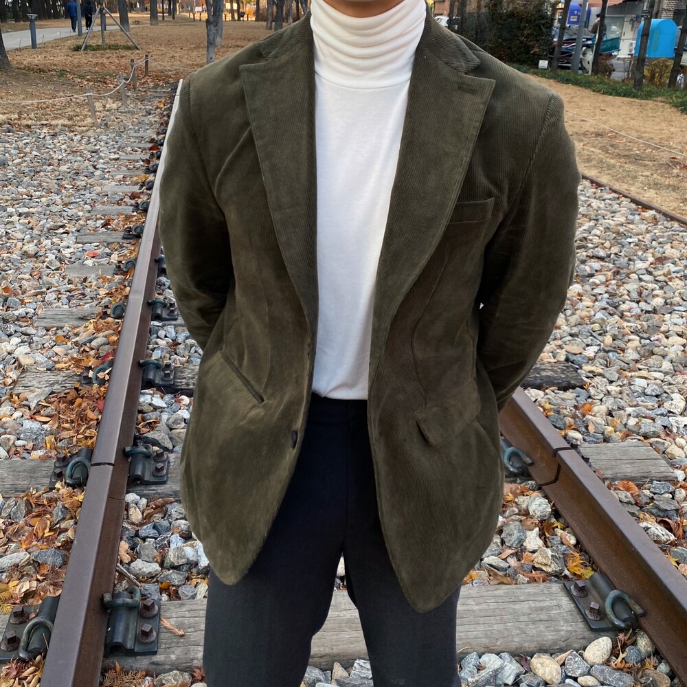 두꺼운 면 원단의 두꺼운 골덴 라인이 한겨울에도 보온성을 유지시켜주며 멋을 지켜줄 수 있는 싱글자켓입니다