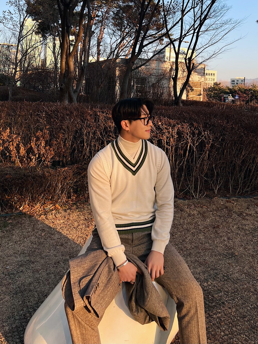 격식이 필요한 자리에 입고가도 무난하게 잘 어울리는 헤링본 수트입니다