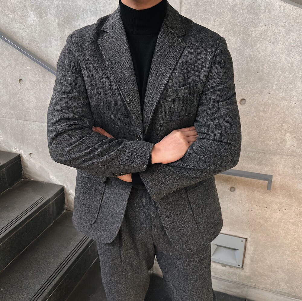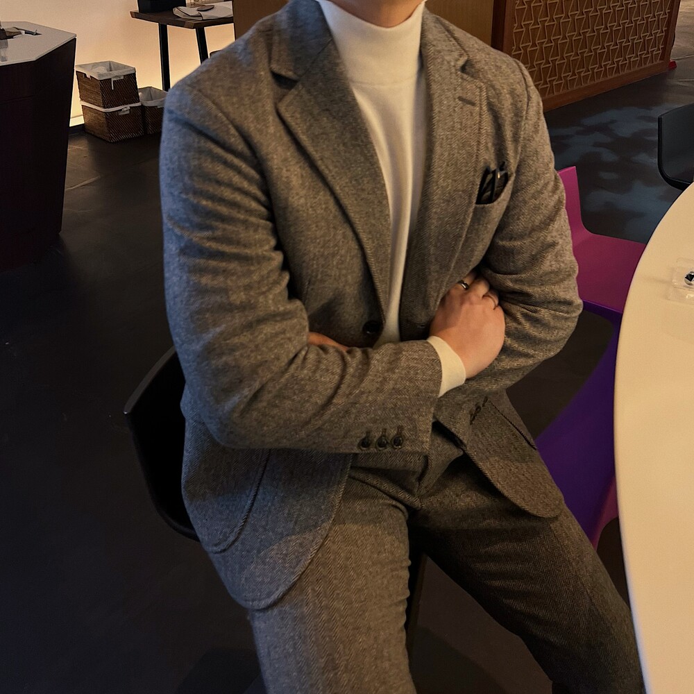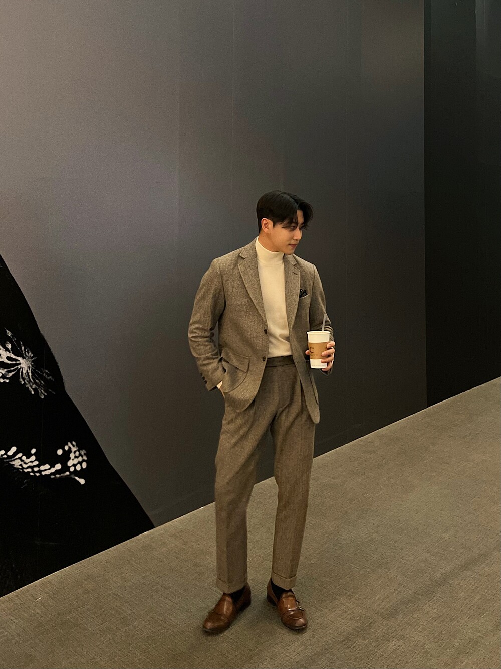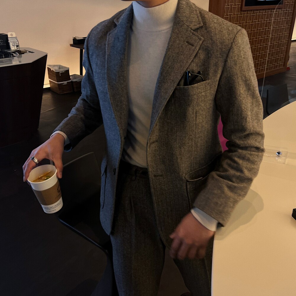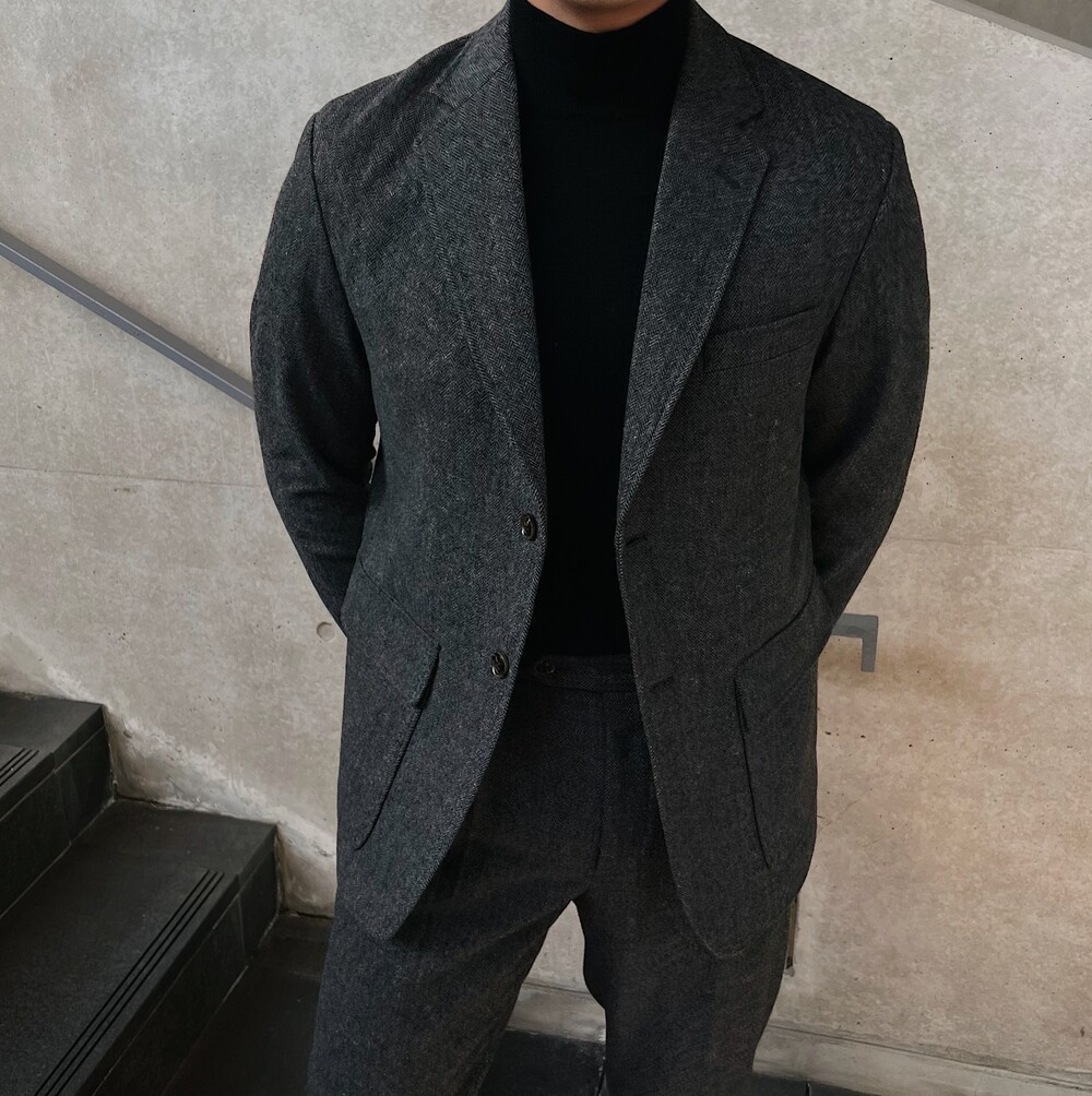 격식이 필요한 자리에 입고가도 무난하게 잘 어울리는 헤링본 수트입니다