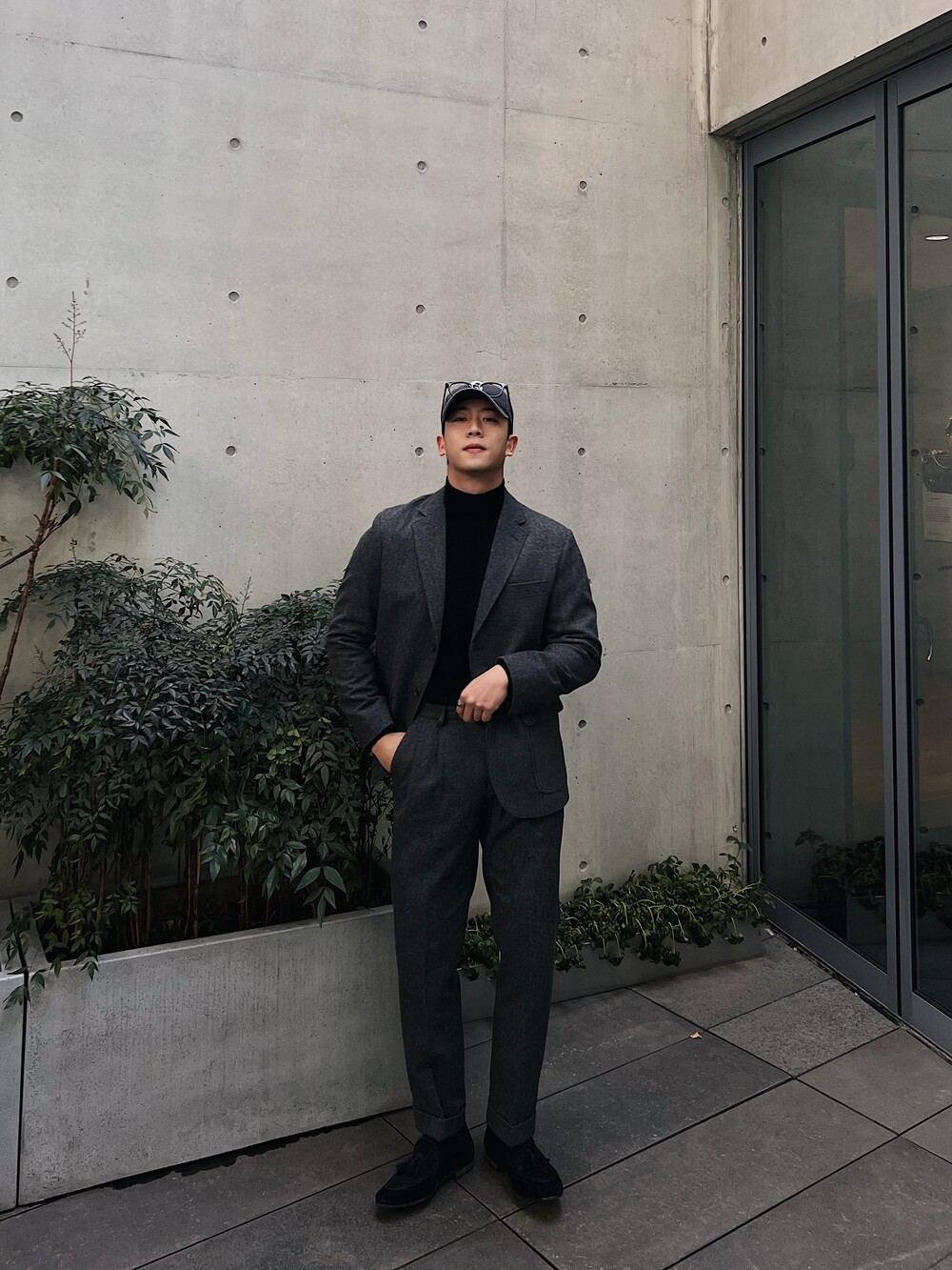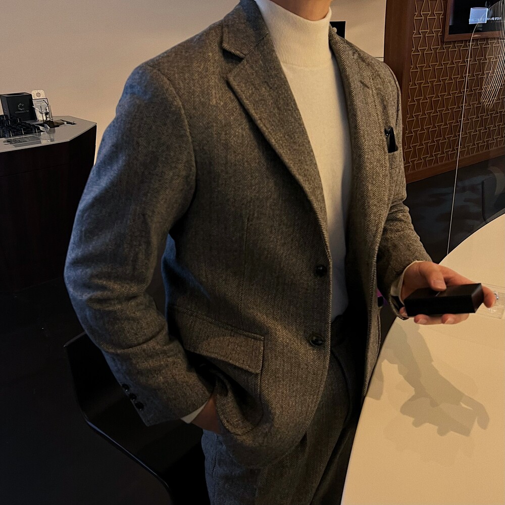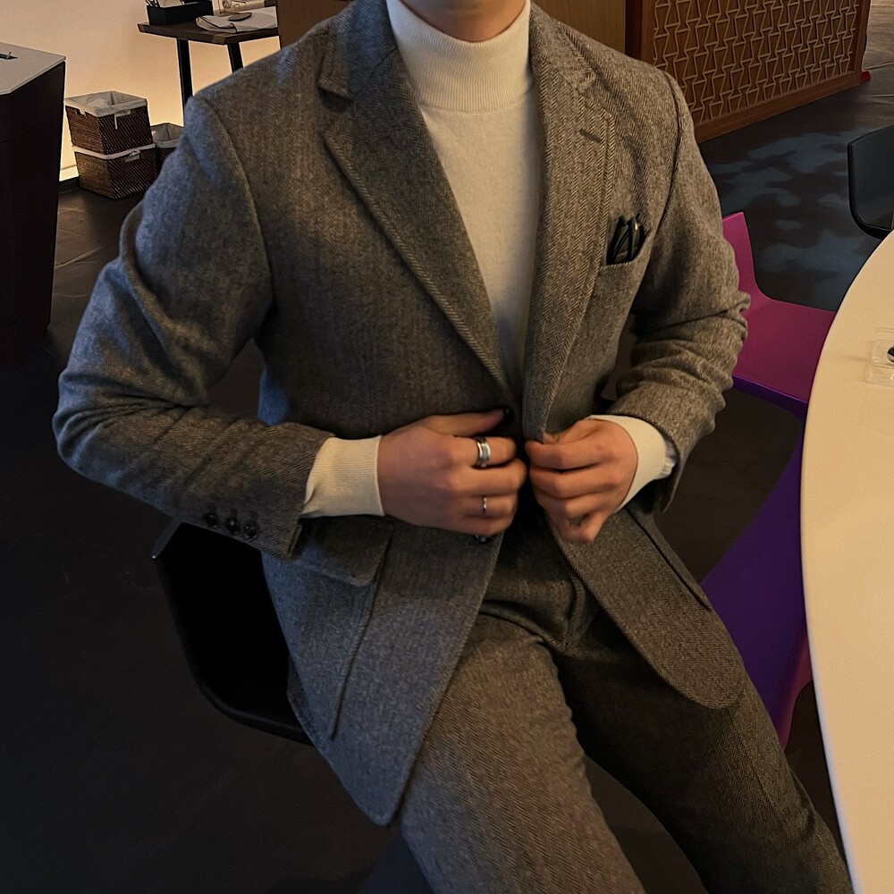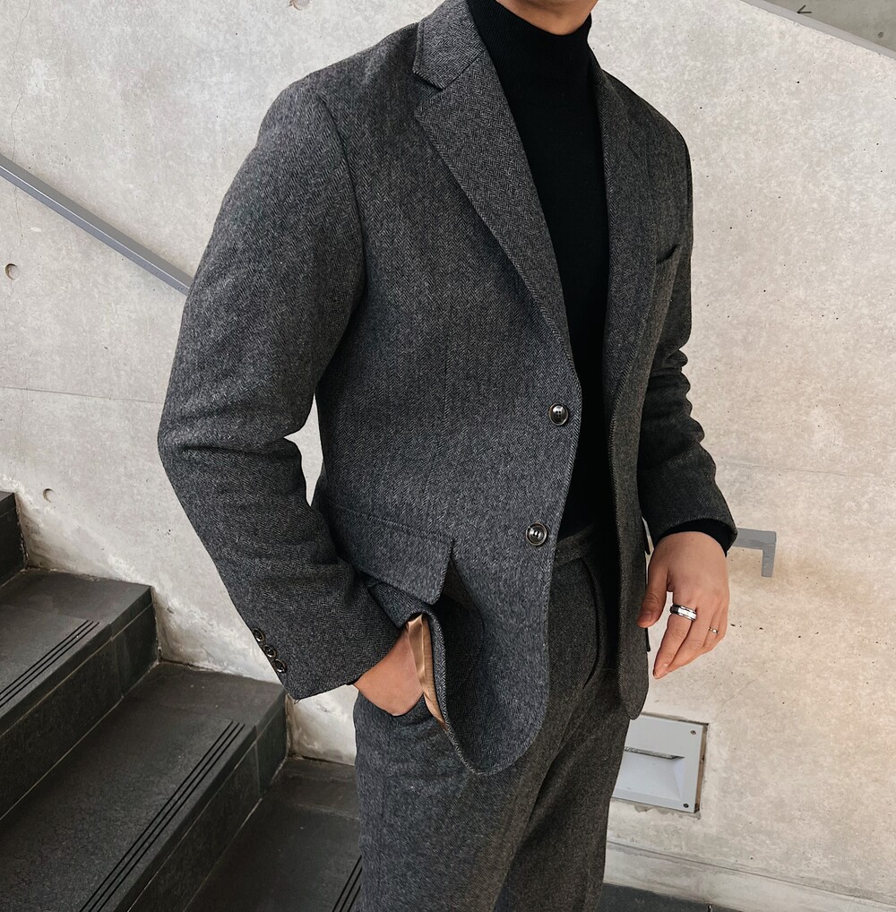 격식이 필요한 자리에 입고가도 무난하게 잘 어울리는 헤링본 수트입니다