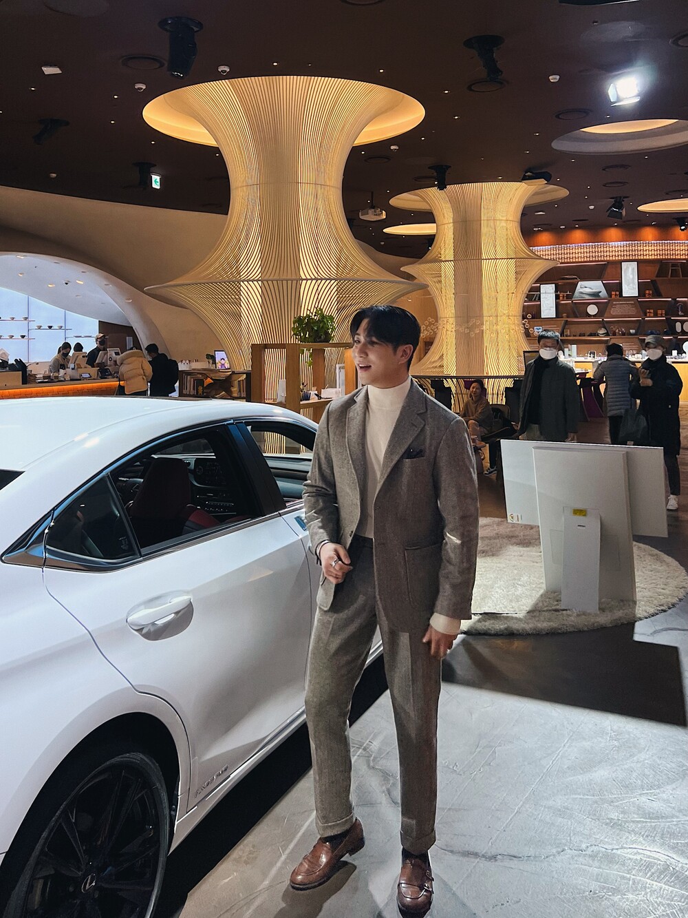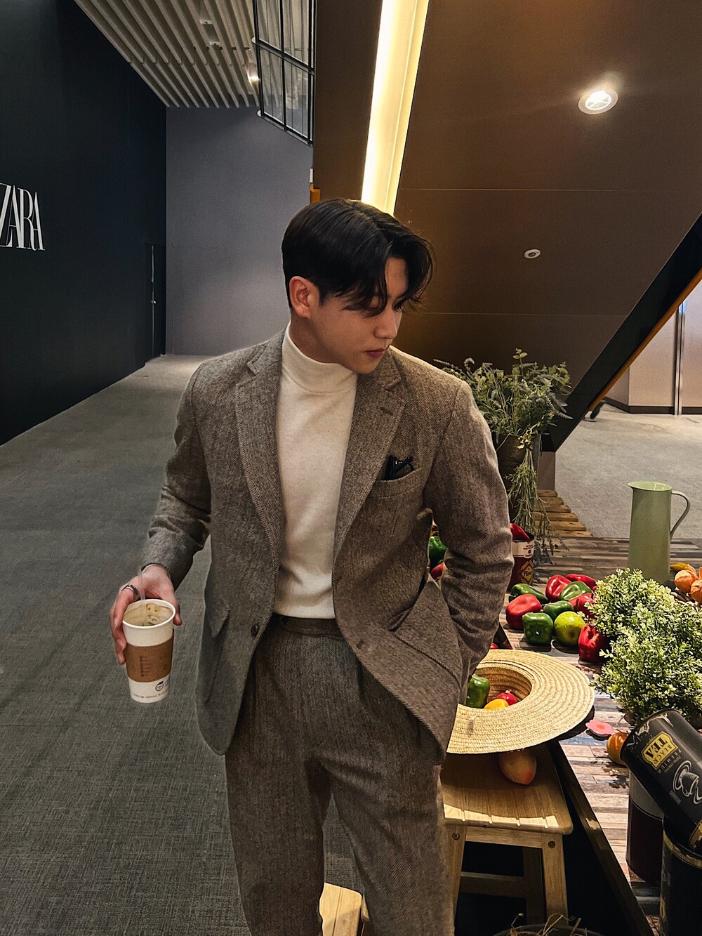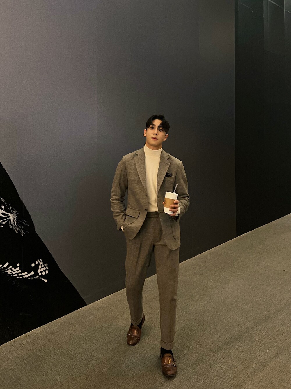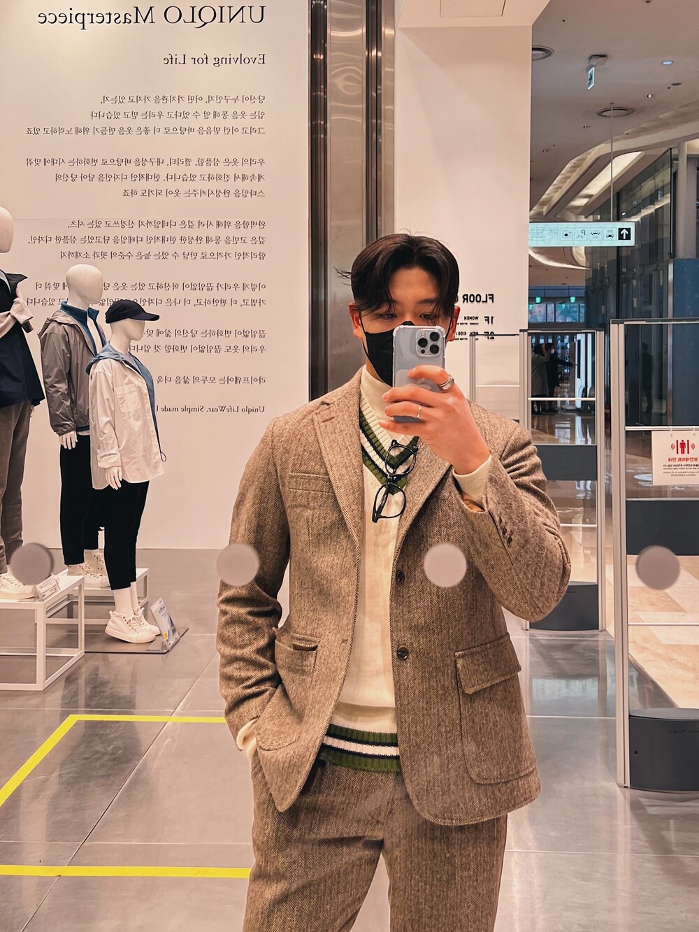 격식이 필요한 자리에 입고가도 무난하게 잘 어울리는 헤링본 수트입니다