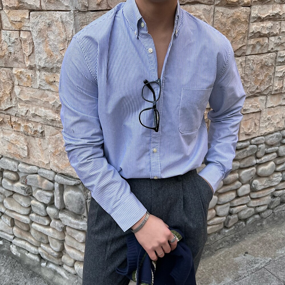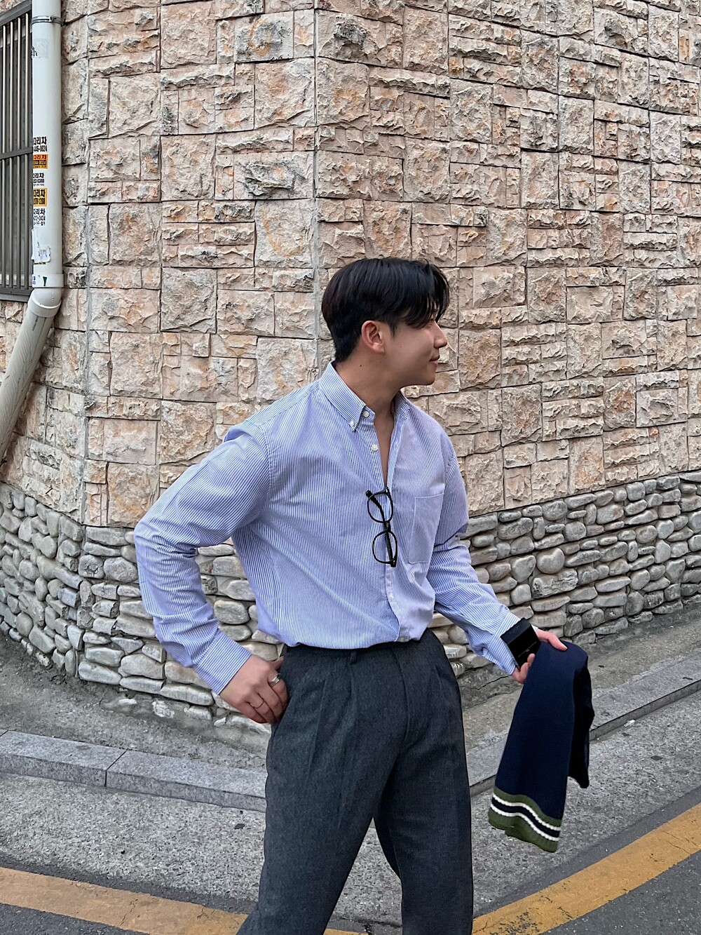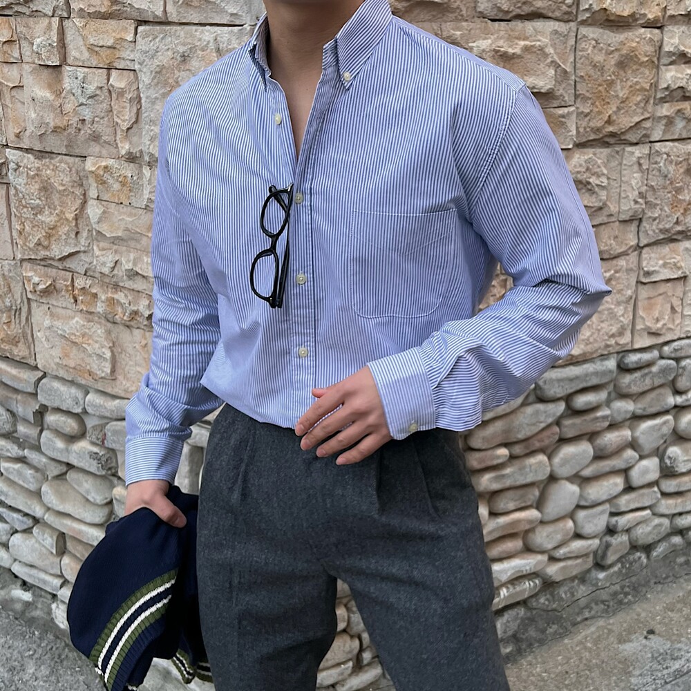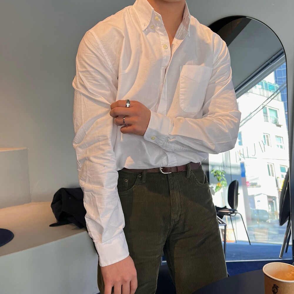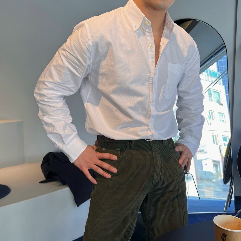 정장이나 포멀한 룩에 이너웨어로 입기 좋은 옥스포드 셔츠입니다