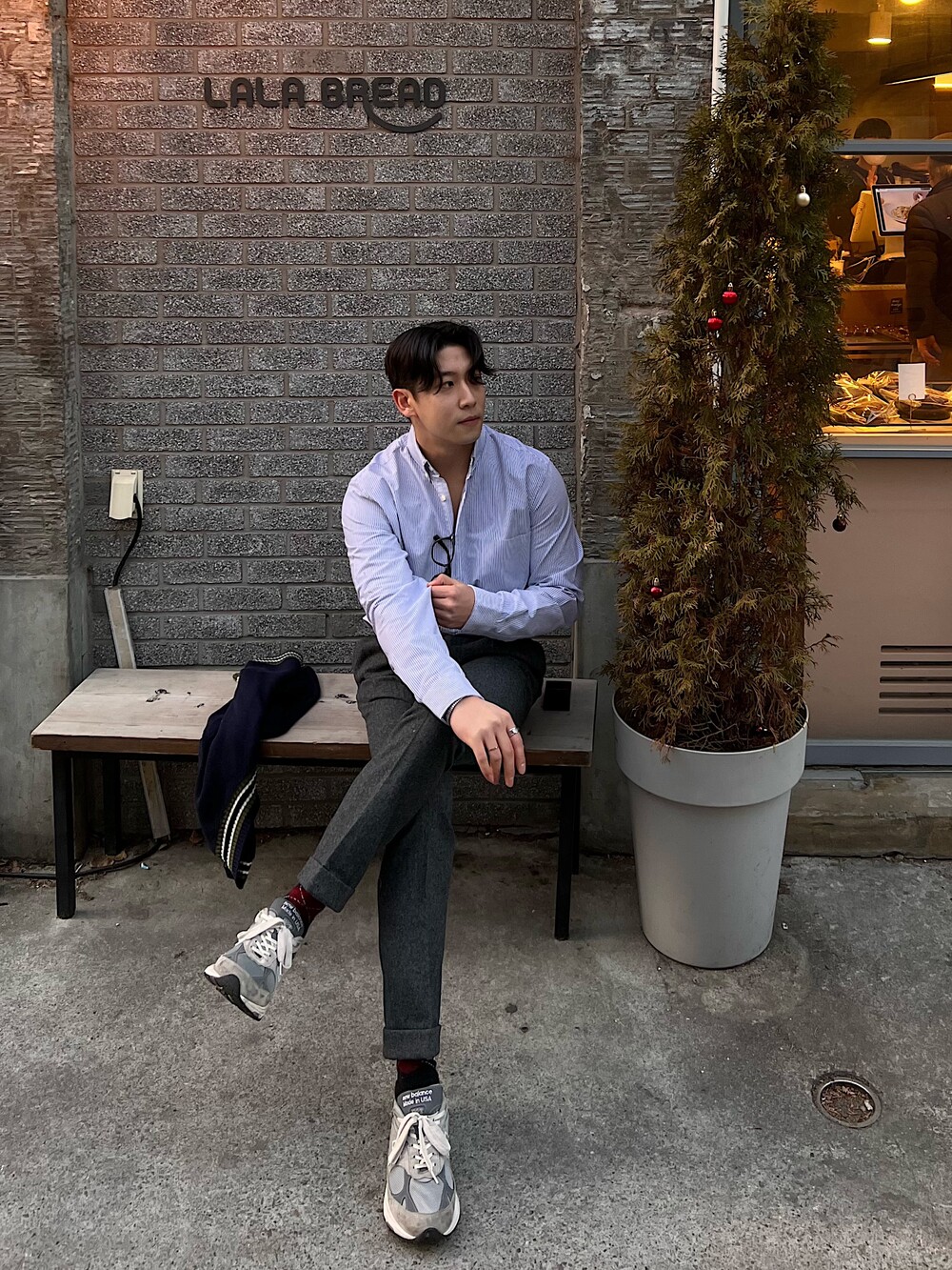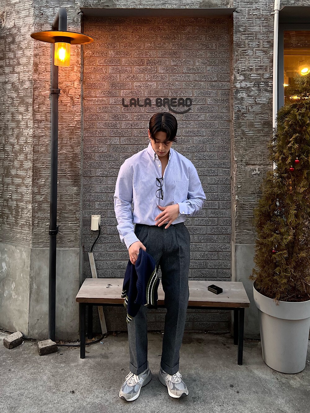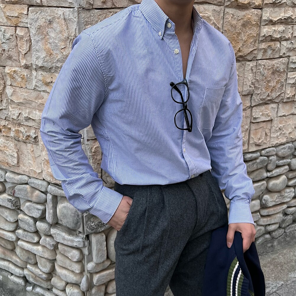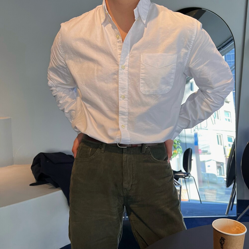 정장이나 포멀한 룩에 이너웨어로 입기 좋은 옥스포드 셔츠입니다