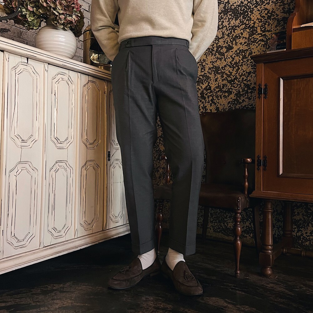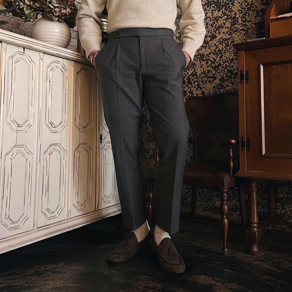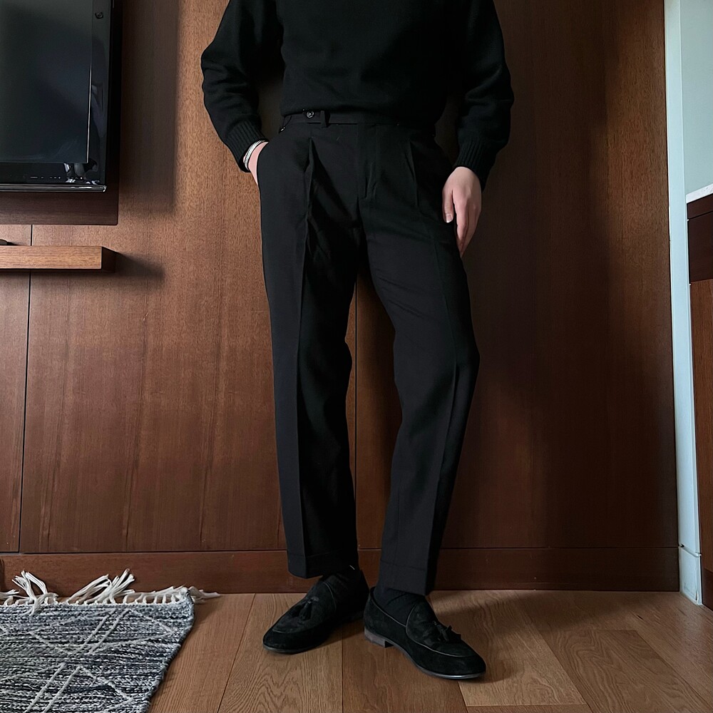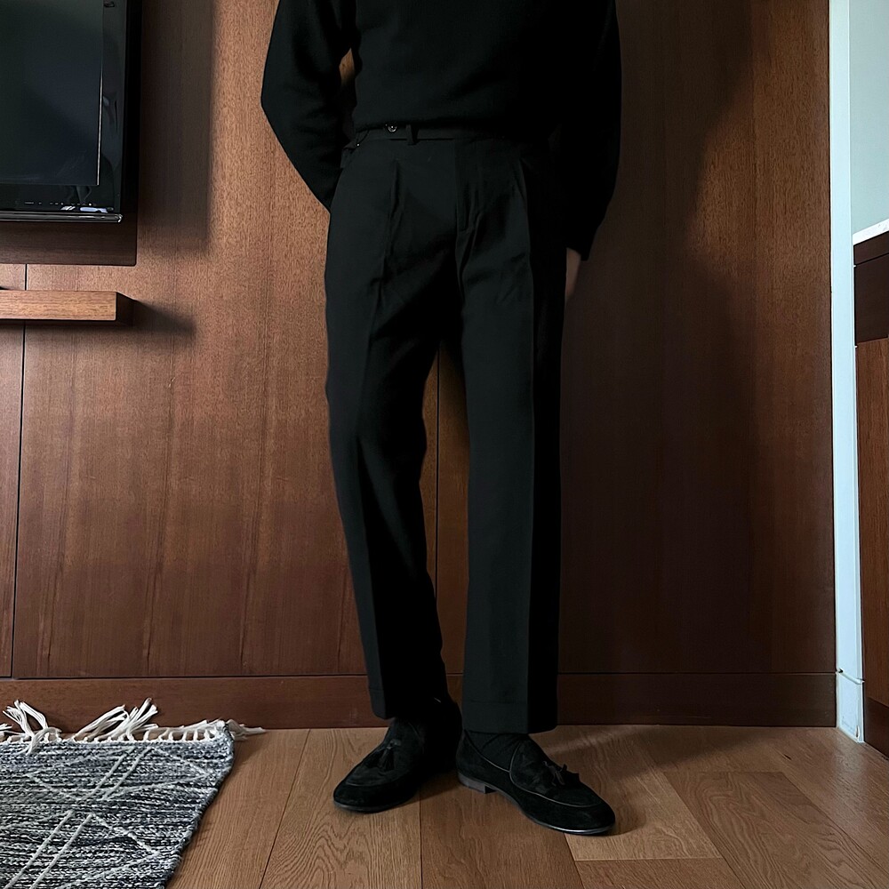 따뜻한 울 원단의 테이퍼드 핏으로 클래식함을 연출하기 좋은 팬츠입니다