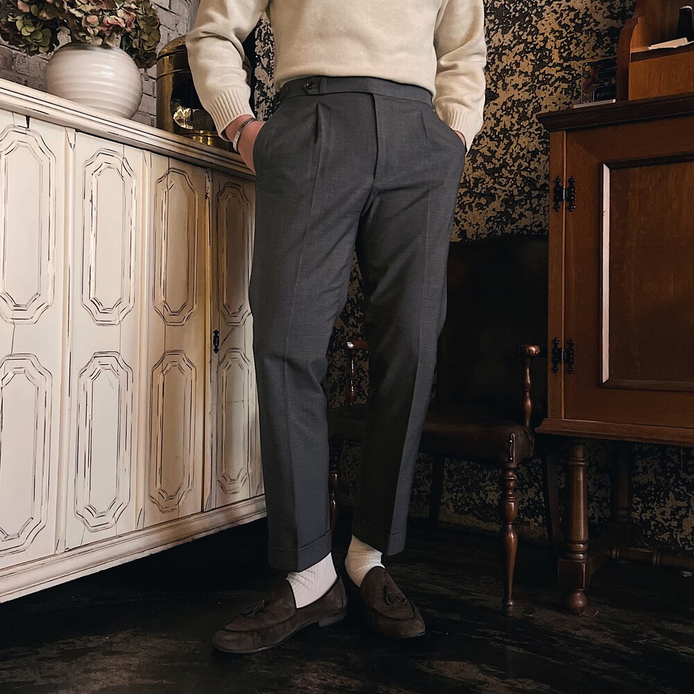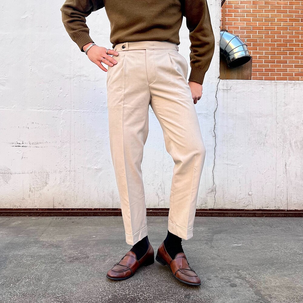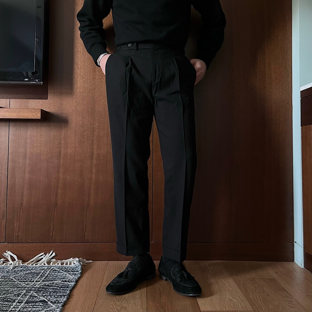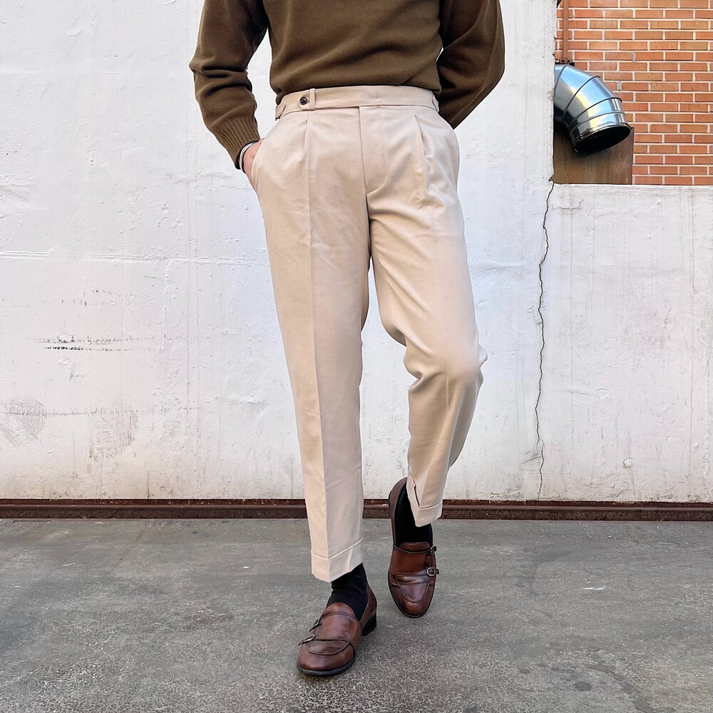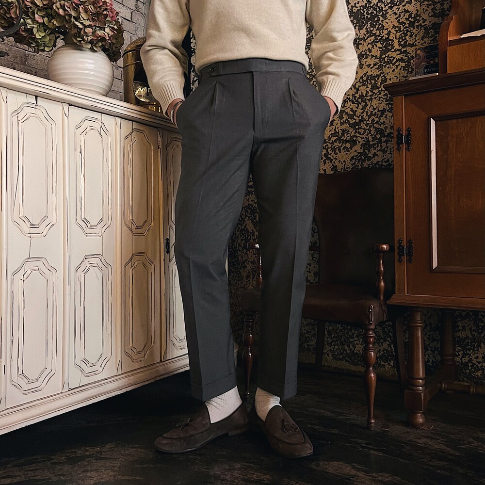 따뜻한 울 원단의 테이퍼드 핏으로 클래식함을 연출하기 좋은 팬츠입니다