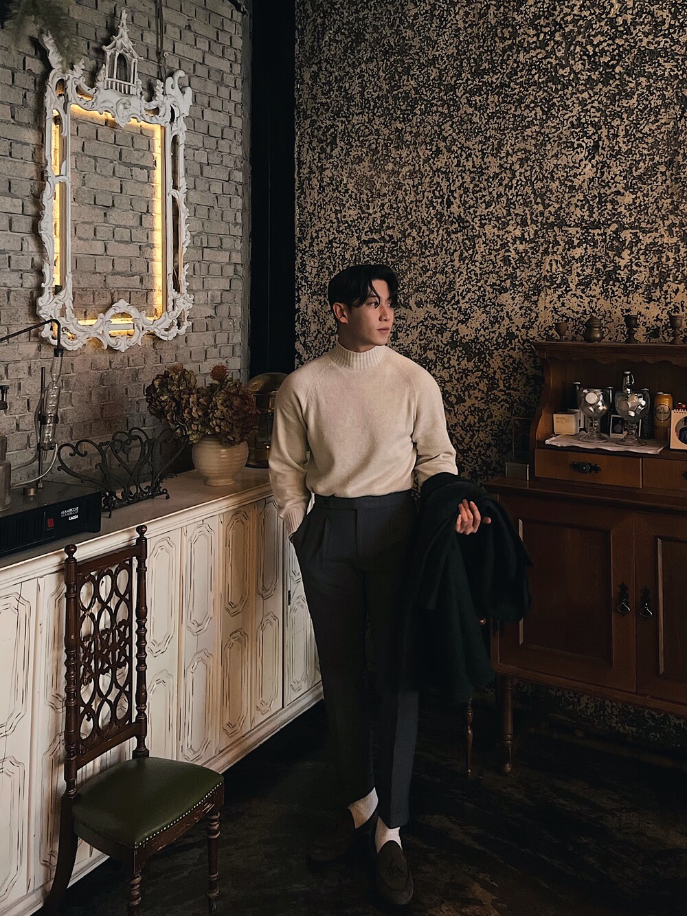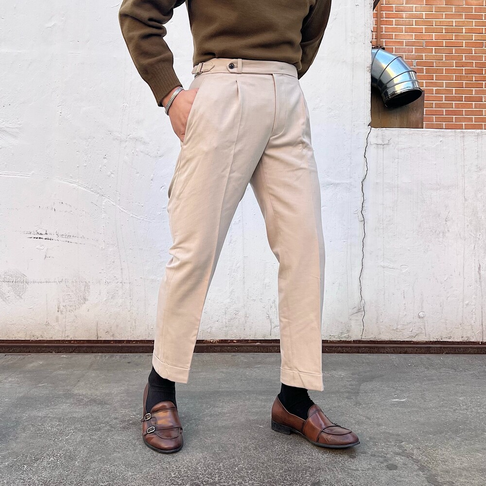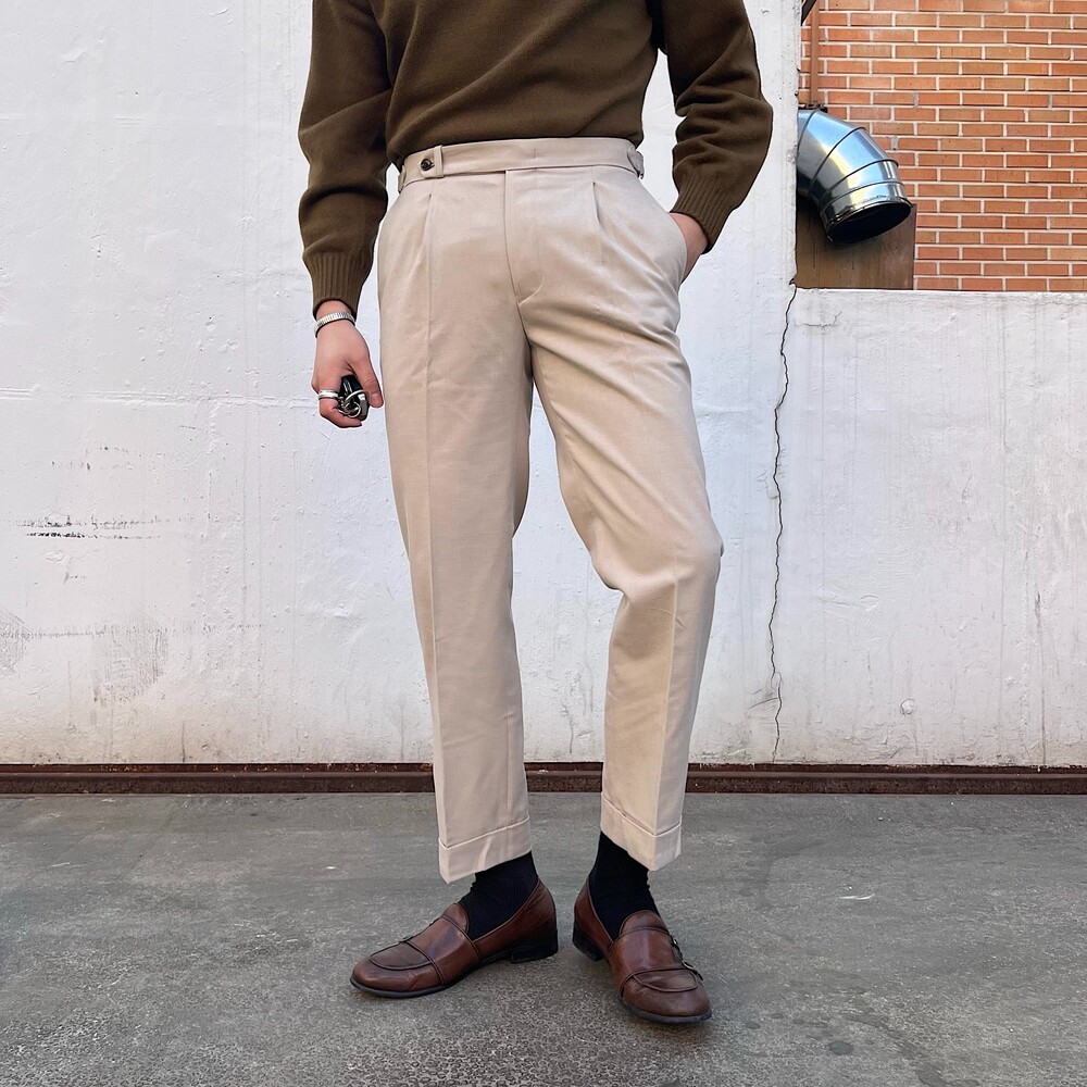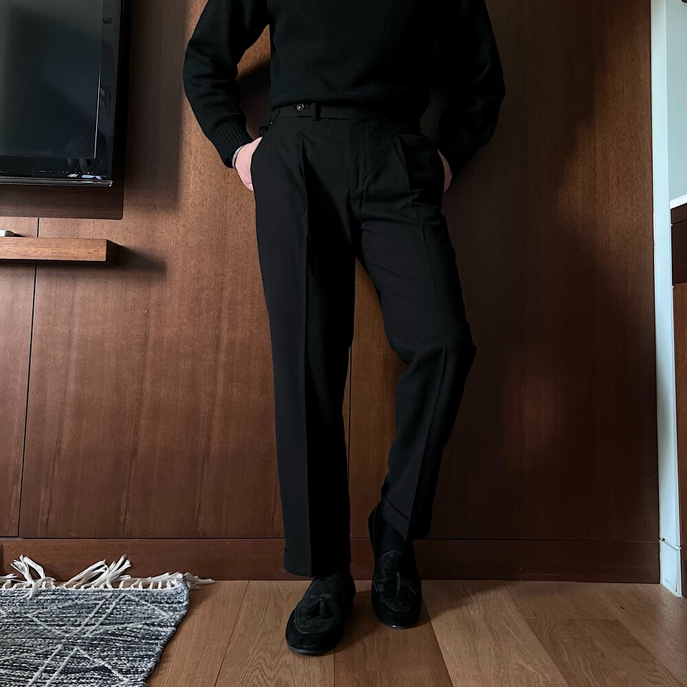 따뜻한 울 원단의 테이퍼드 핏으로 클래식함을 연출하기 좋은 팬츠입니다