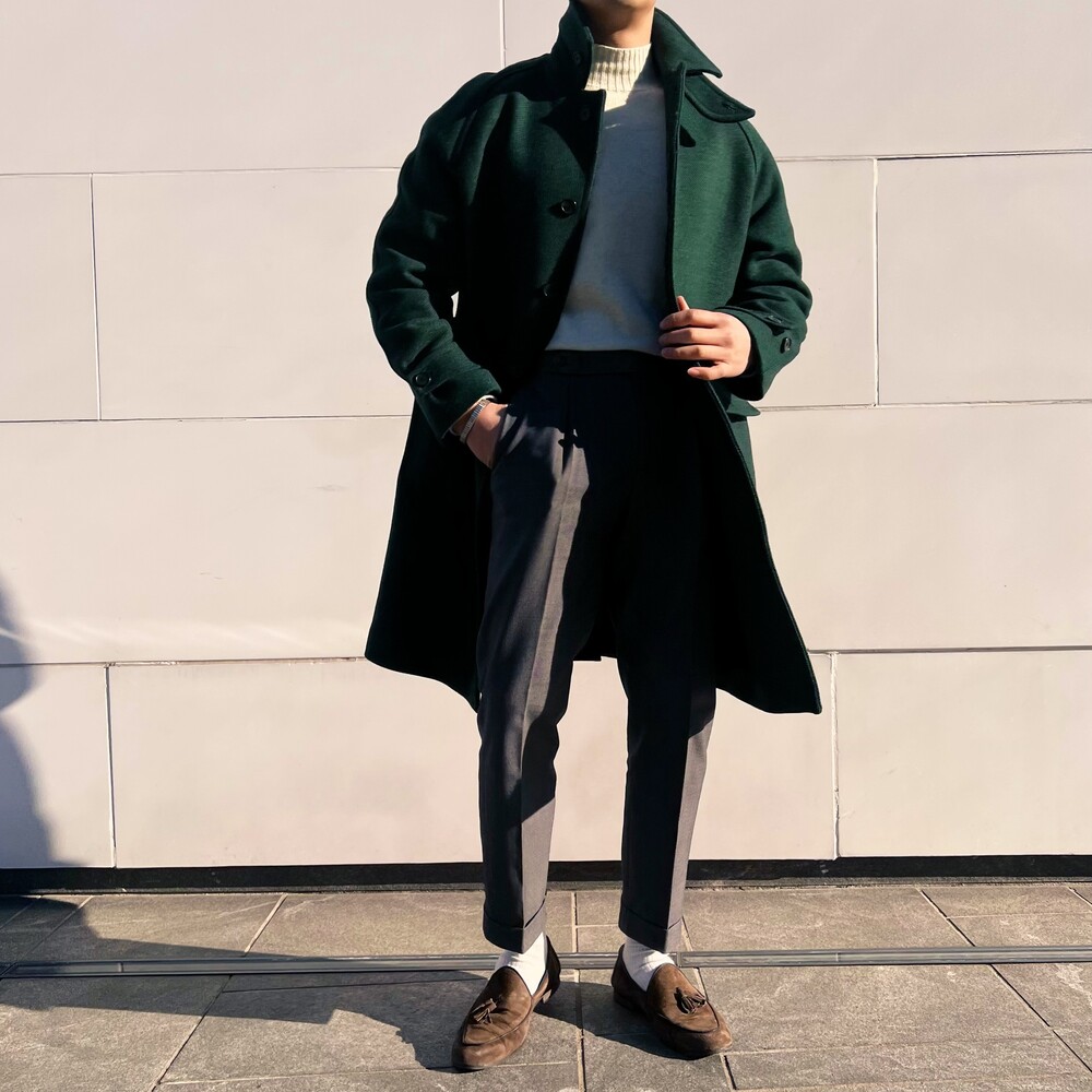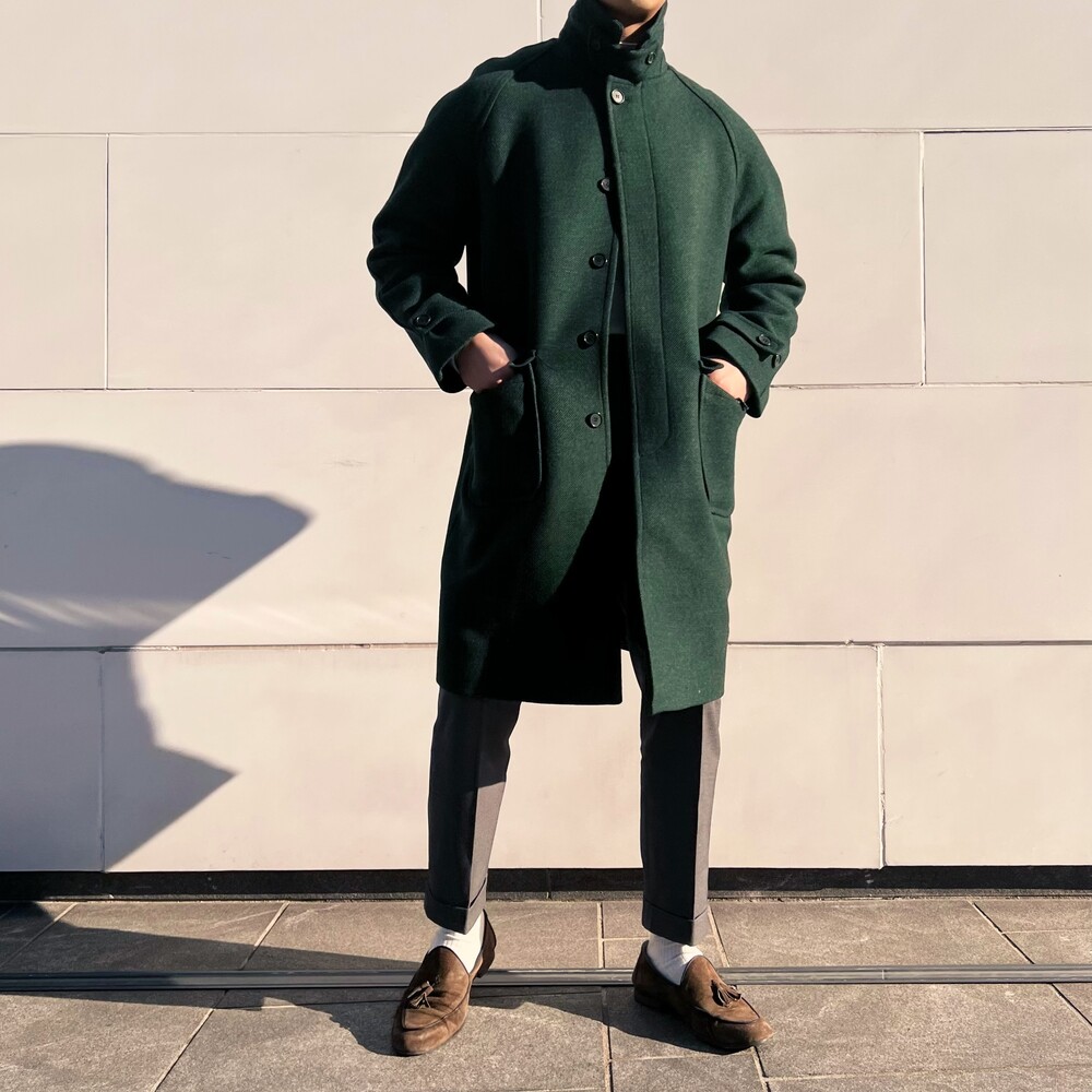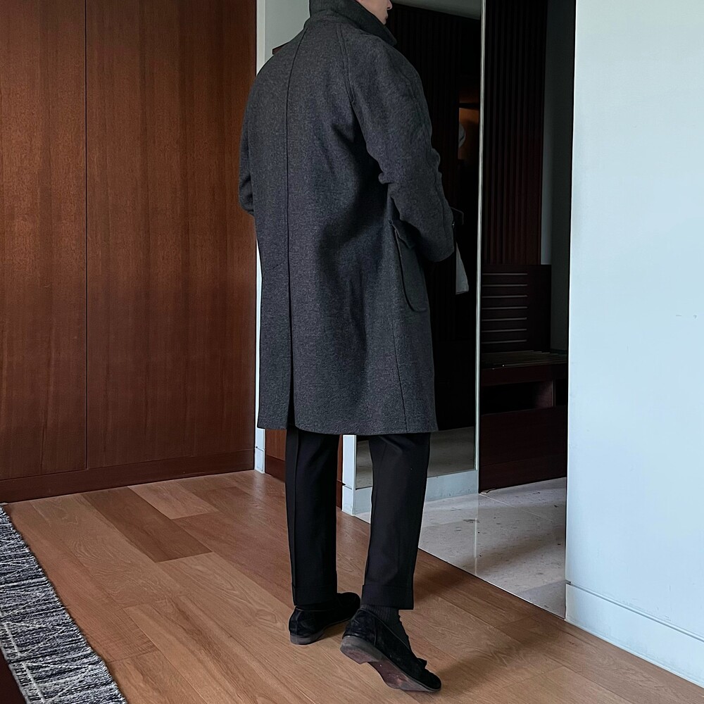레글런 디자인의 클래식한 발마칸 코트입니다