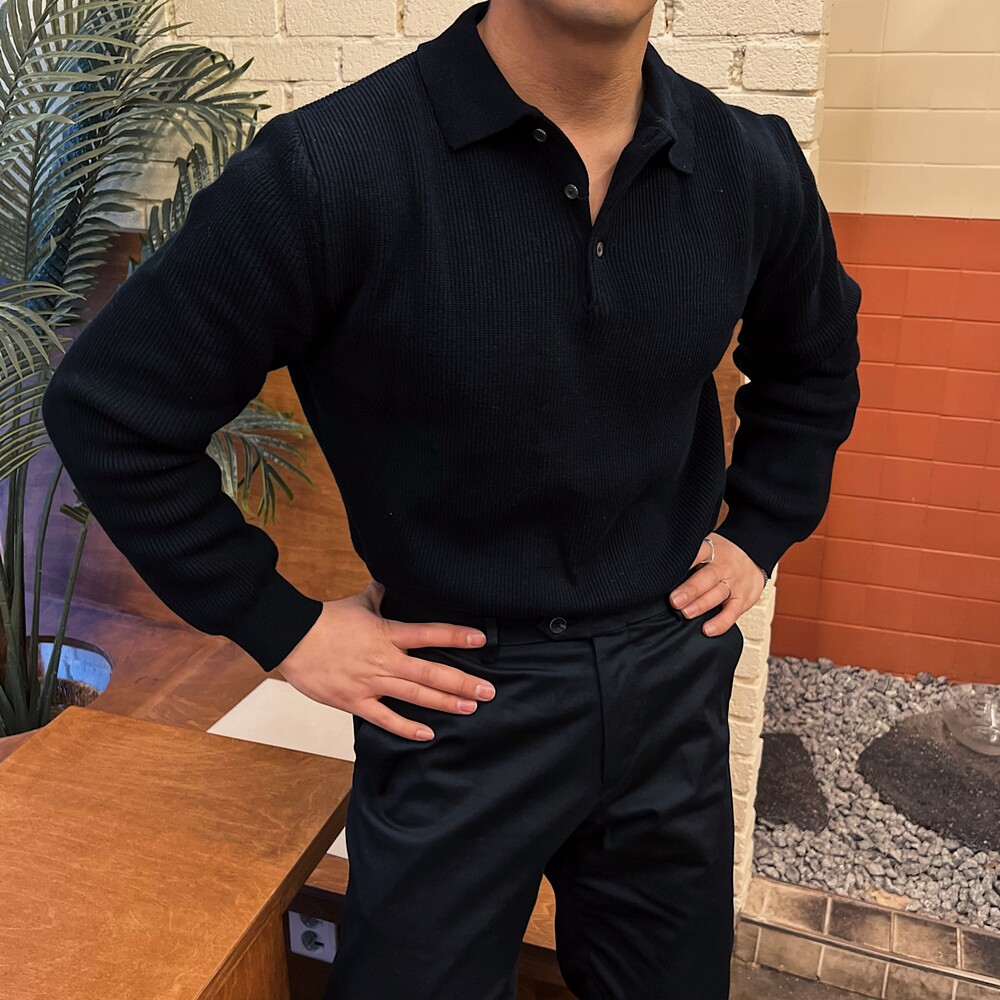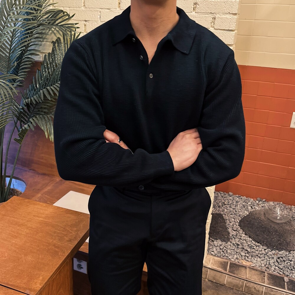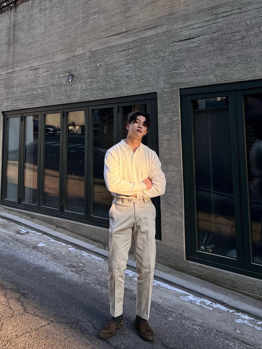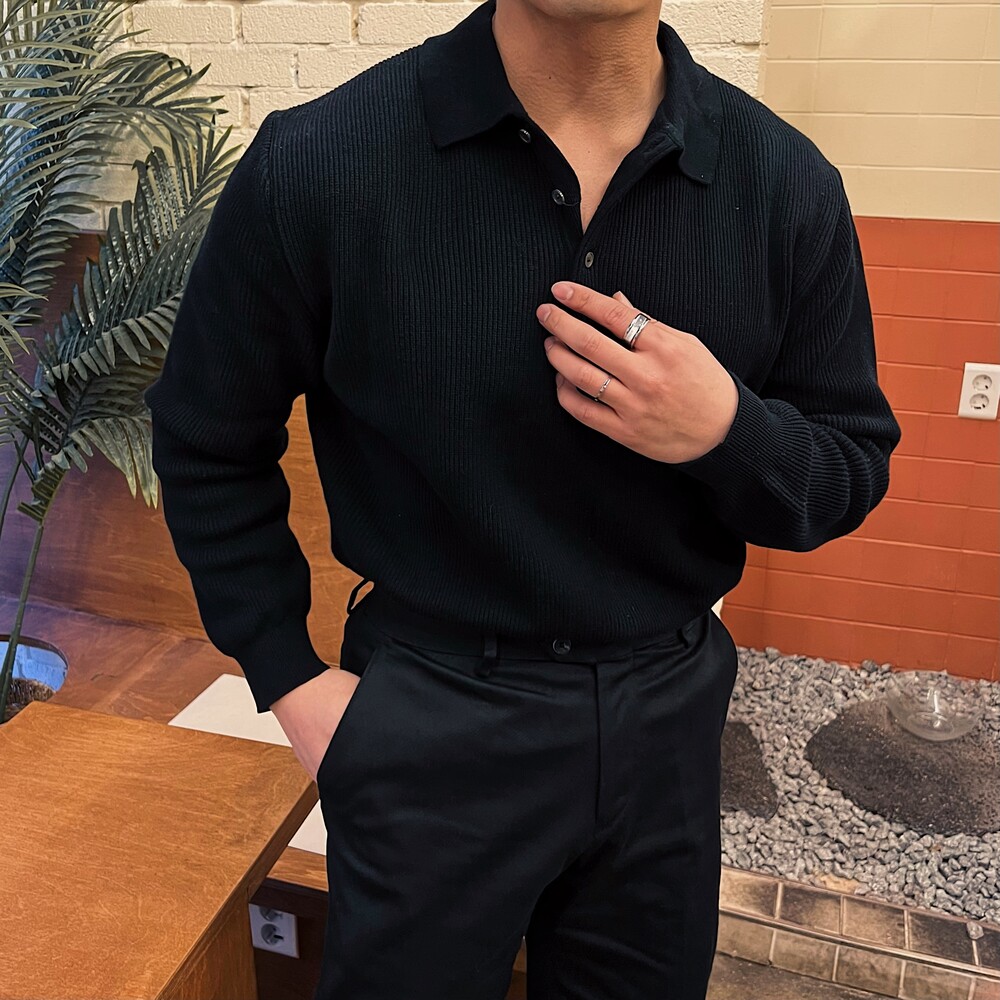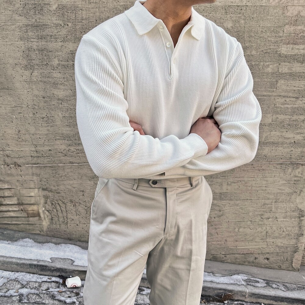 쫀쫀한 일자 골덴 느낌의 니주 원단 카라니트입니다