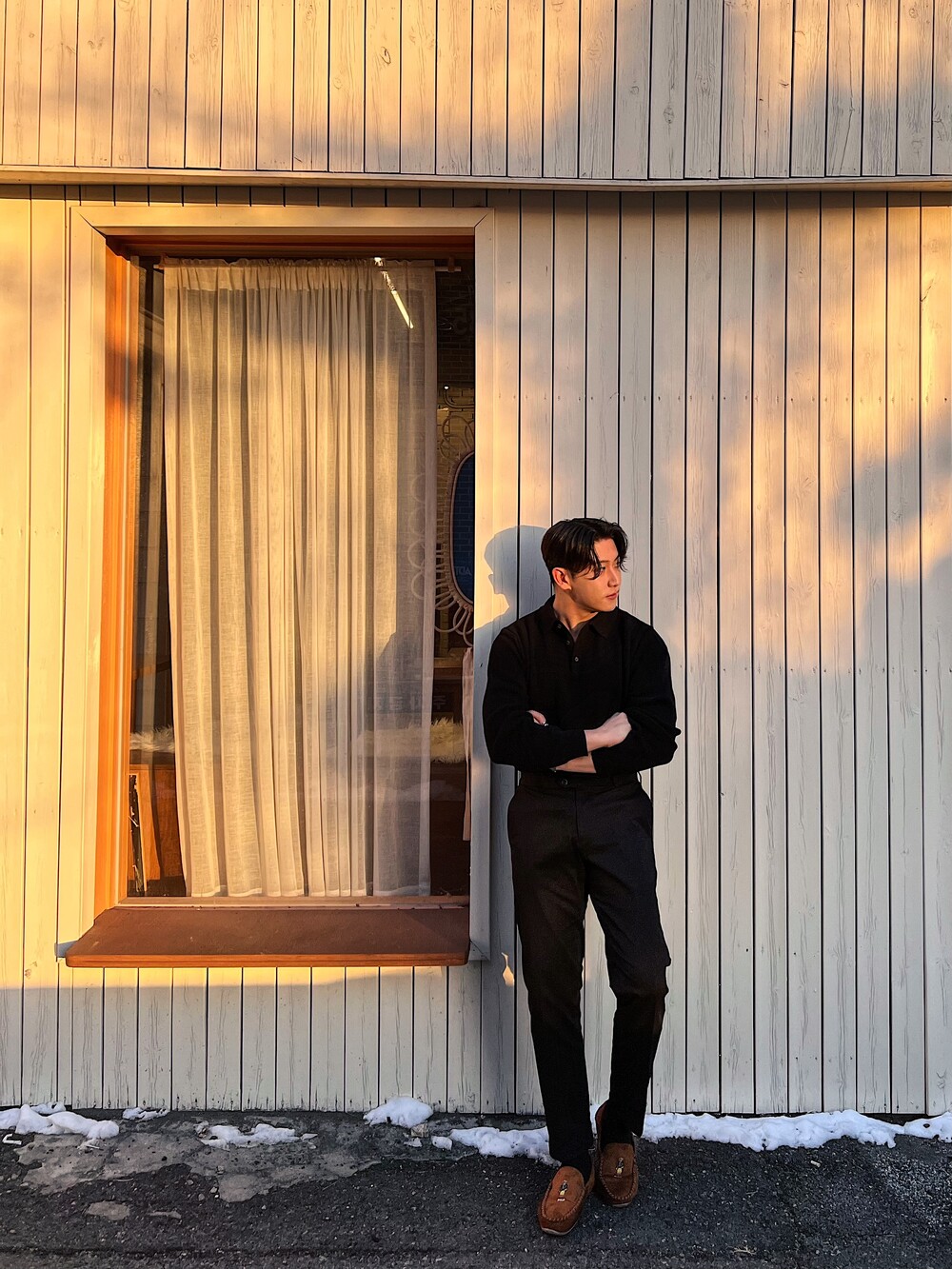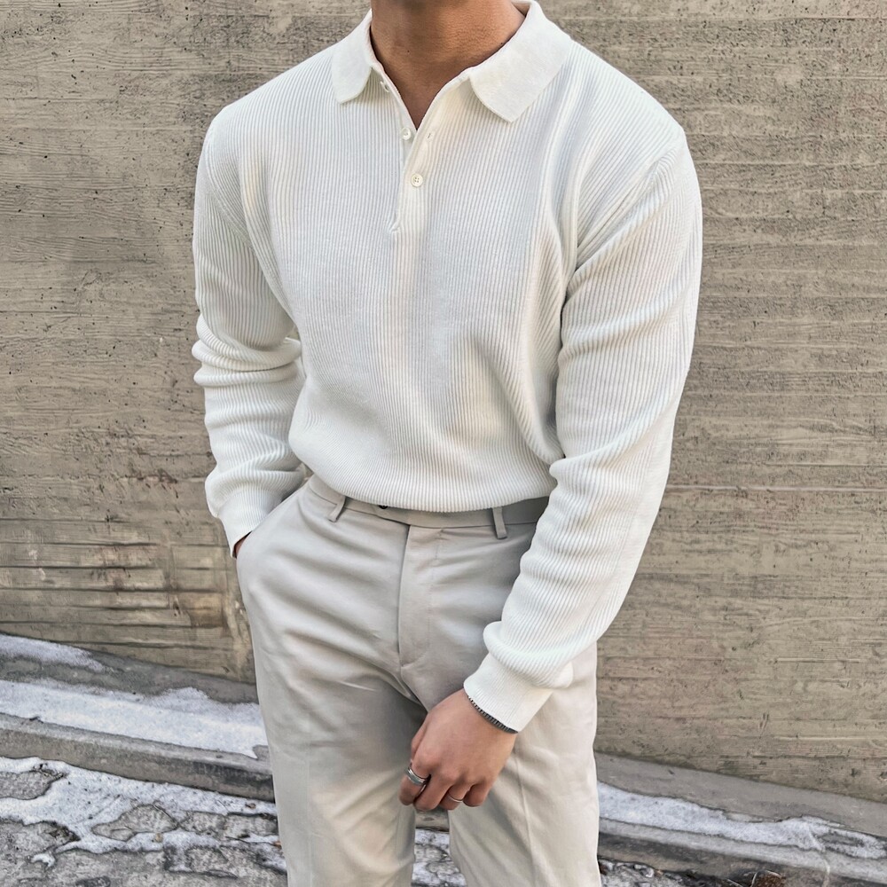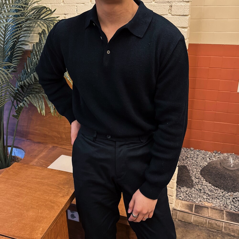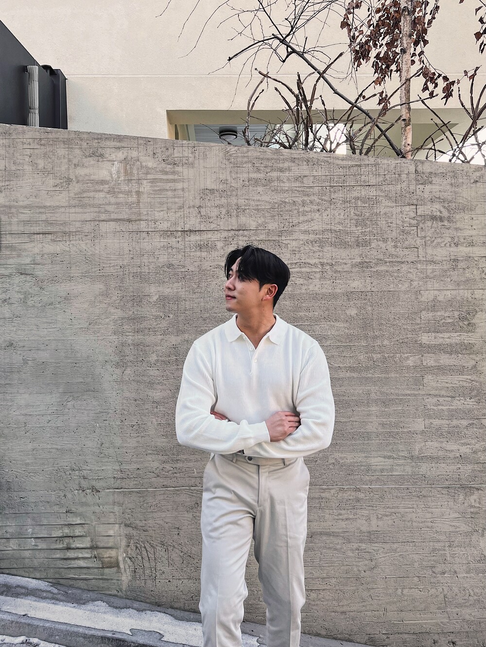 쫀쫀한 일자 골덴 느낌의 니주 원단 카라니트입니다