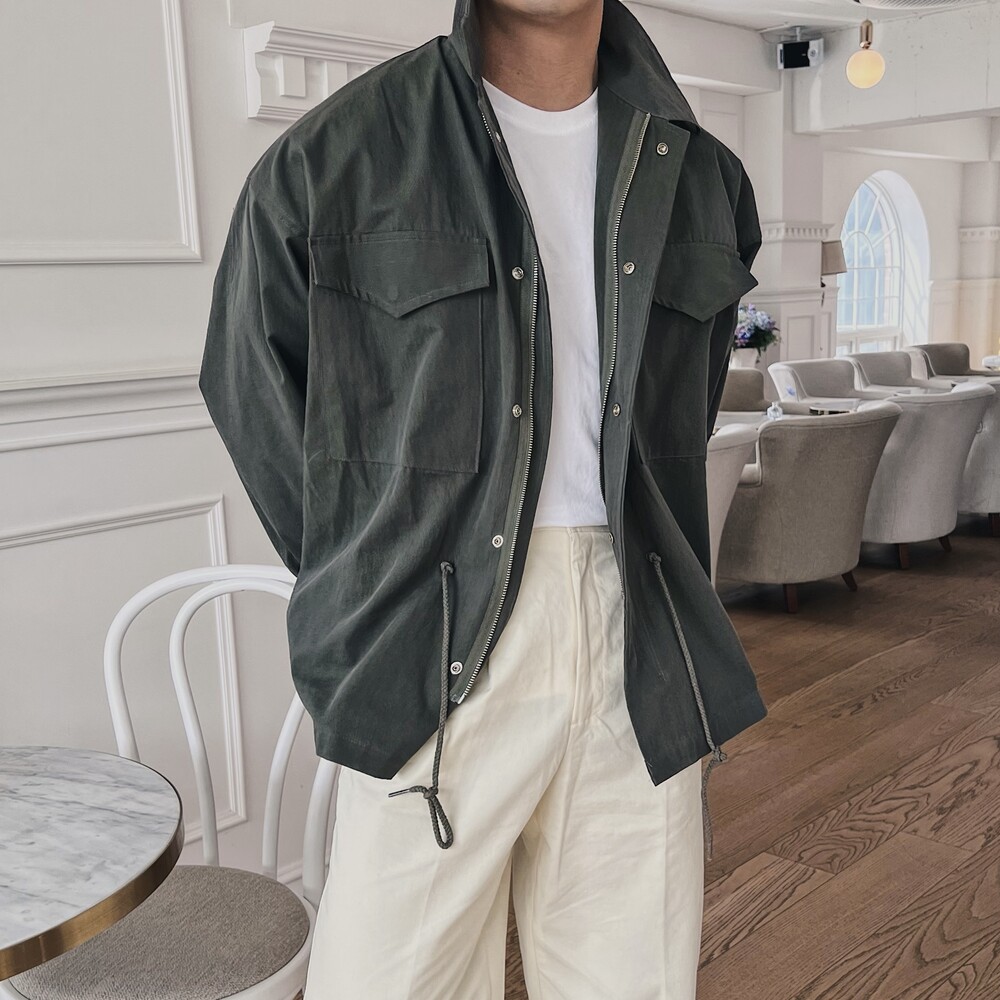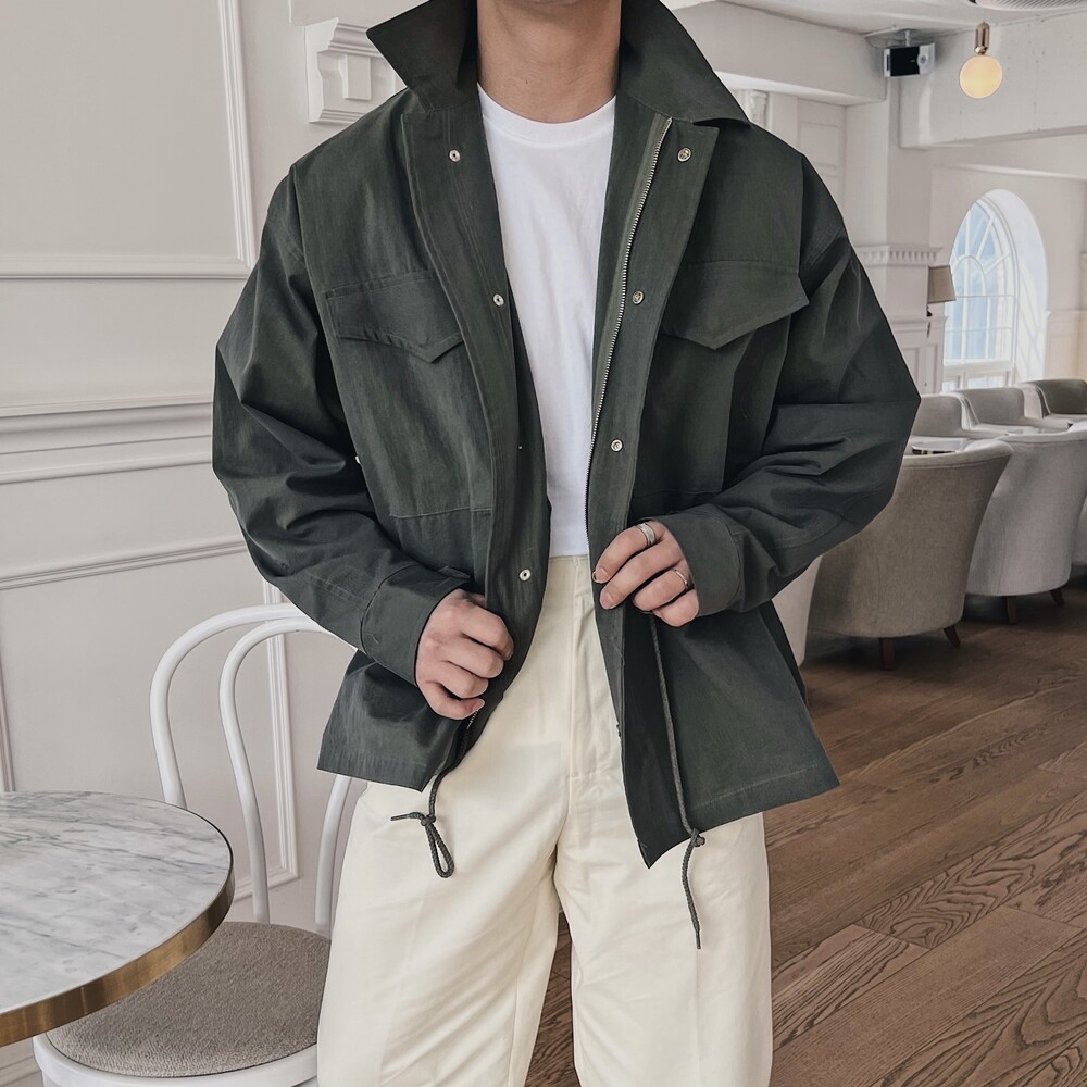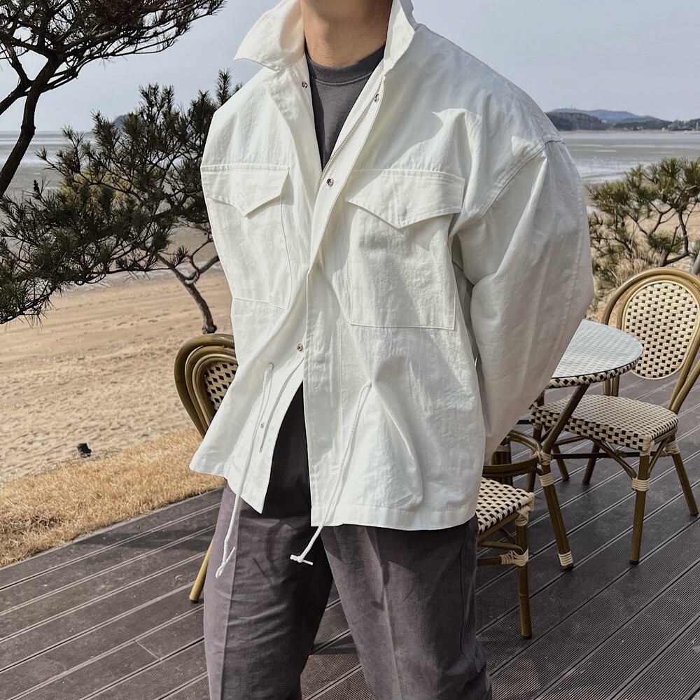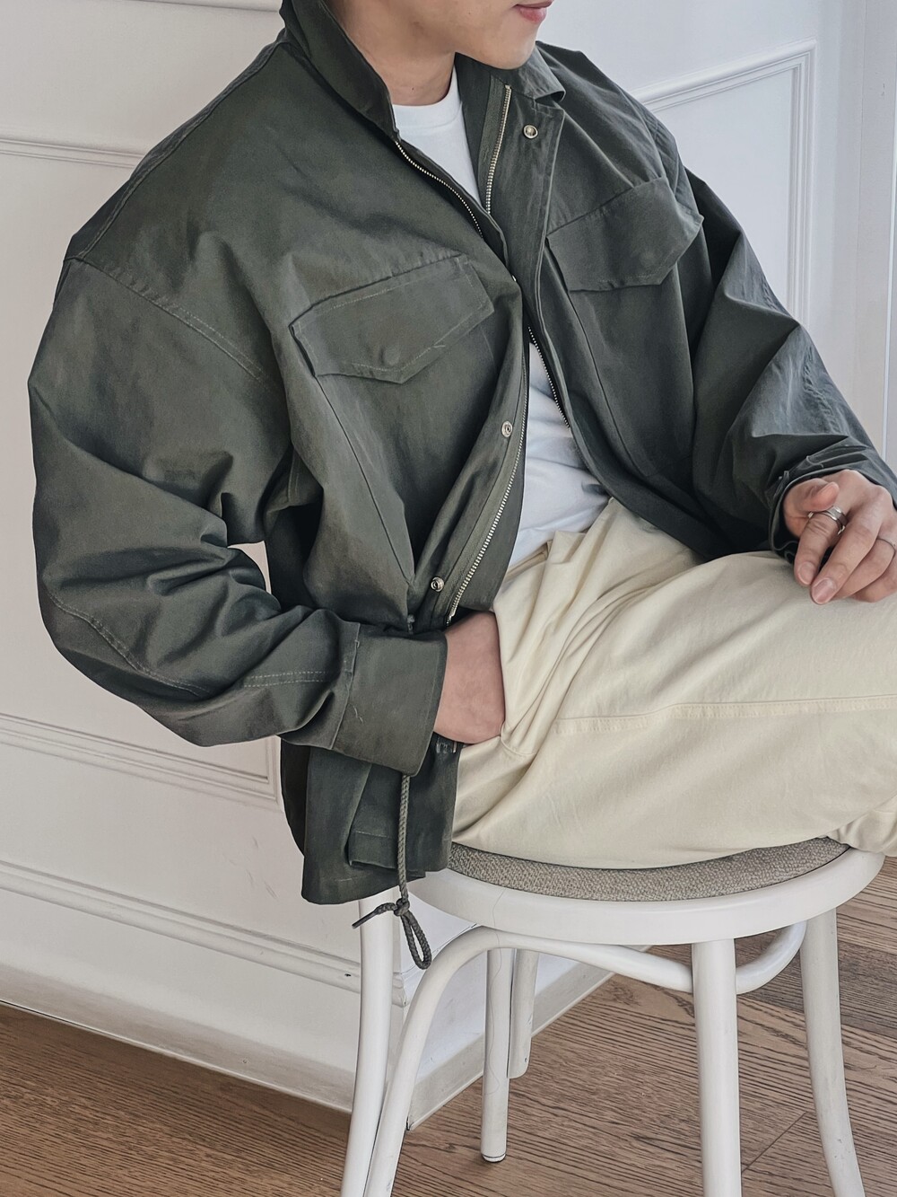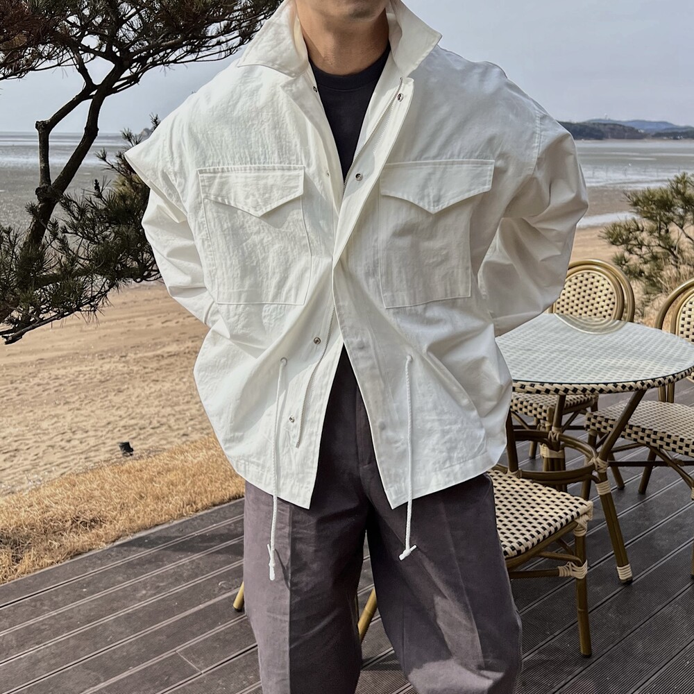 투 포켓이 포인트로 달린 숏 야상 자켓입니다