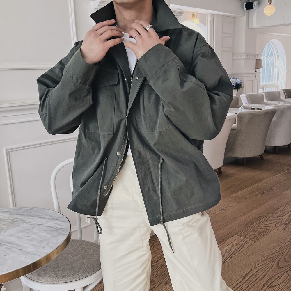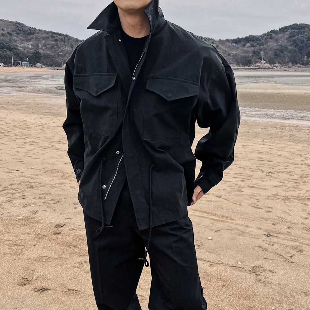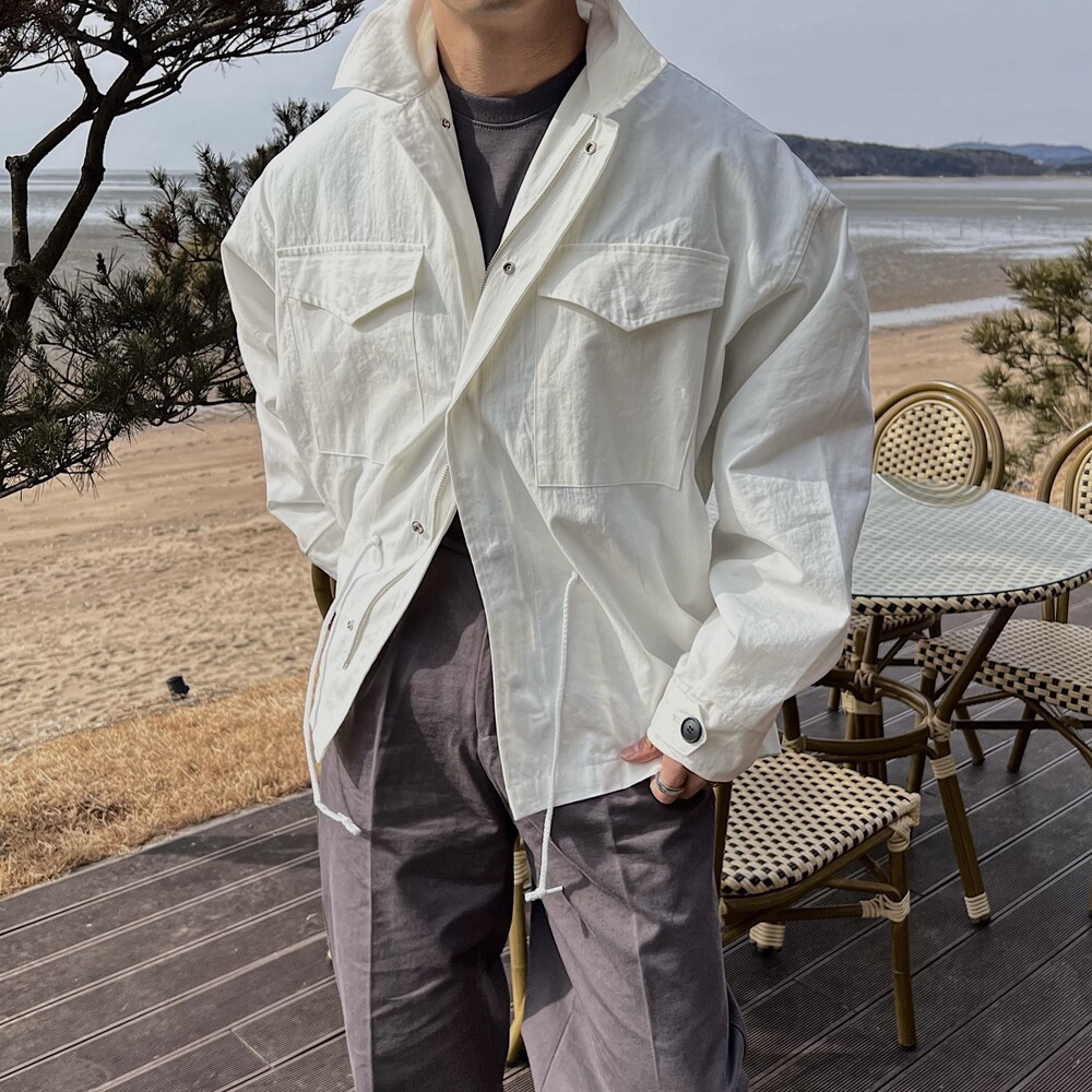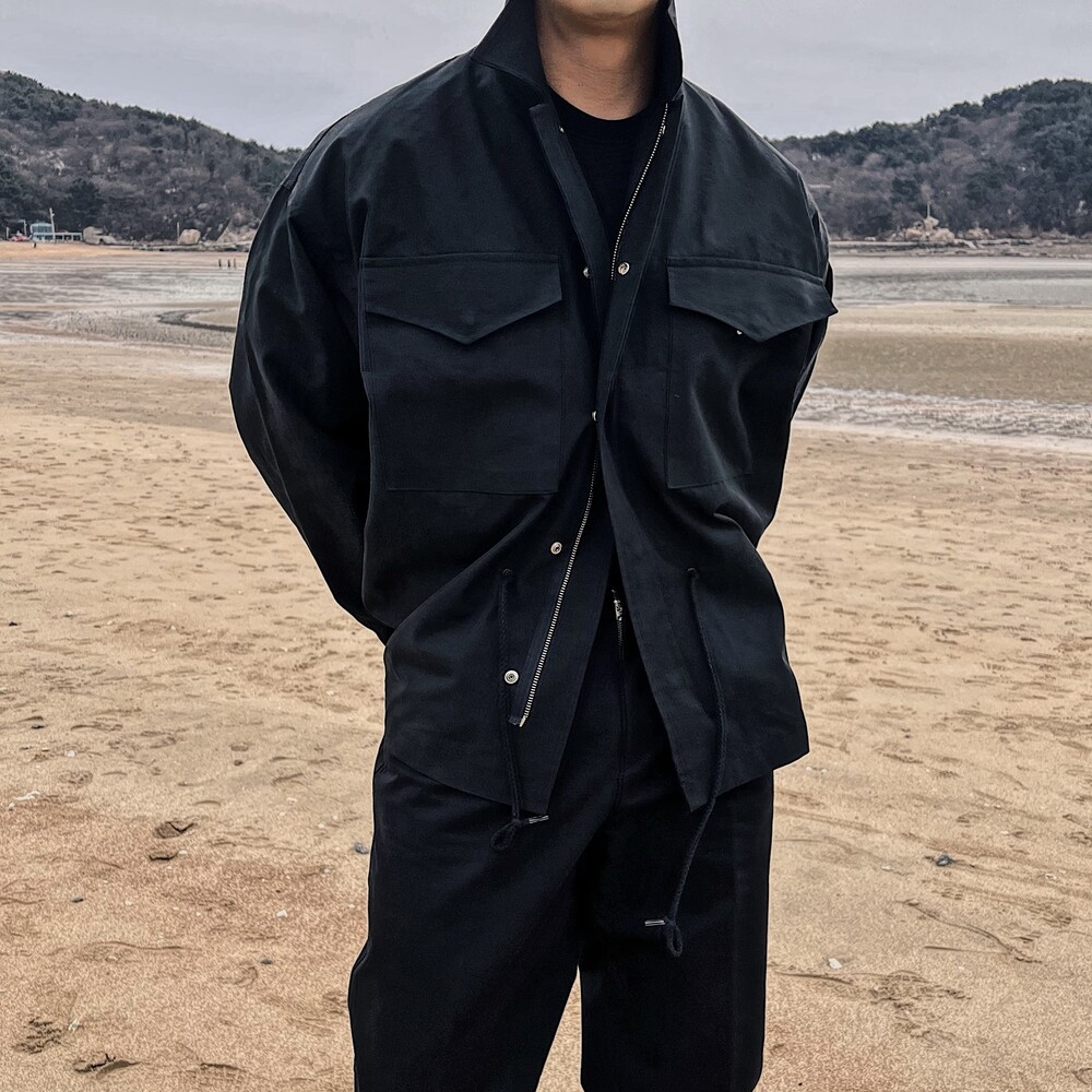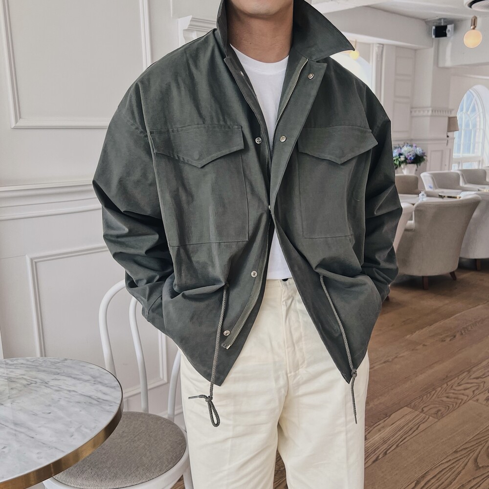 투 포켓이 포인트로 달린 숏 야상 자켓입니다