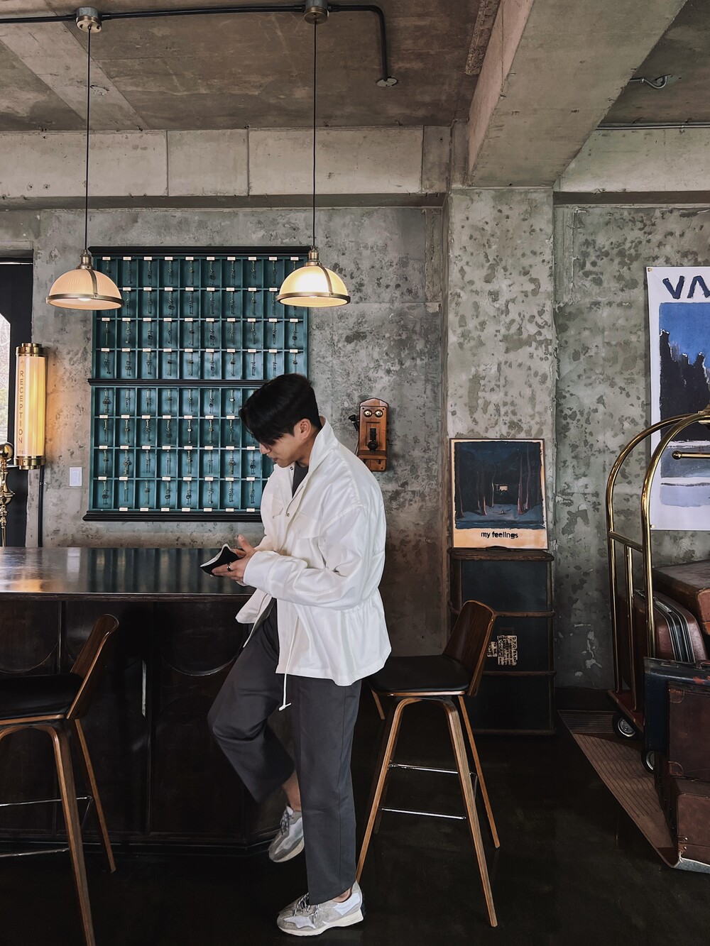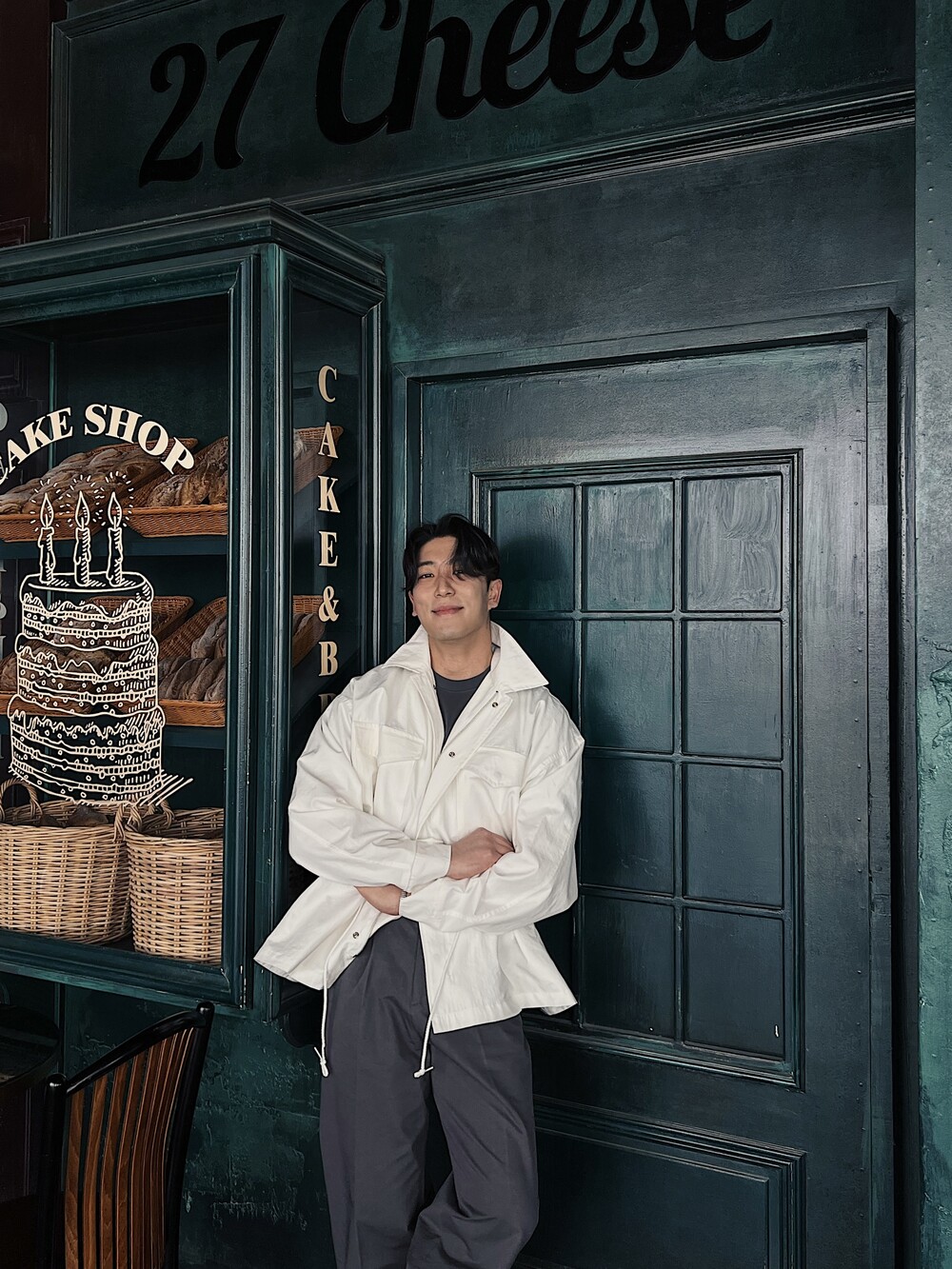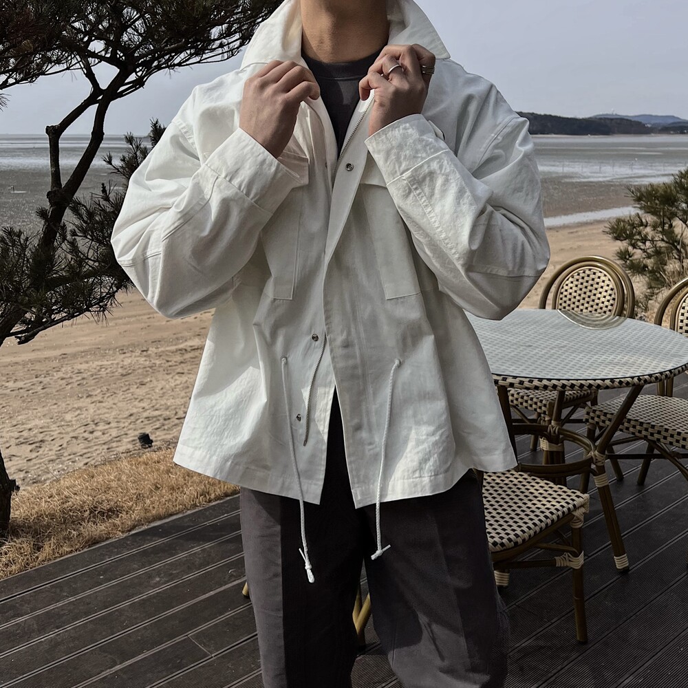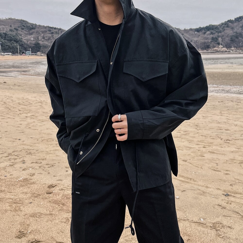 투 포켓이 포인트로 달린 숏 야상 자켓입니다