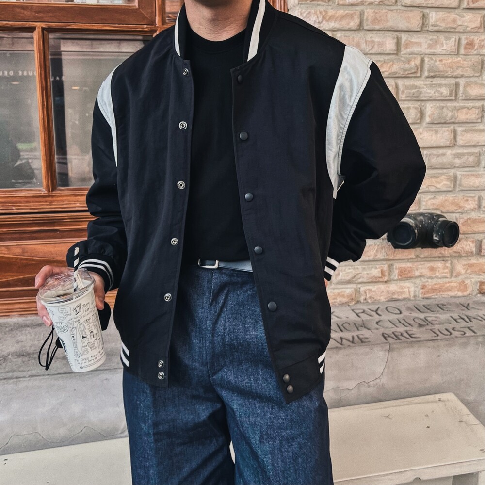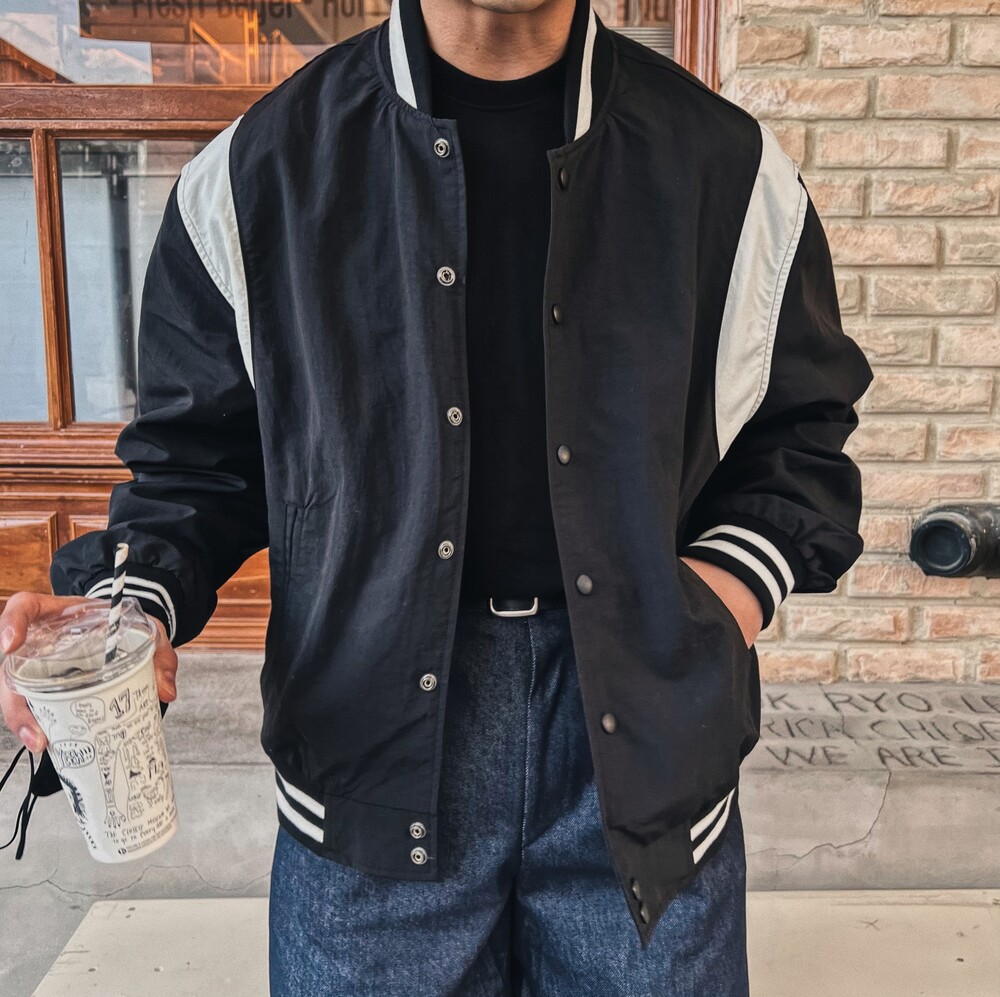 간절기에 입기 딱 좋은 바시티 자켓입니다