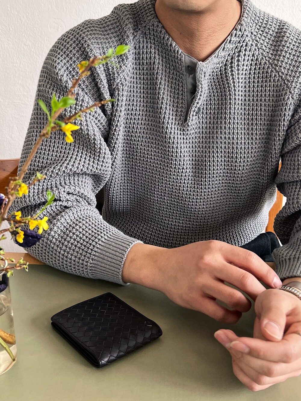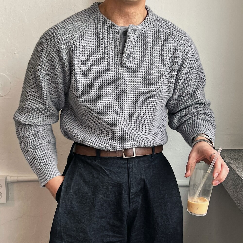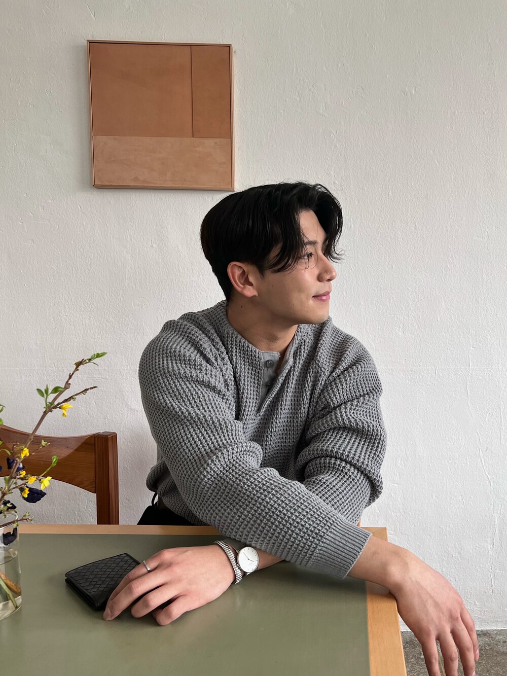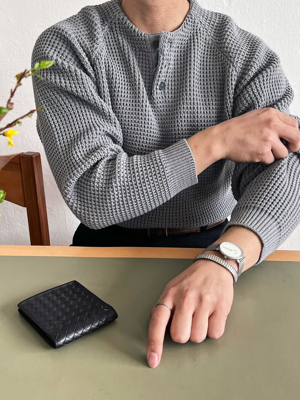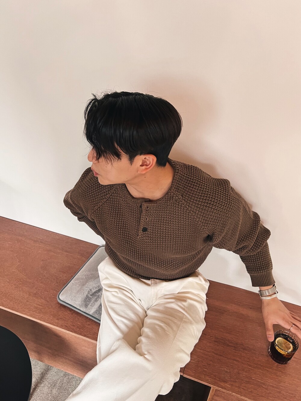 와플 패턴의 흐물거림 없는 두께감 있는 헨리넥 니트 입니다