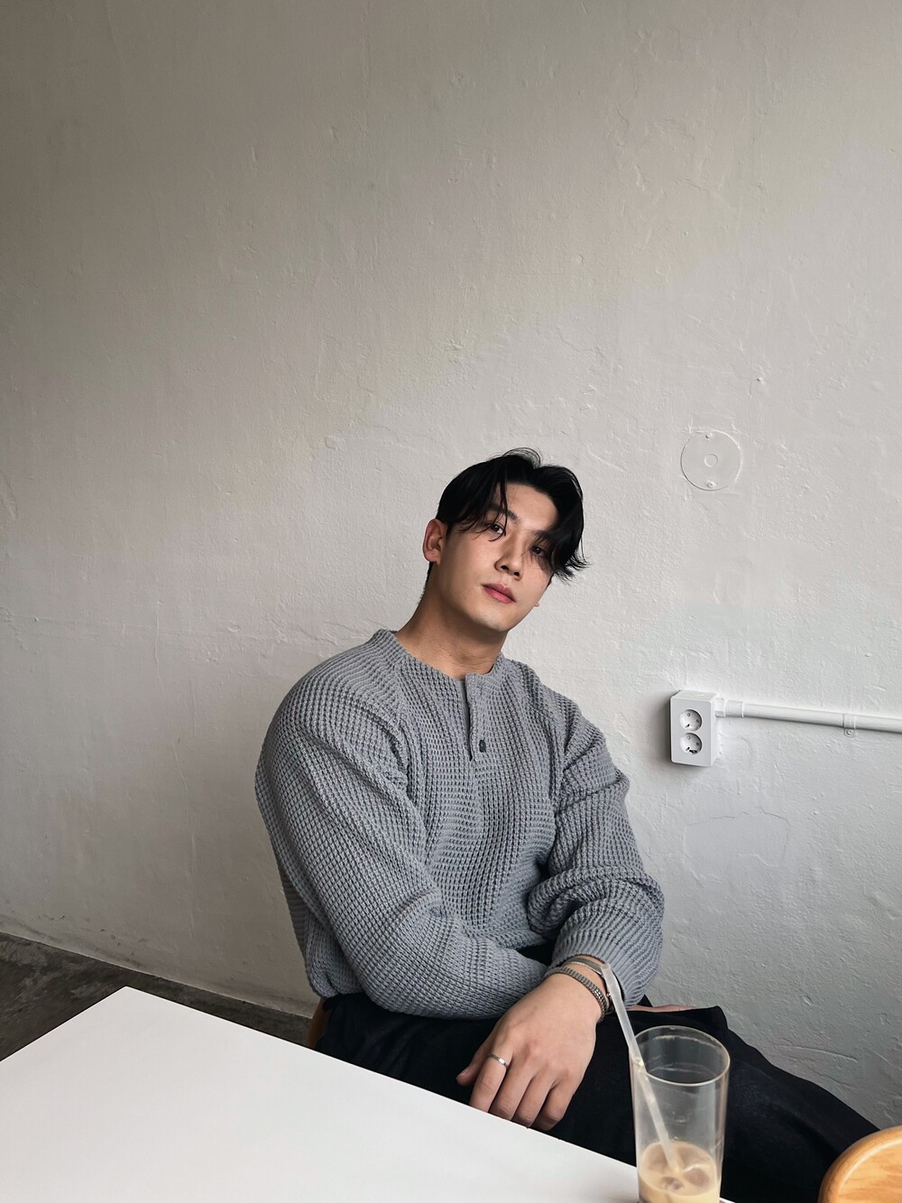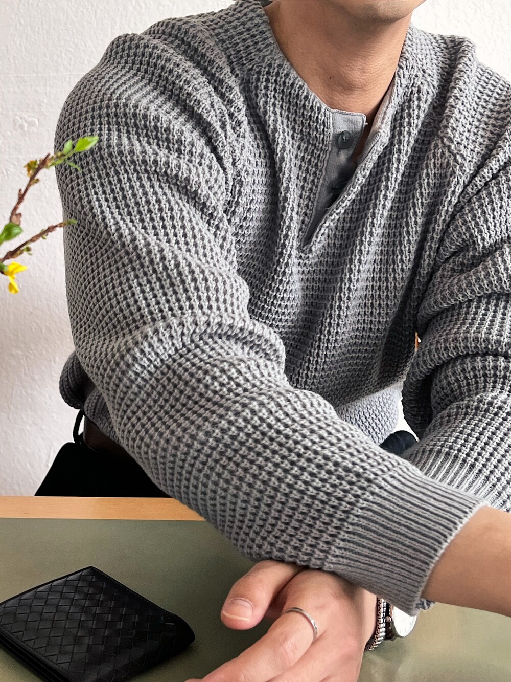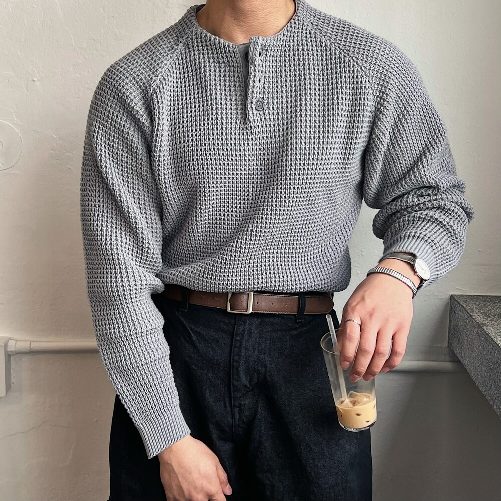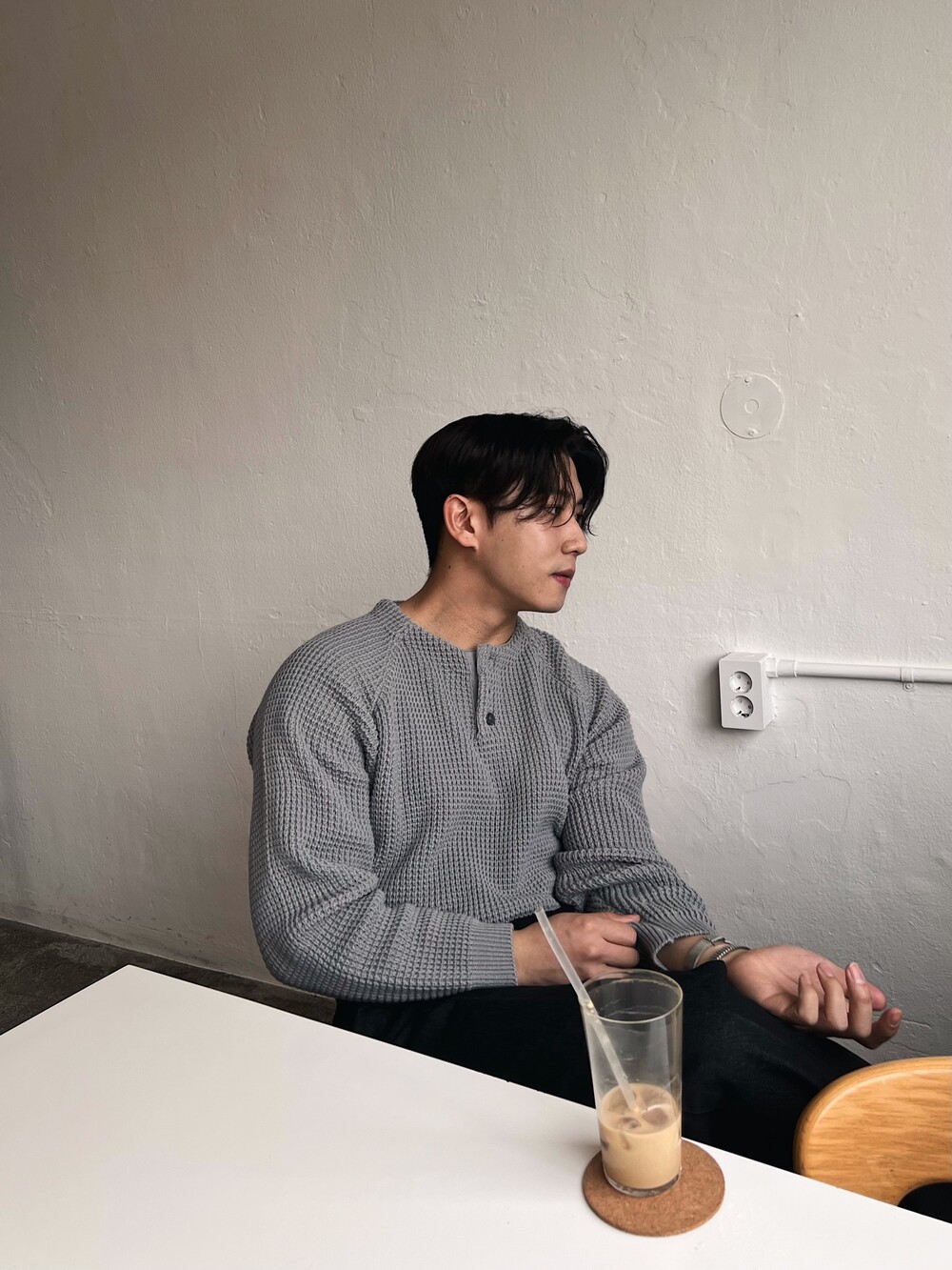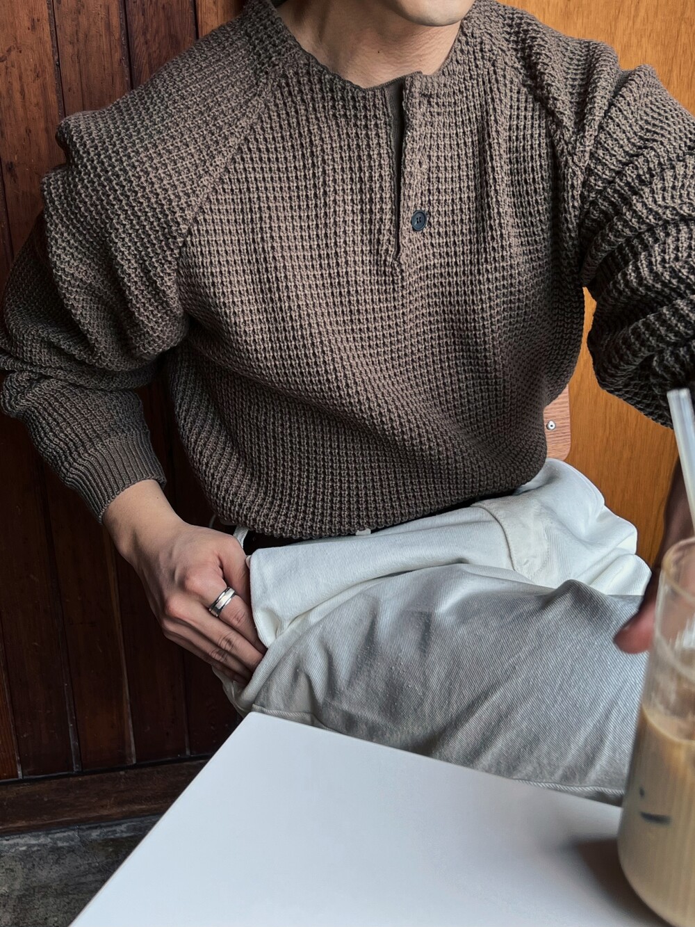 와플 패턴의 흐물거림 없는 두께감 있는 헨리넥 니트 입니다