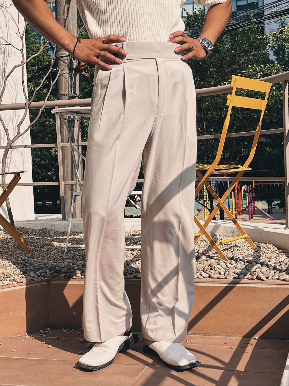 S _ 총장 99cm l 허리 40cm l 허벅지 34cm l 밑단 23cm ㅣ 밑위 33cm