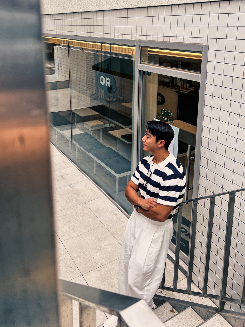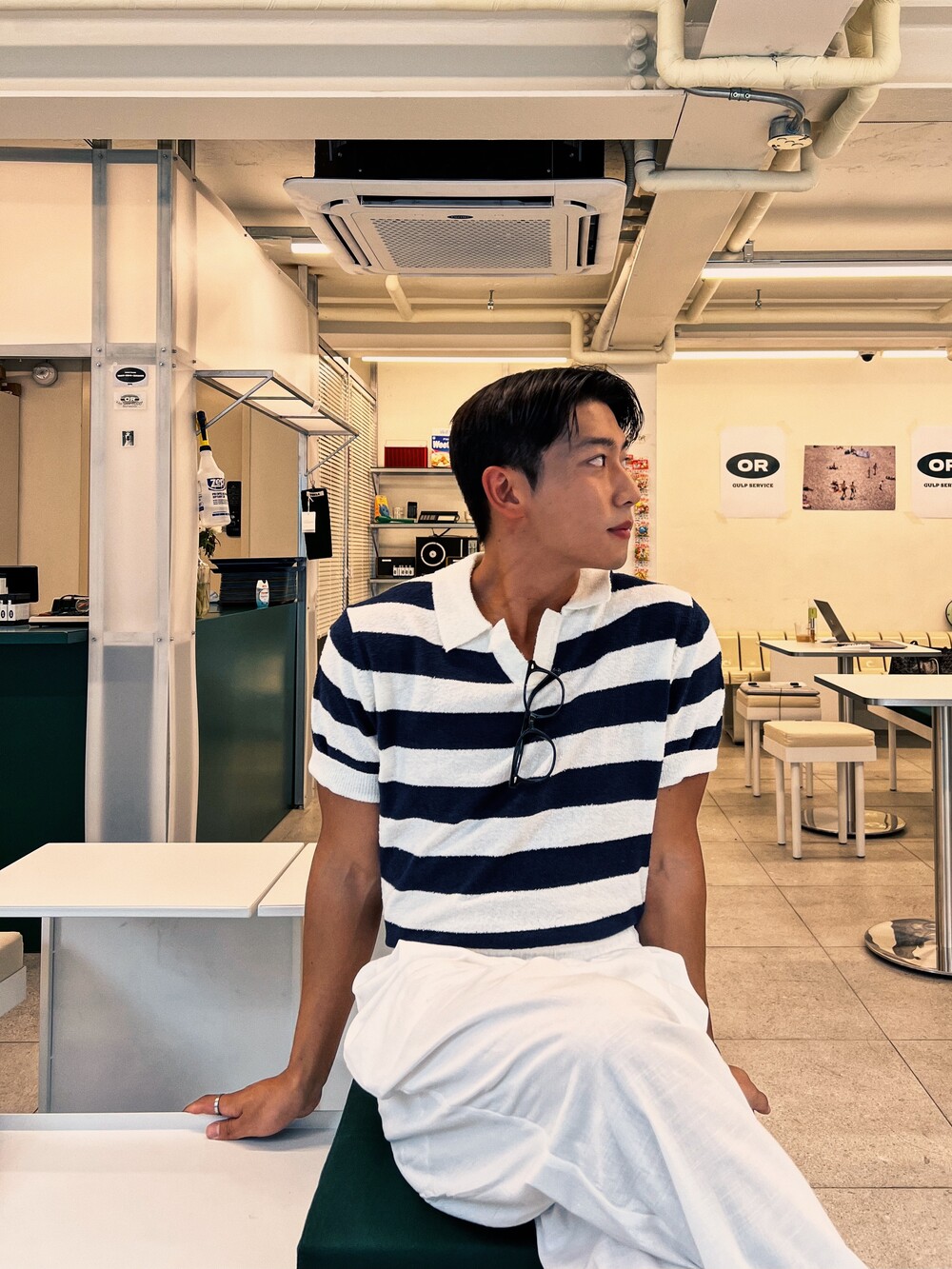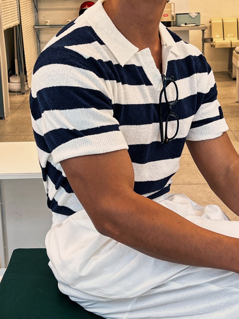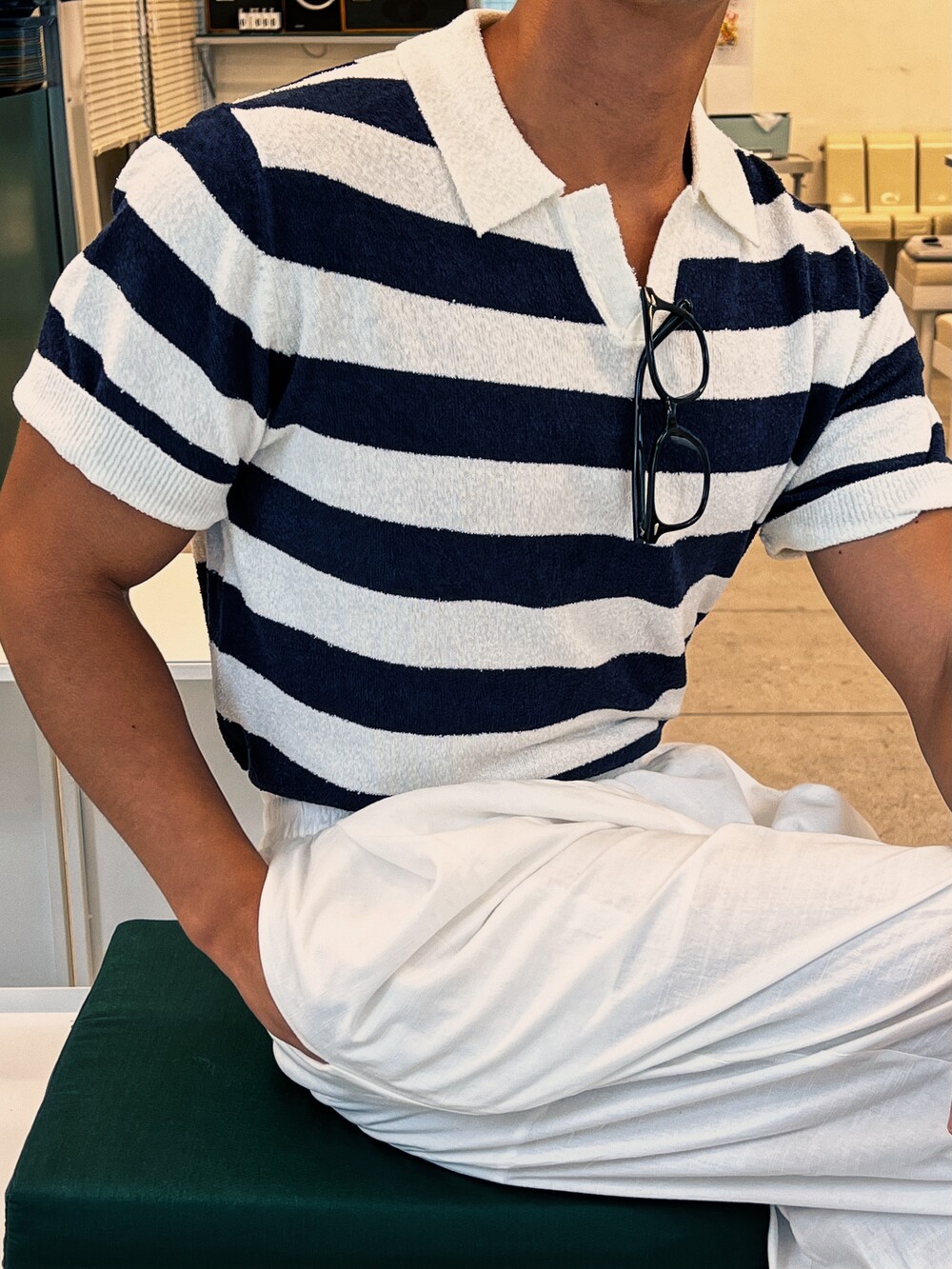 [Tomtyler] Field Towel Stripe Collar Knit [2color]