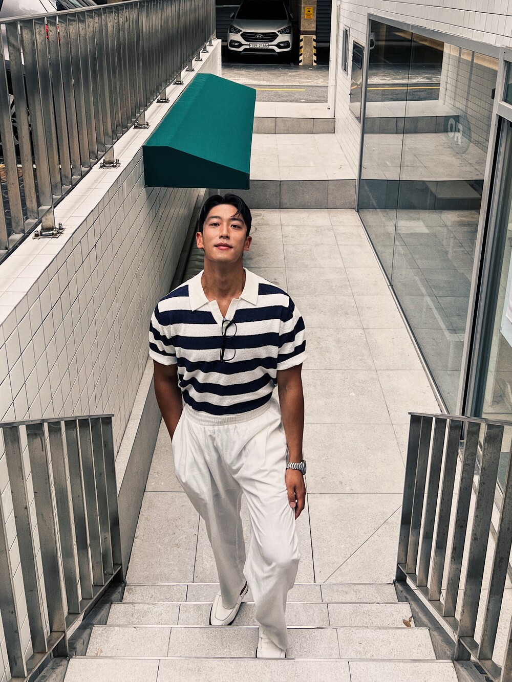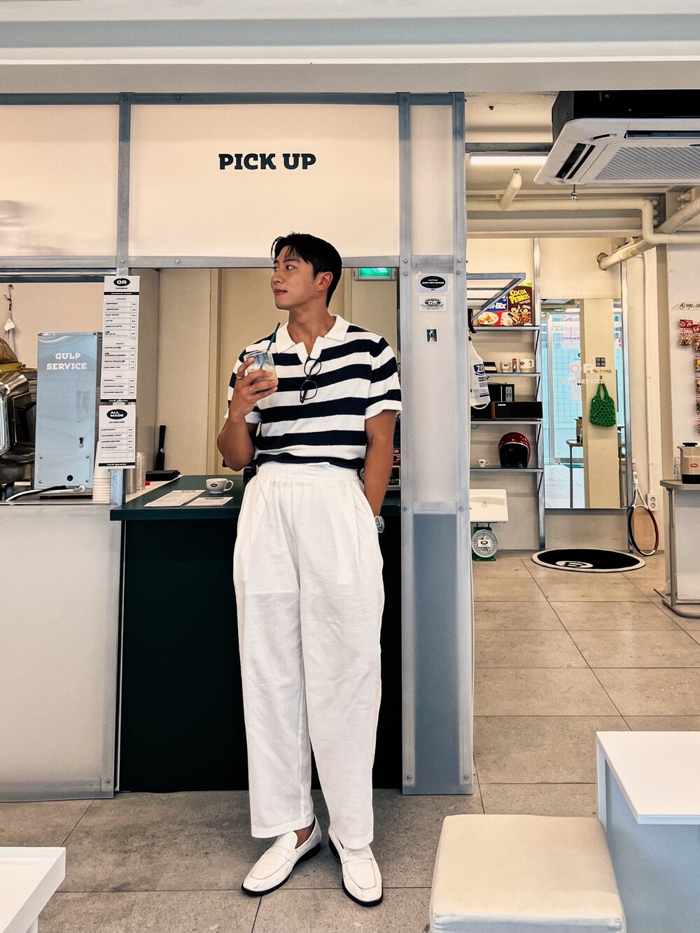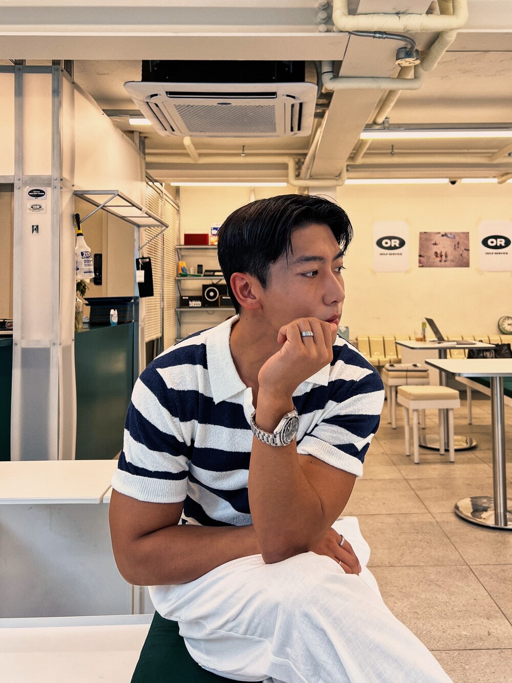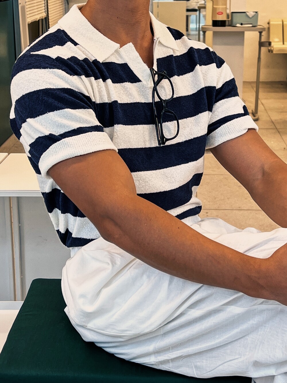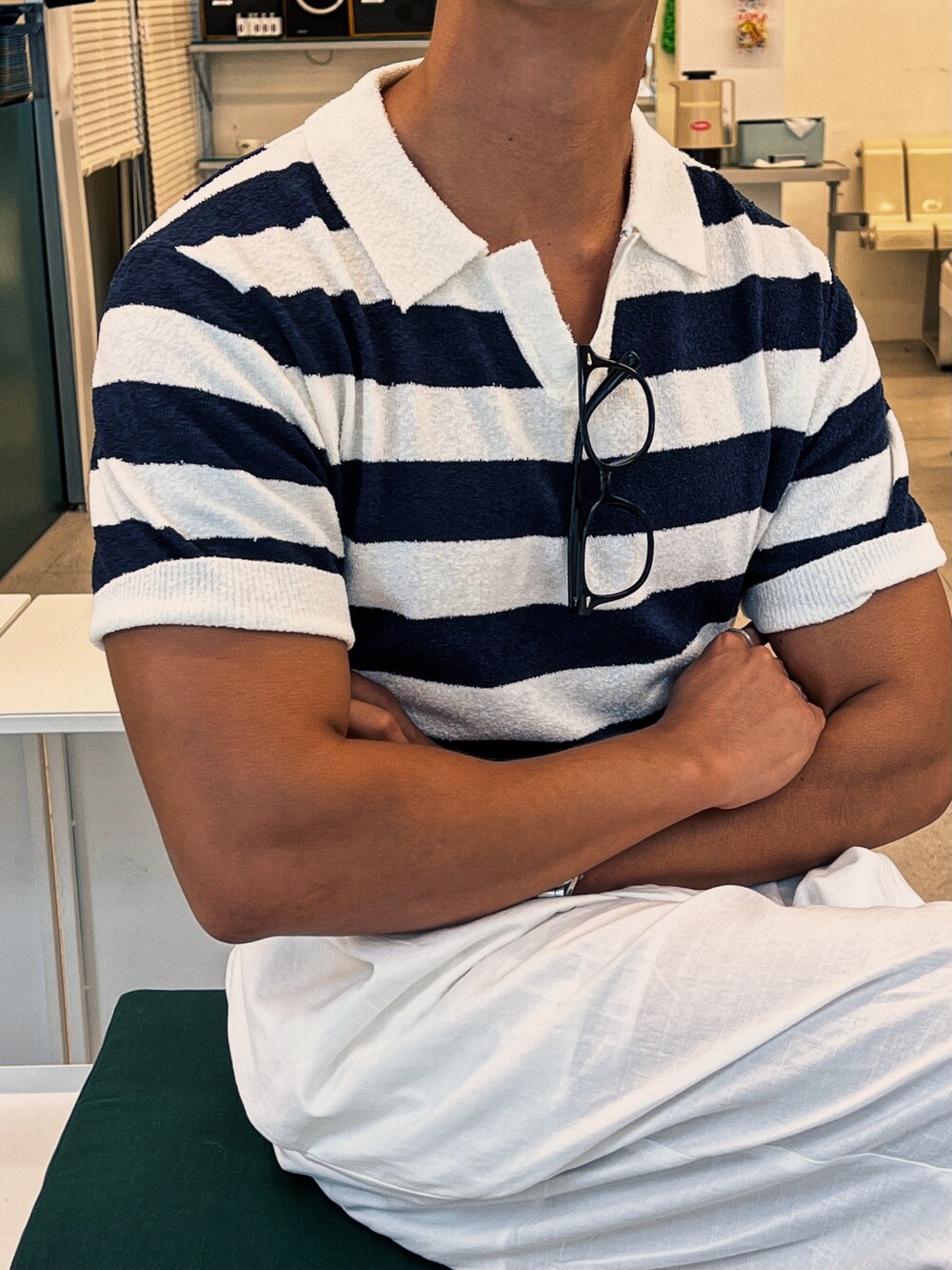 [Tomtyler] Field Towel Stripe Collar Knit [2color]