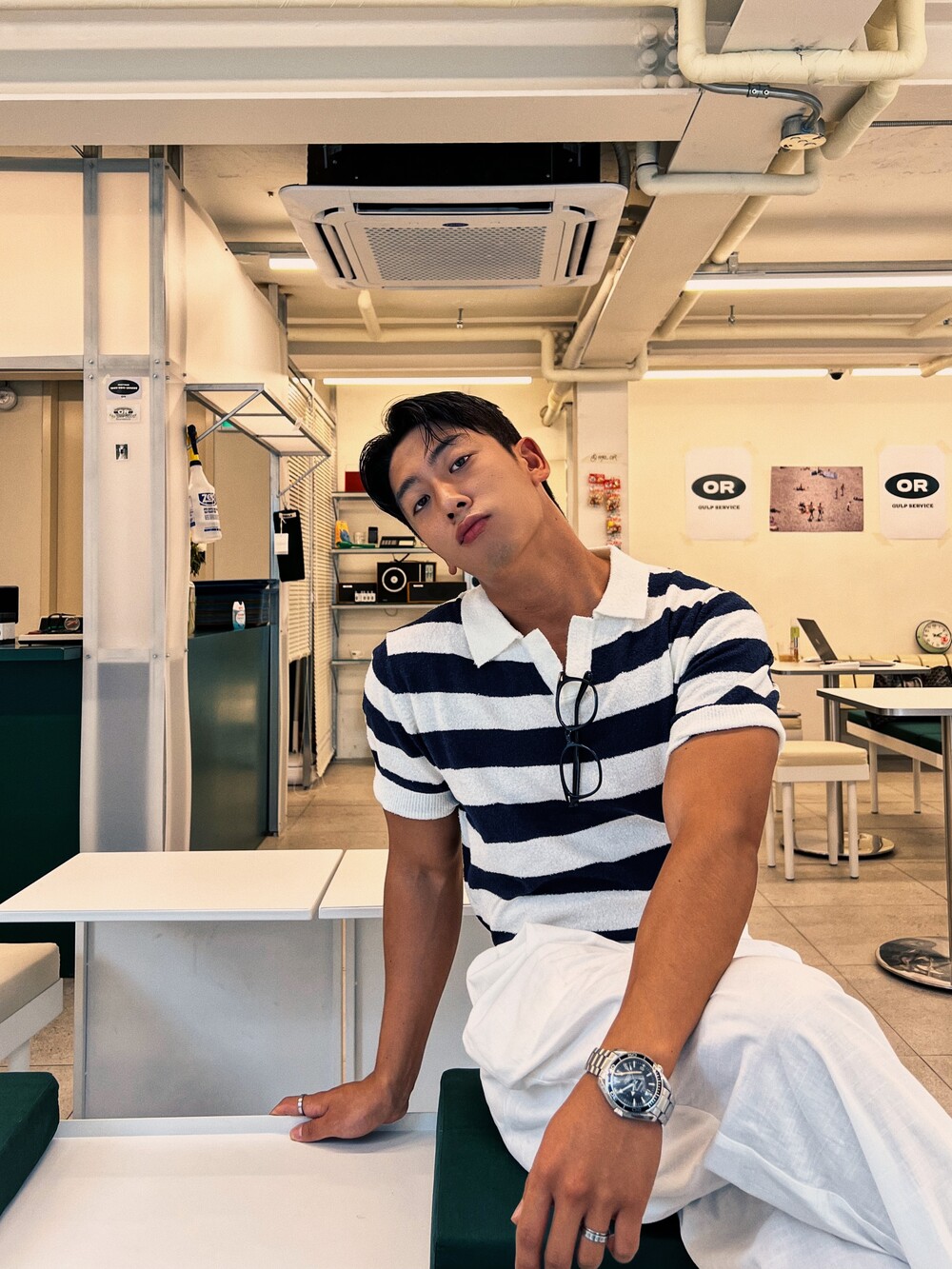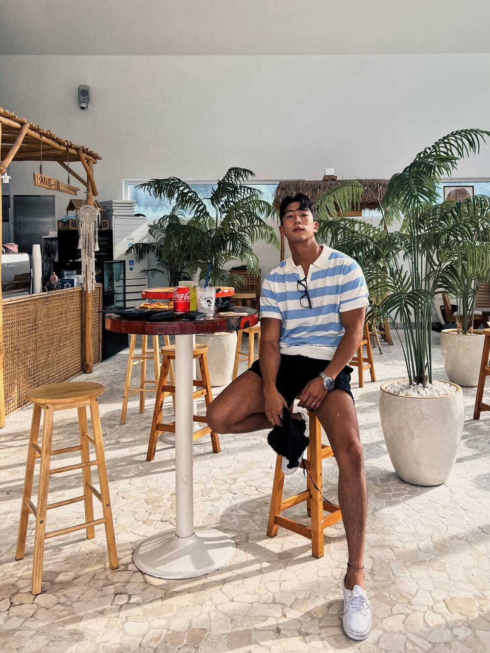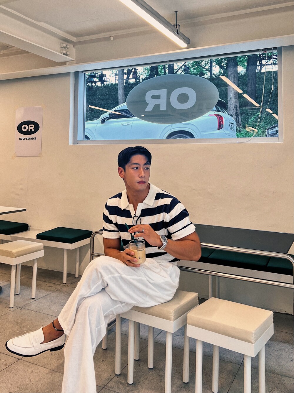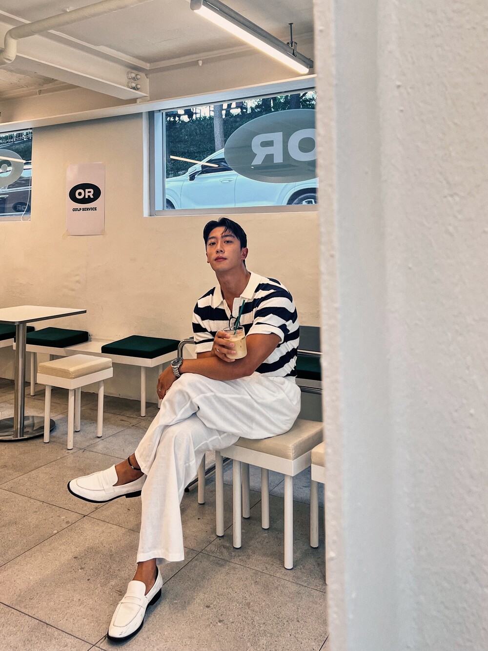 [Tomtyler] Field Towel Stripe Collar Knit [2color]