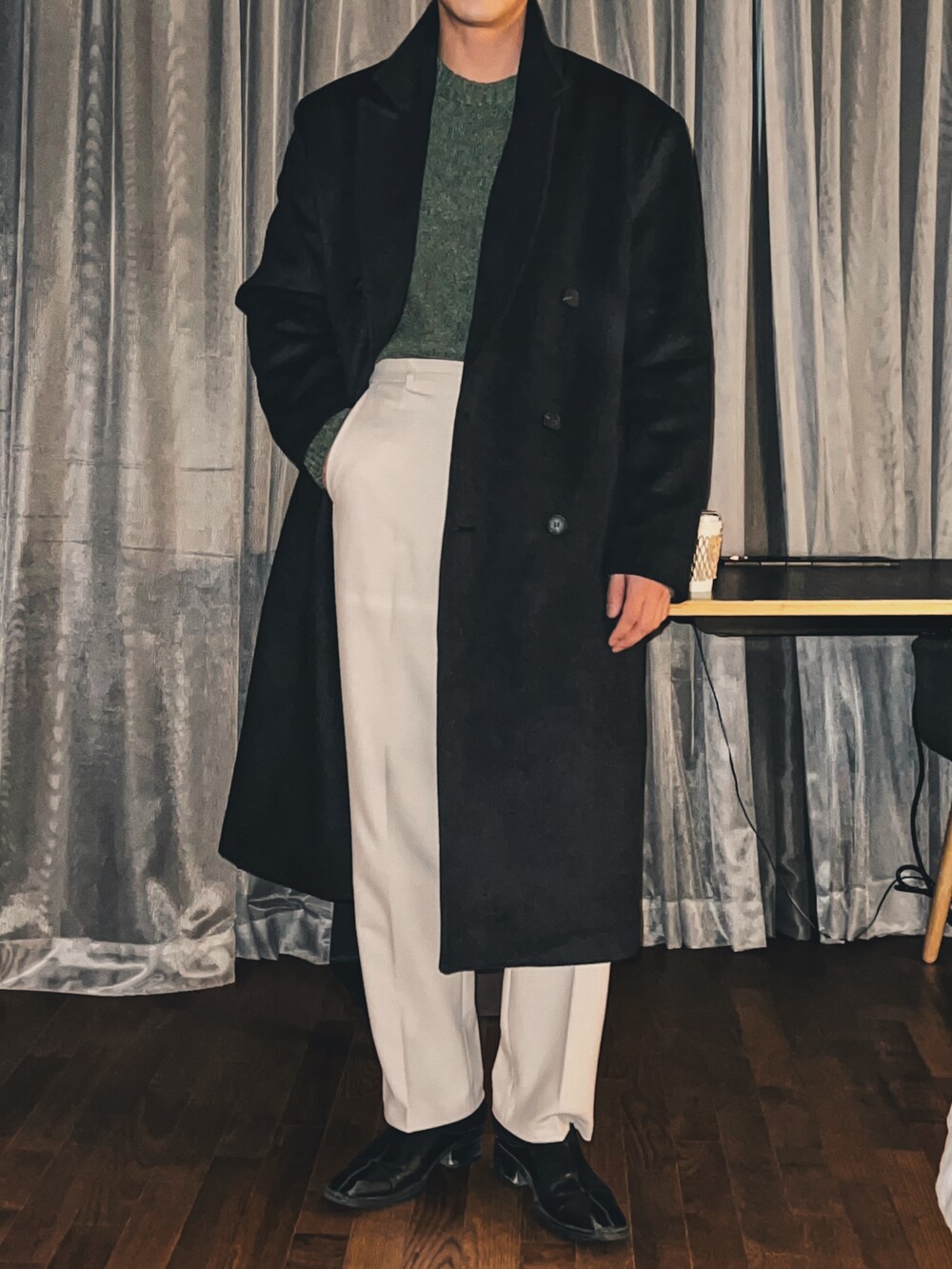 - 두껍고 오버한 핏으로 안에 수트나 자켓등 다양한 레이어링 활용 가능