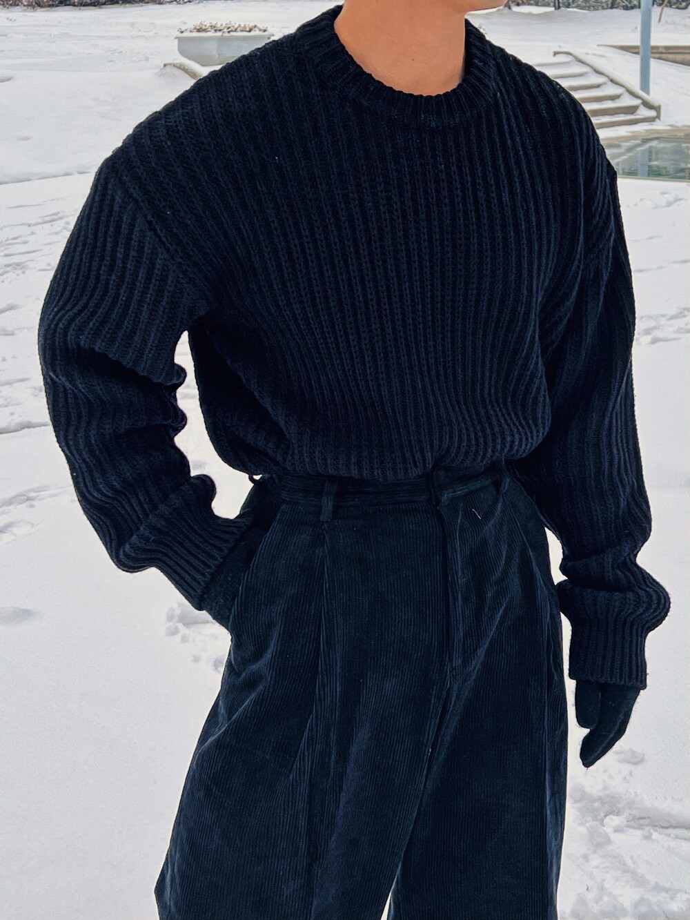 - 두툼한 원단 짜임으로 좋은 보온성