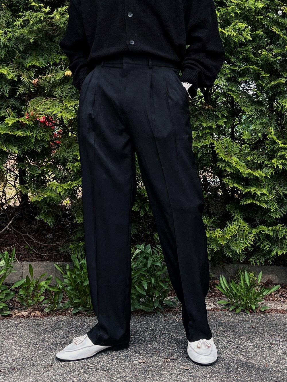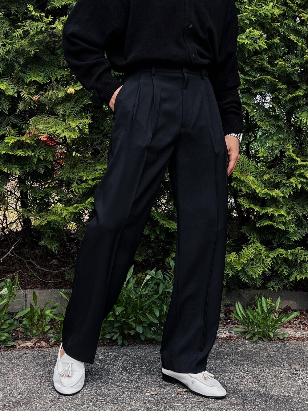 - 투턱으로 내려오는 와이드 핏