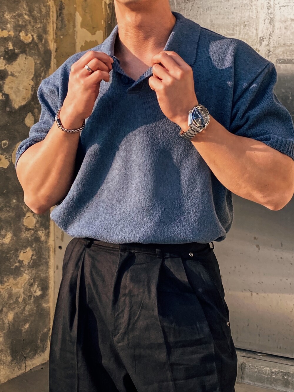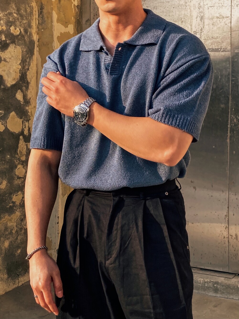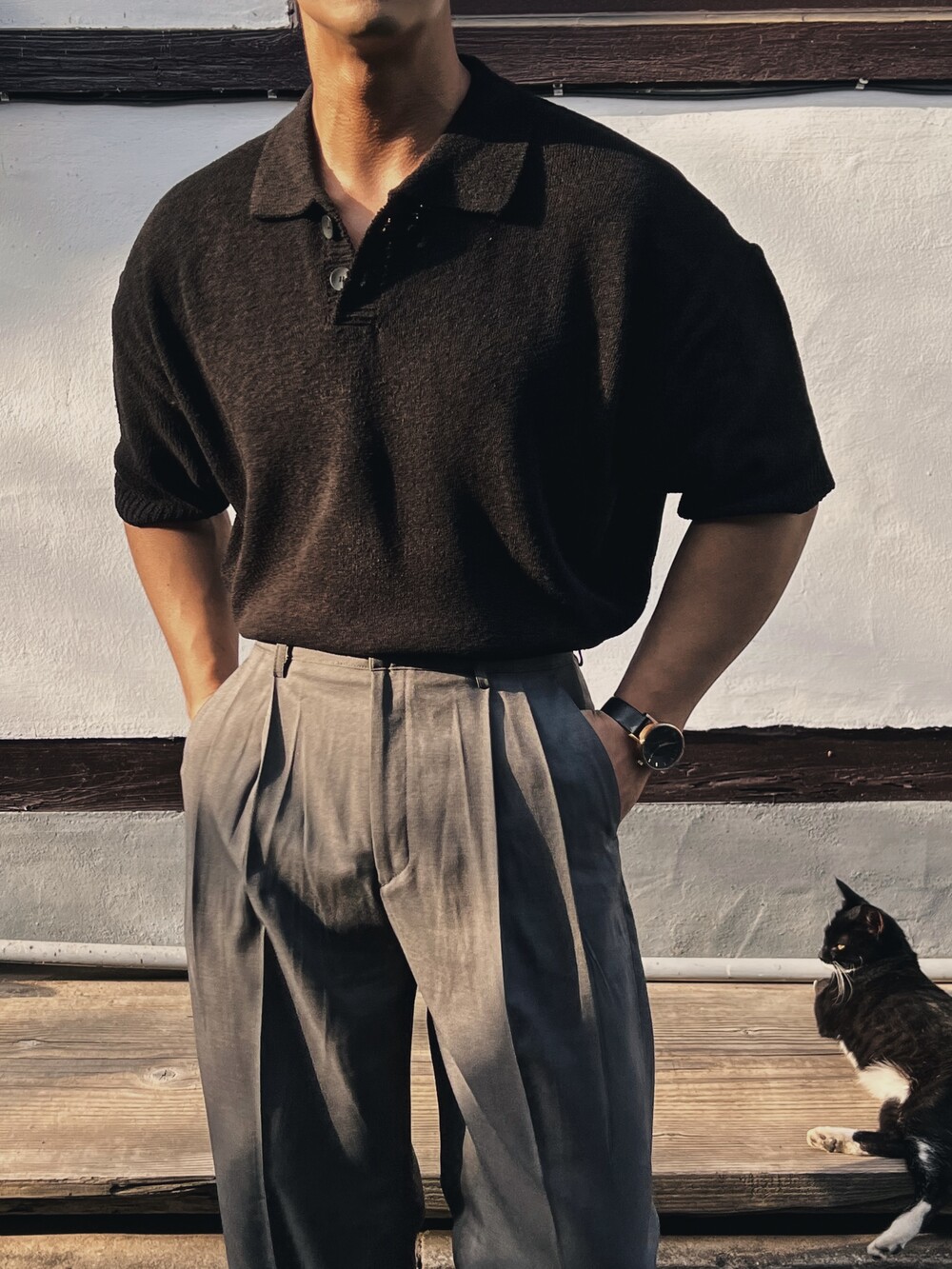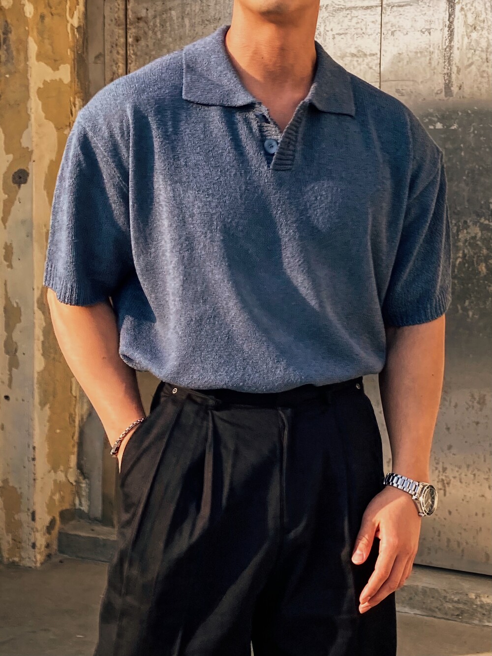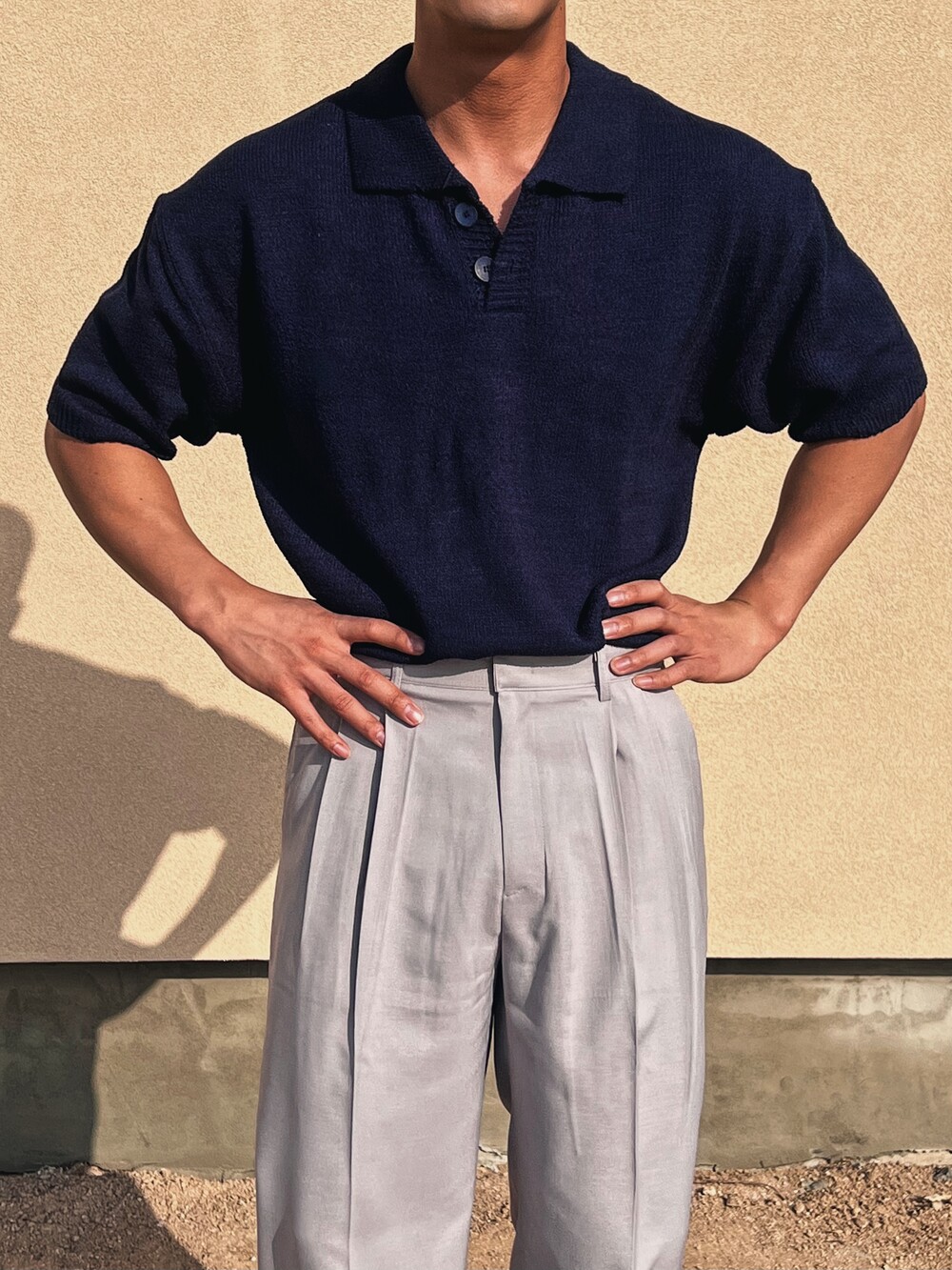 - 코튼 린넨의 쫀쫀한 짜임의 카라니트