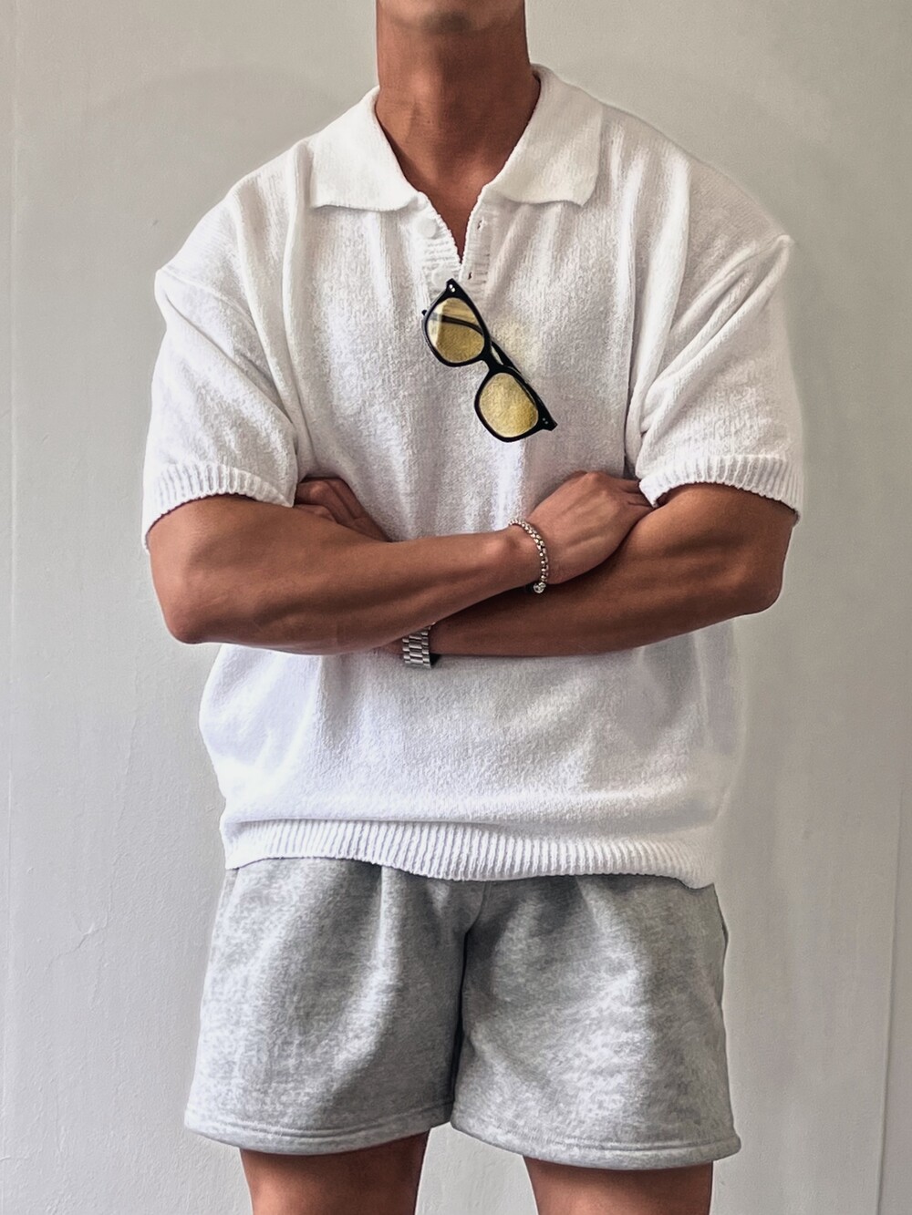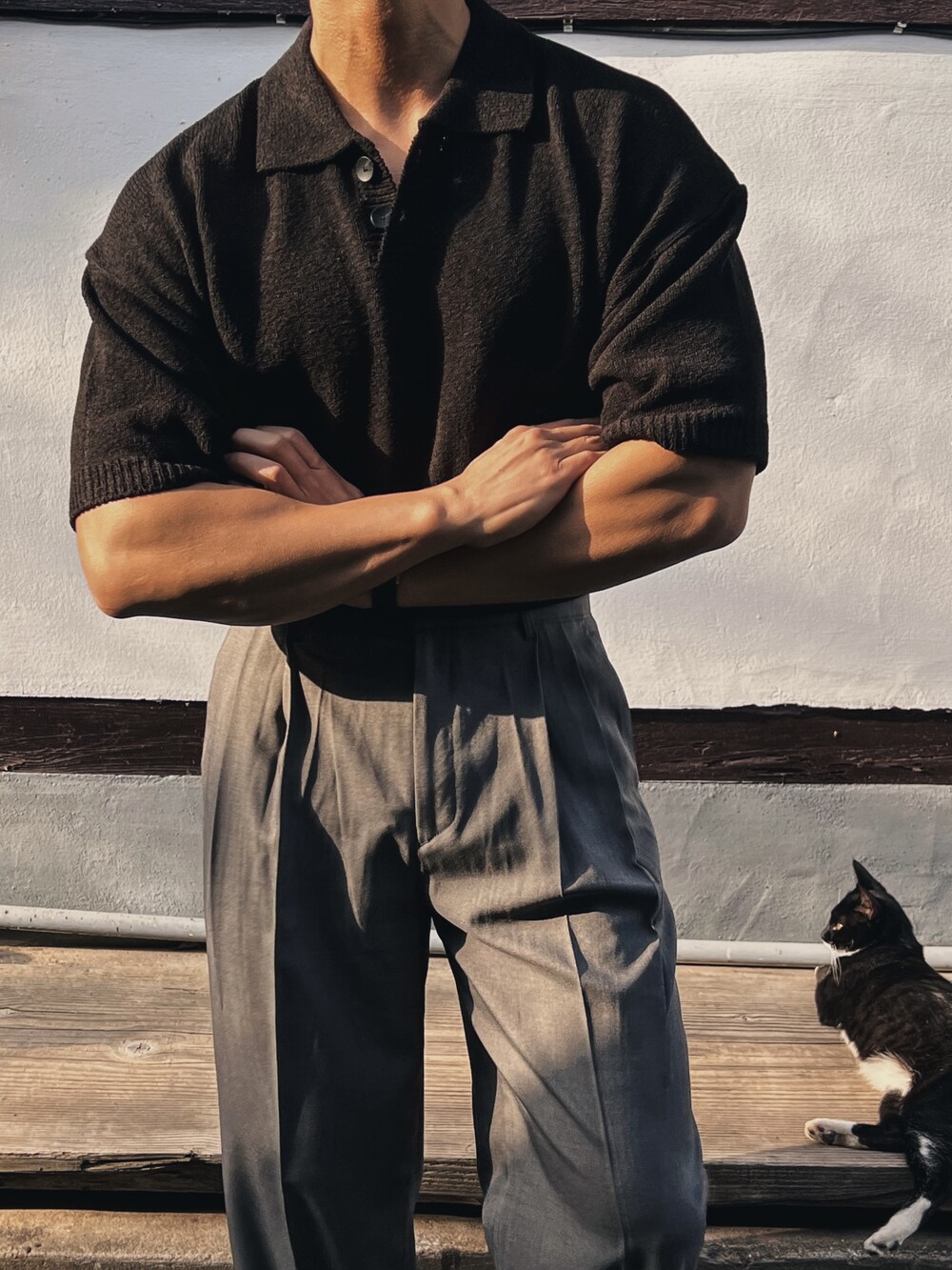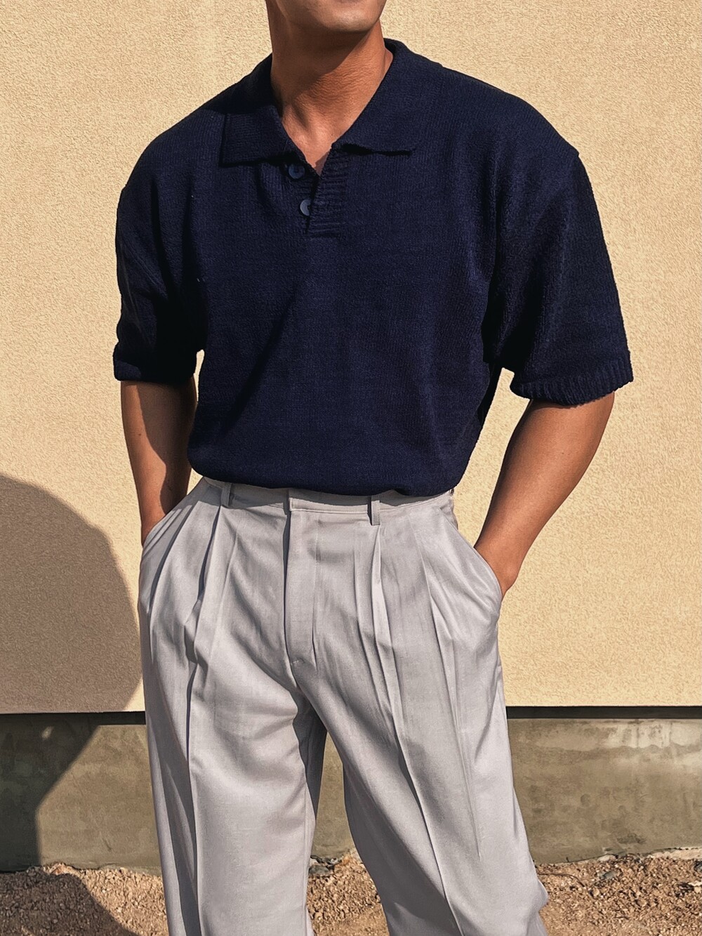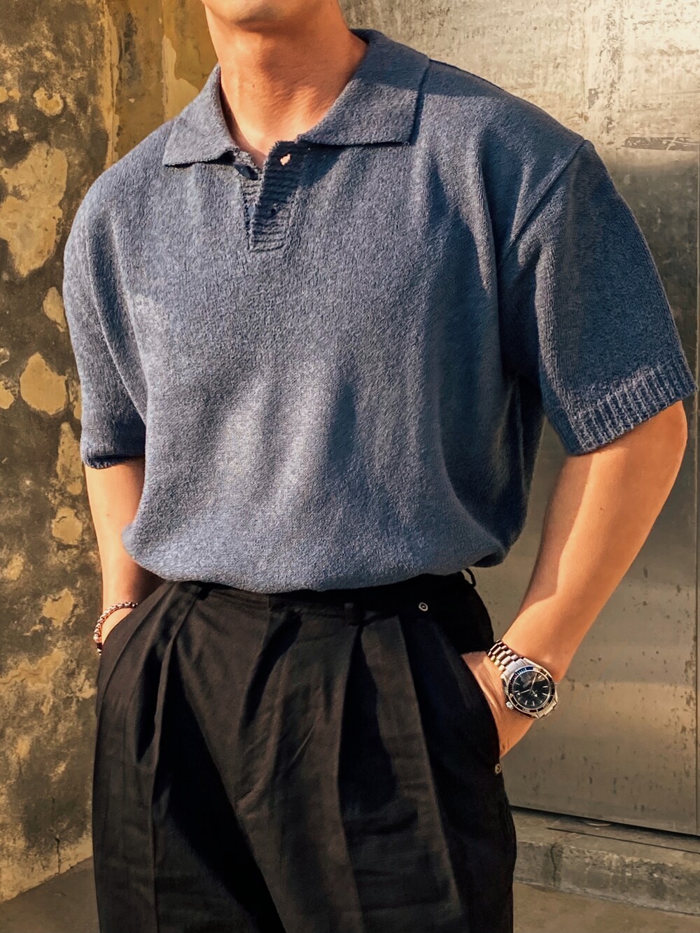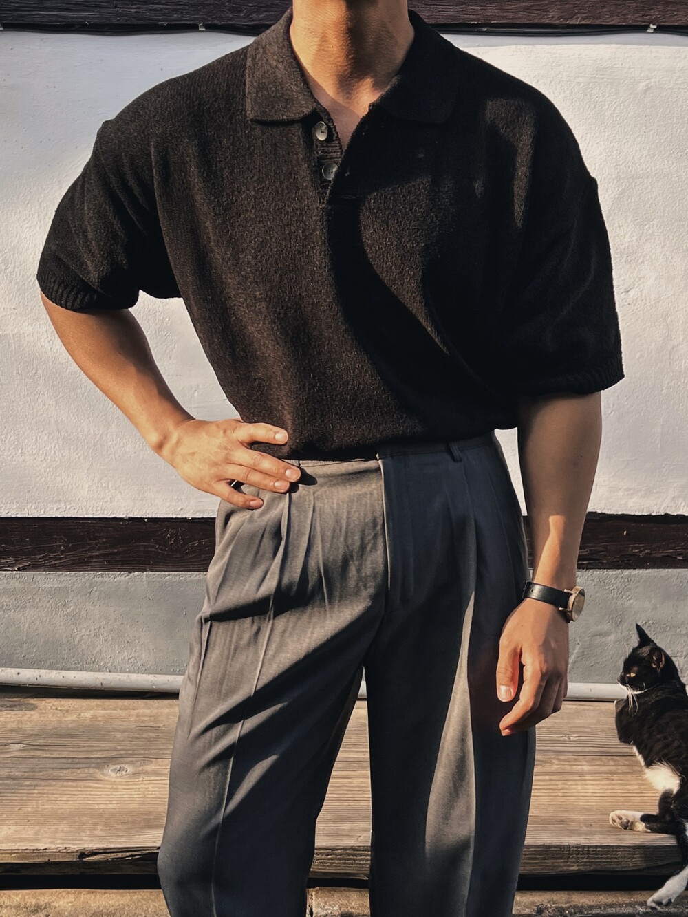 - 코튼 린넨의 쫀쫀한 짜임의 카라니트