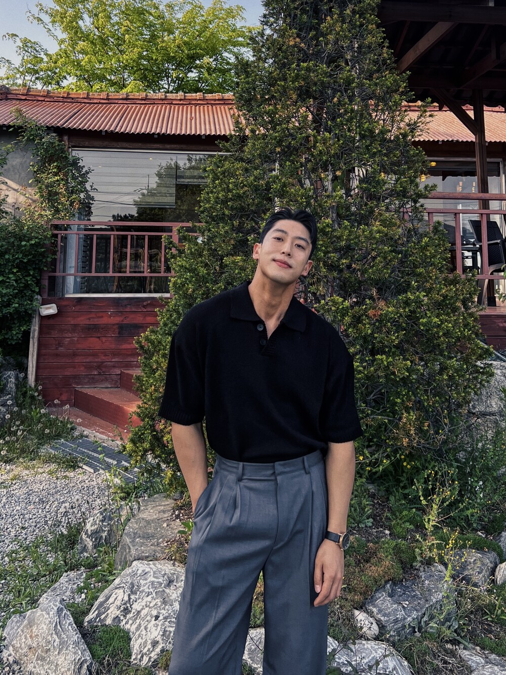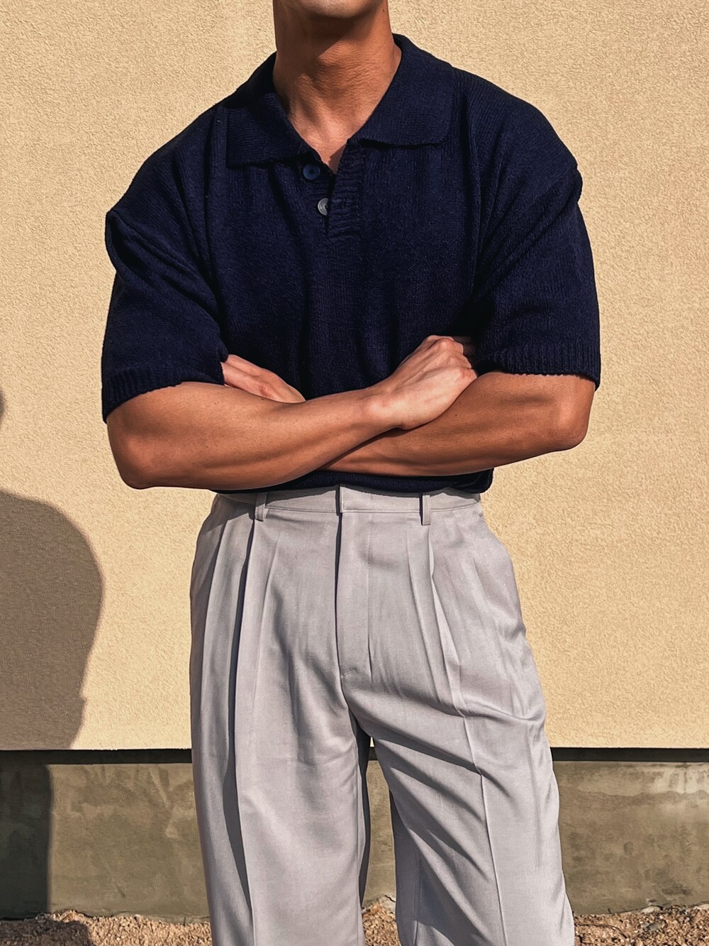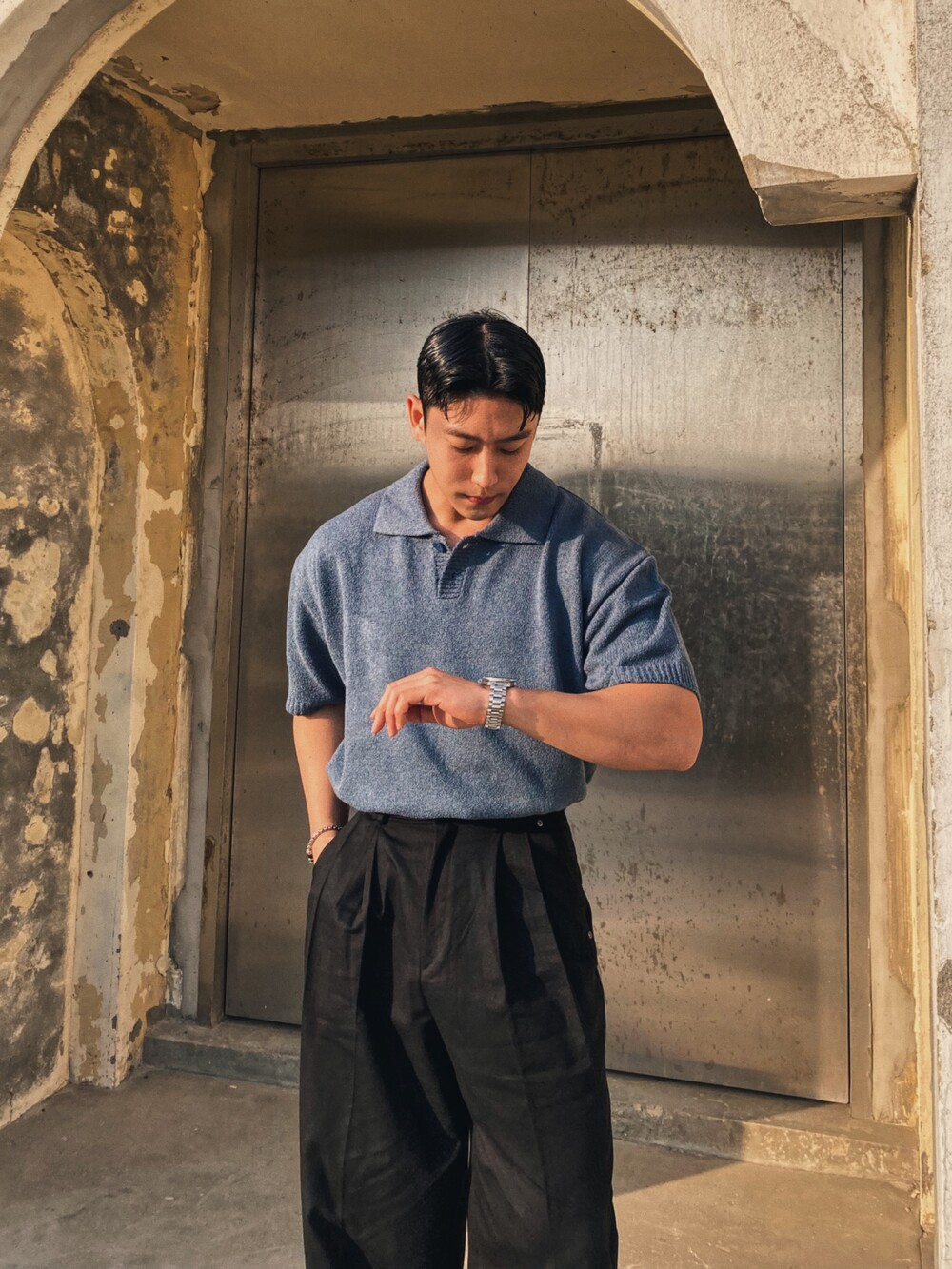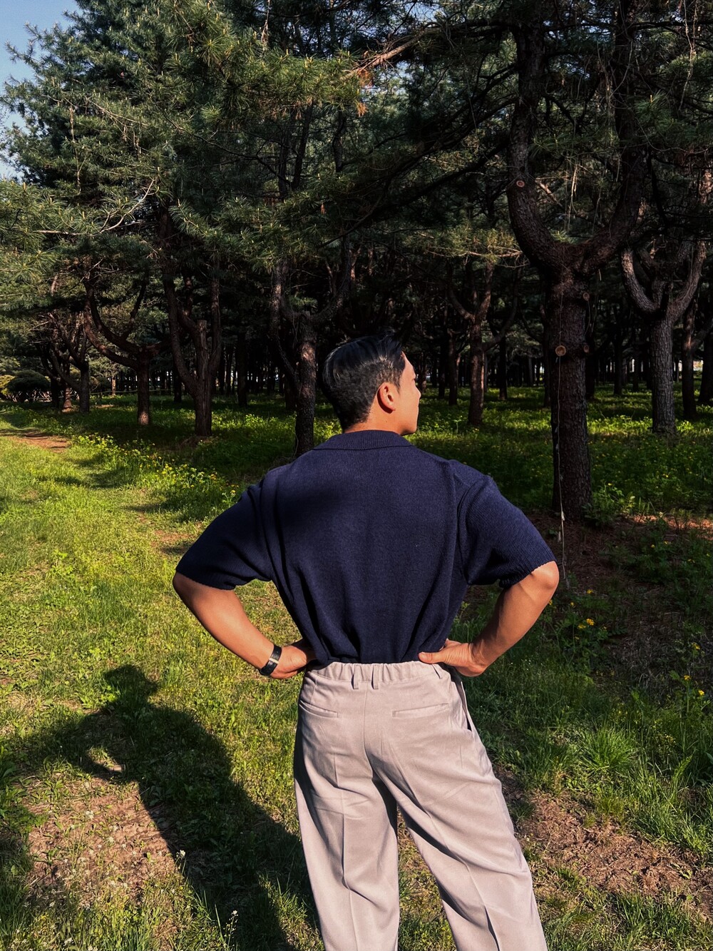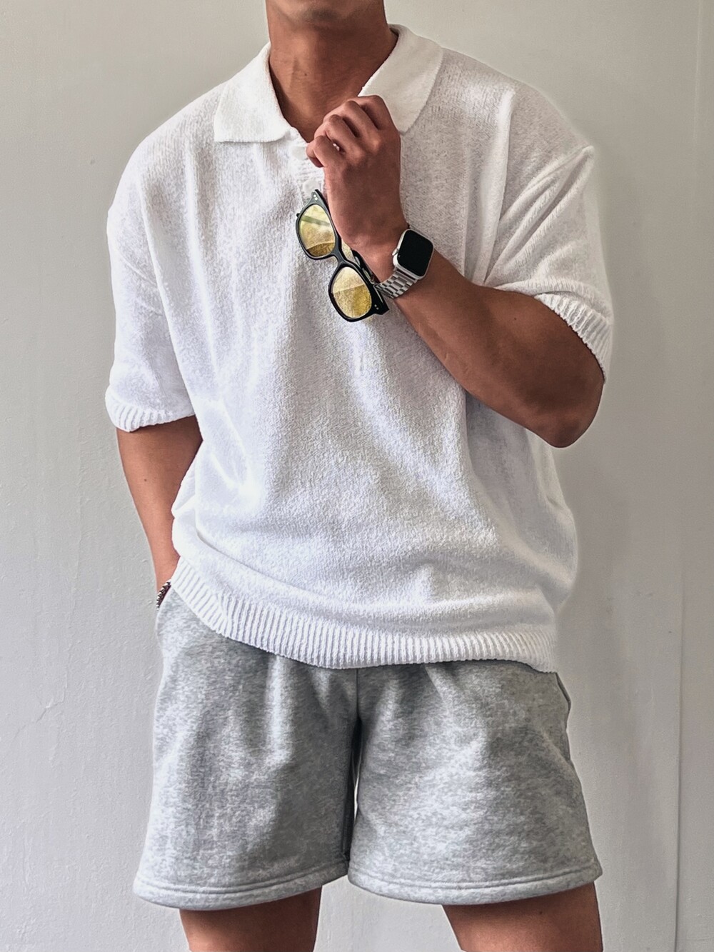 - 코튼 린넨의 쫀쫀한 짜임의 카라니트