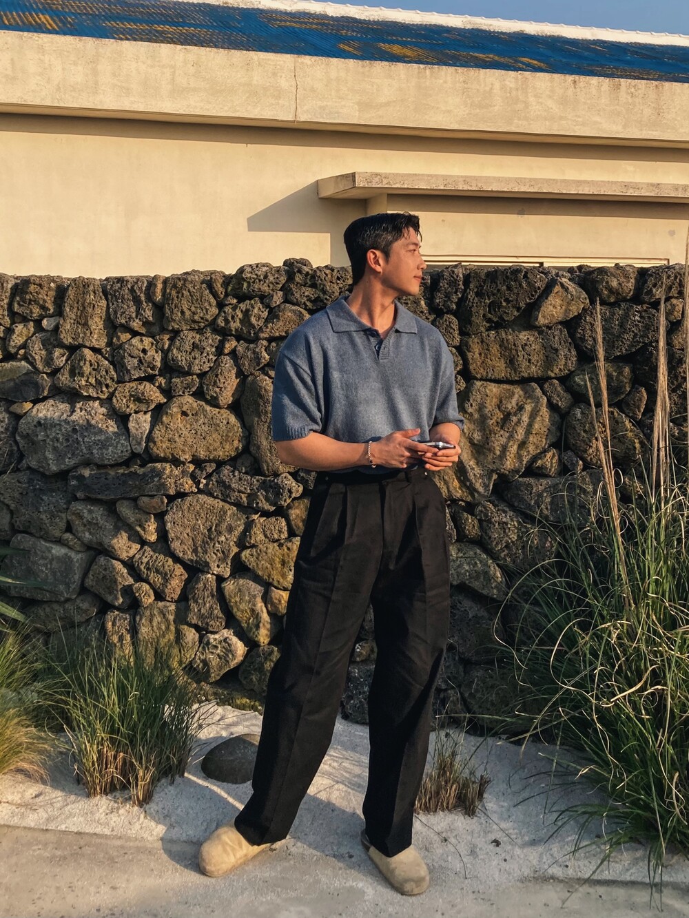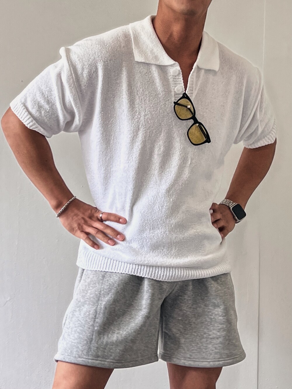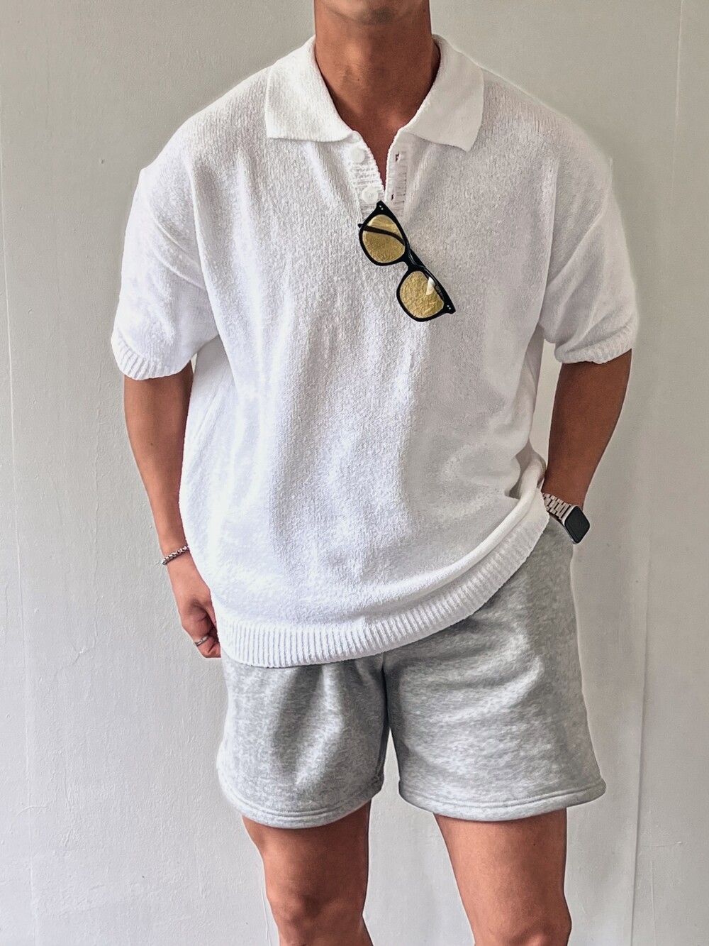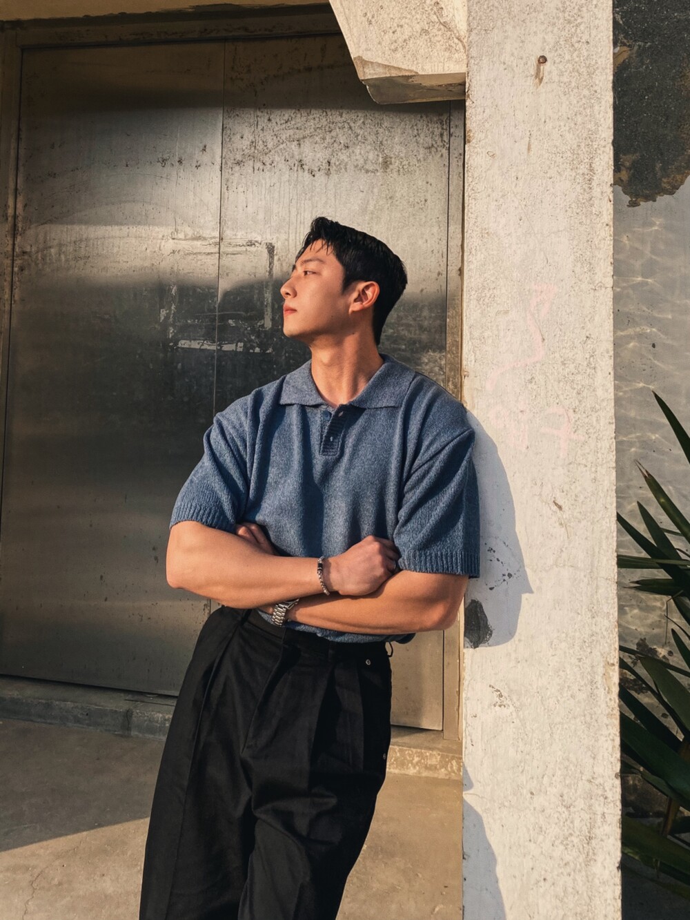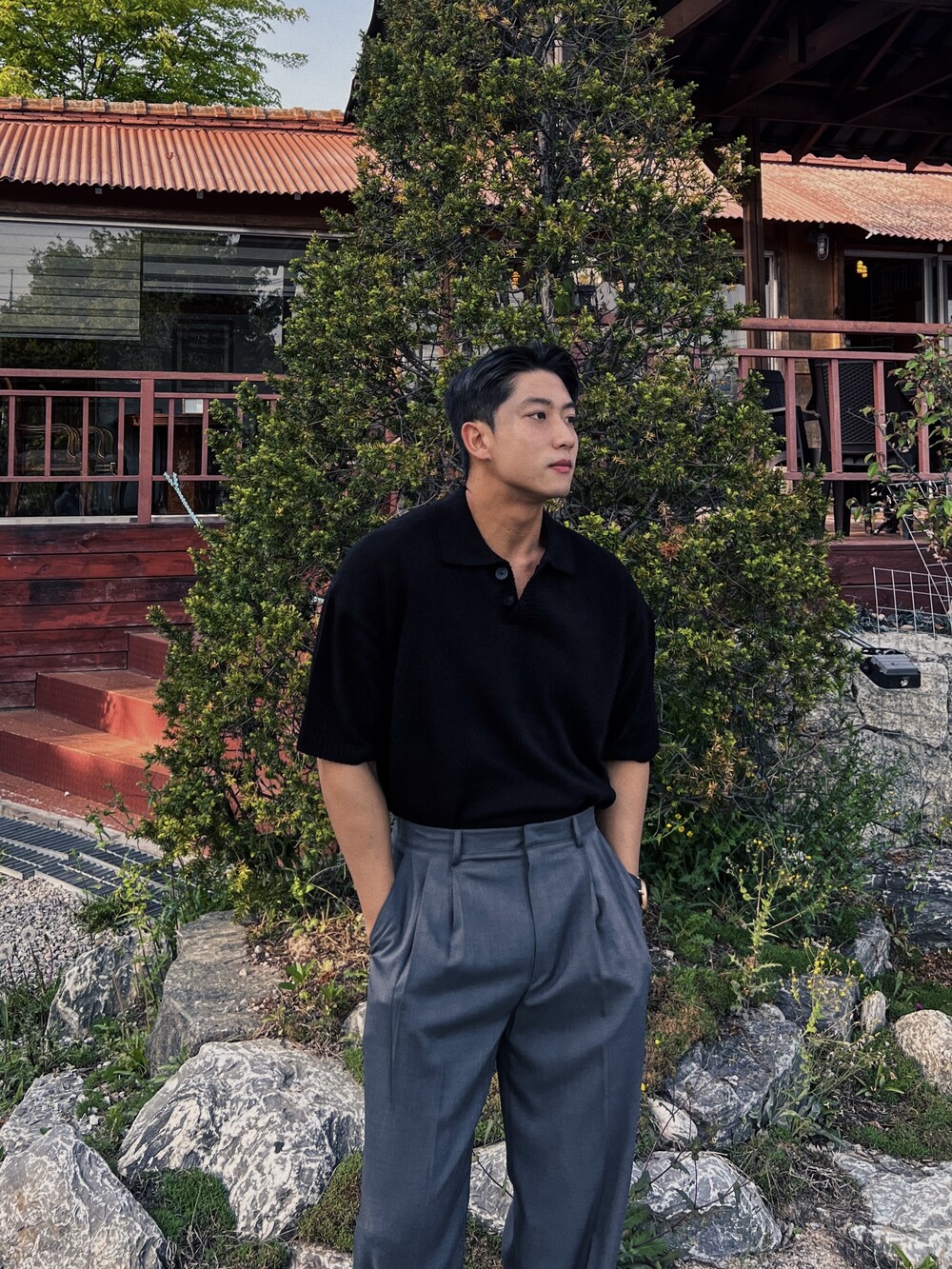- 코튼 린넨의 쫀쫀한 짜임의 카라니트